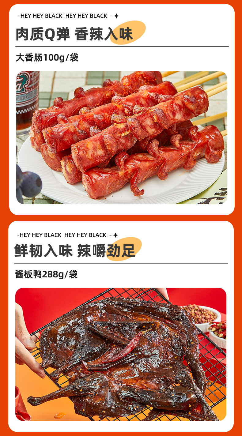 【湖南特产】黑色经典老长沙酱鸭脖黑鸭味120g/袋 鲜香辣爽 肉质紧实