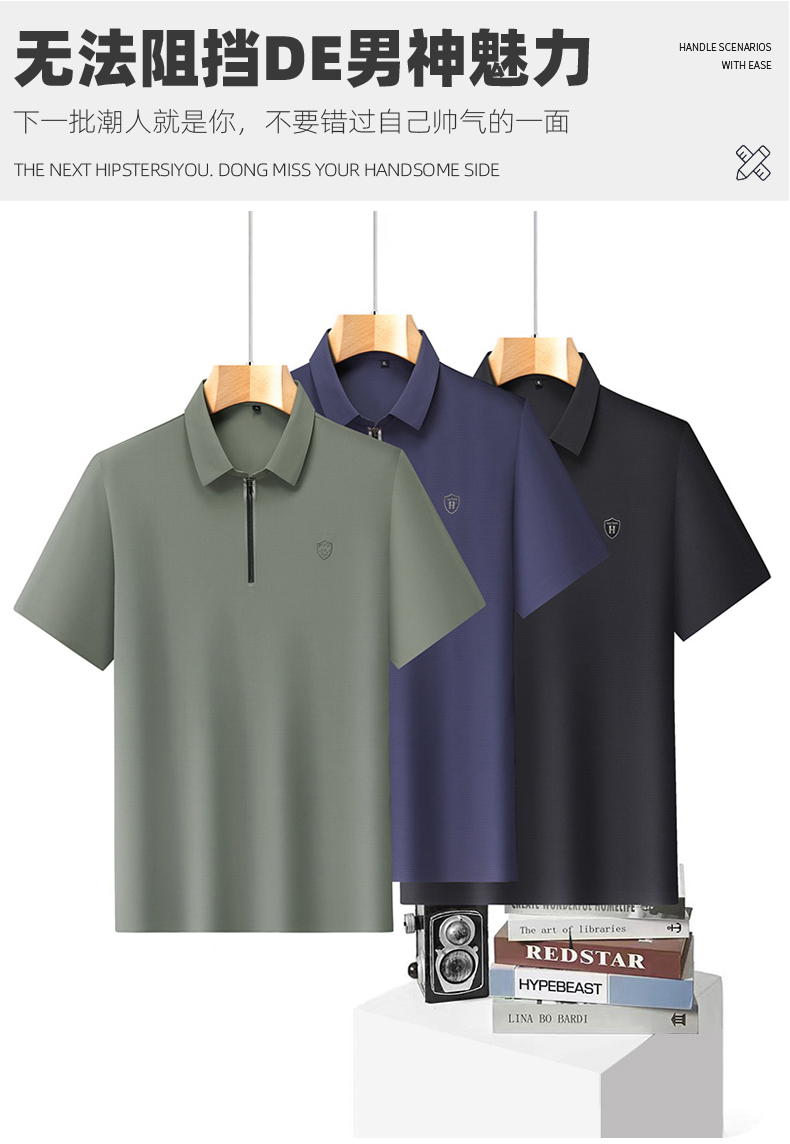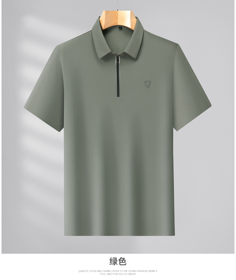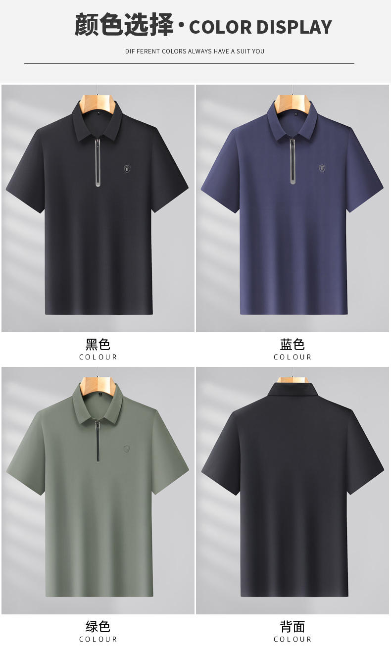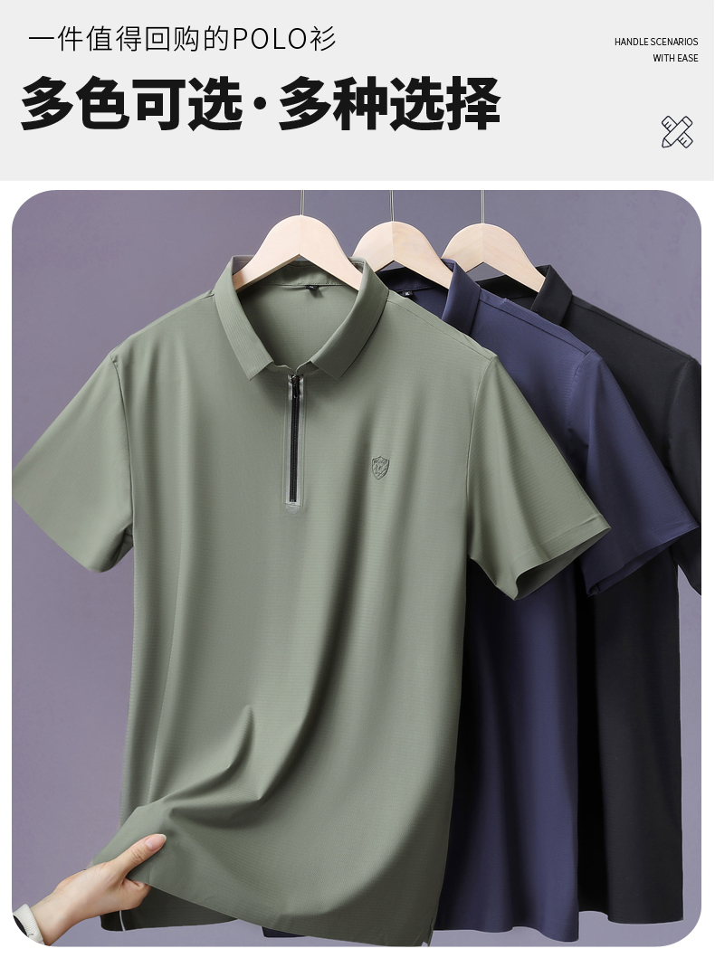 【冰丝】【DLS】大依优型大码拉链款短袖Polo衫翻领加肥加大男士大号弹力透气舒适夏季弹力半袖
