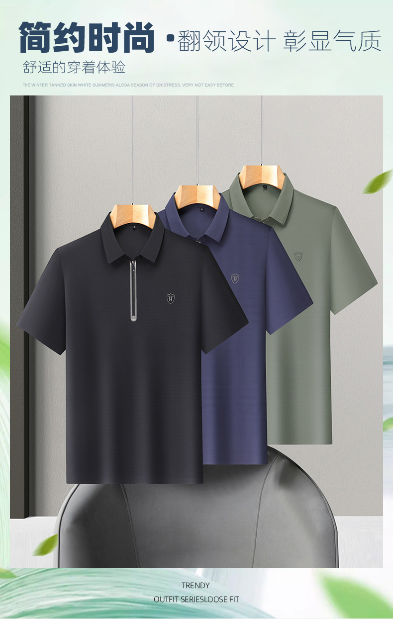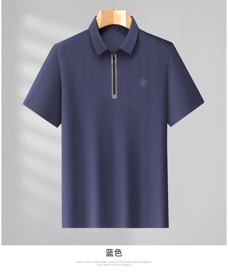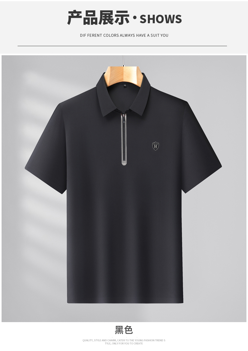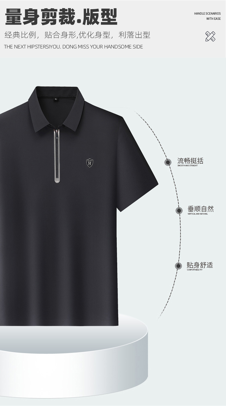 【冰丝】【DLS】大依优型大码拉链款短袖Polo衫翻领加肥加大男士大号弹力透气舒适夏季弹力半袖