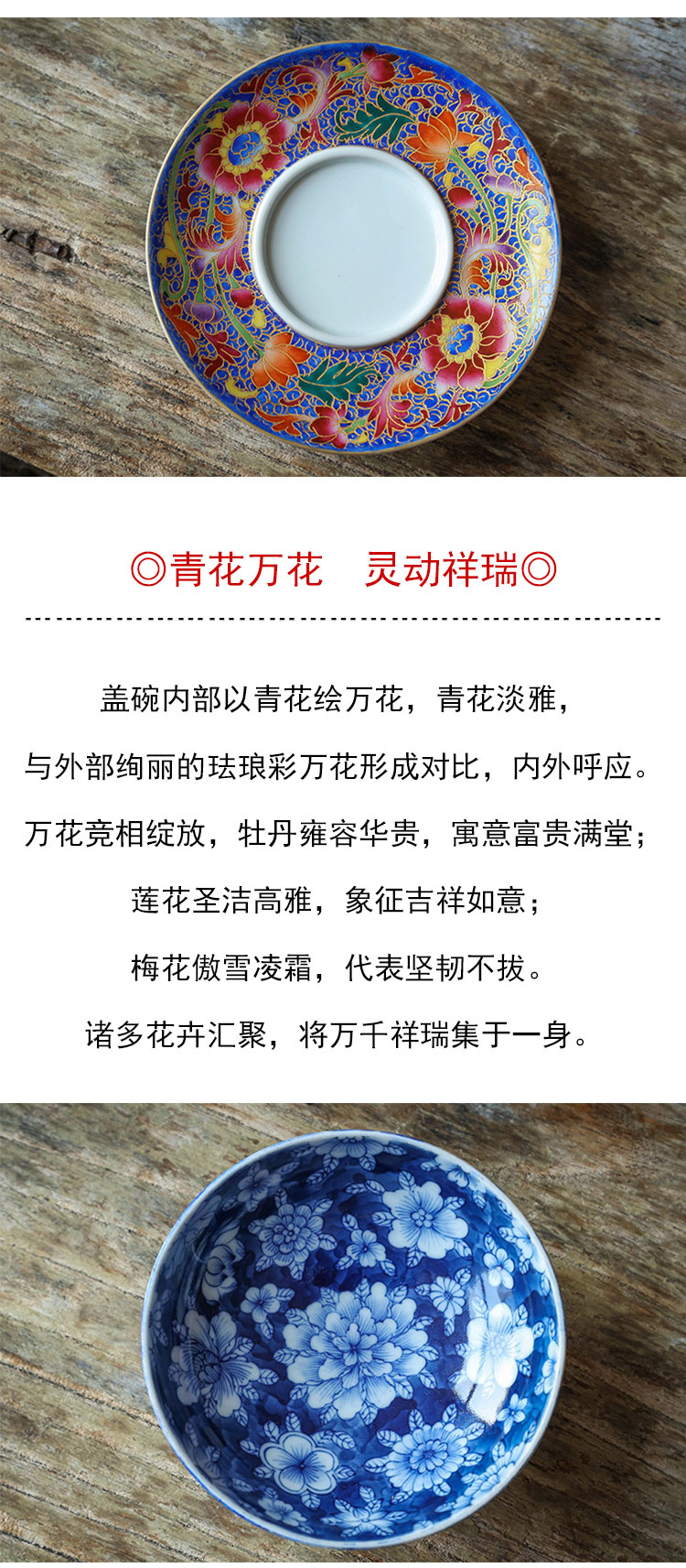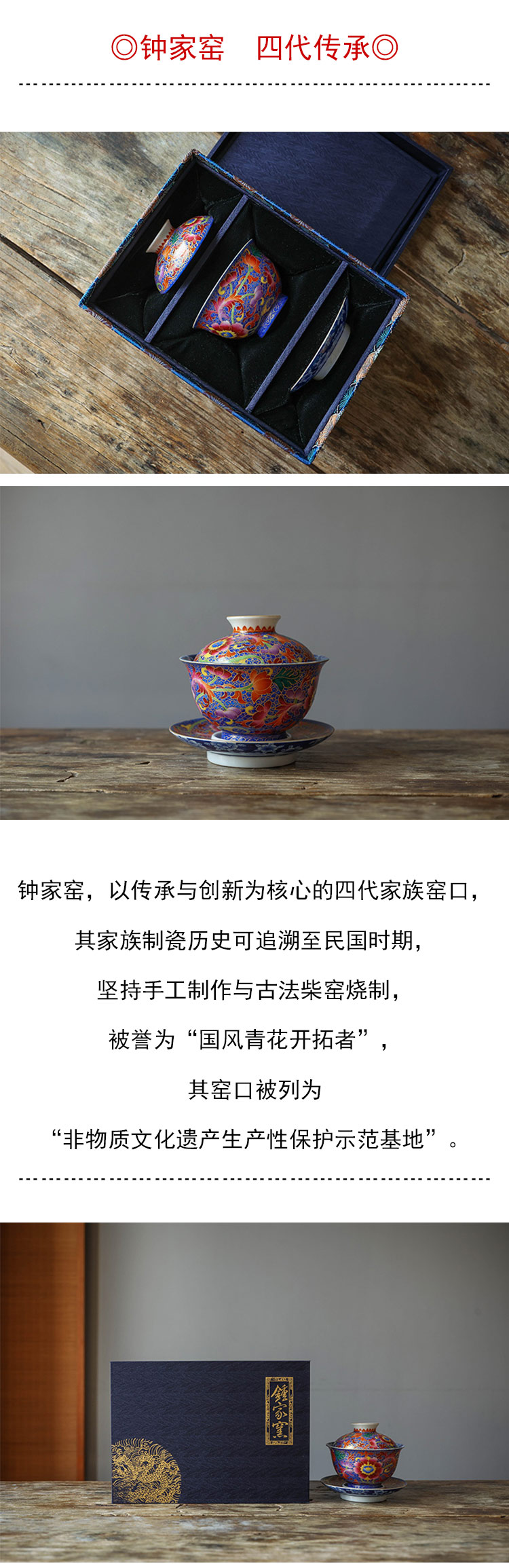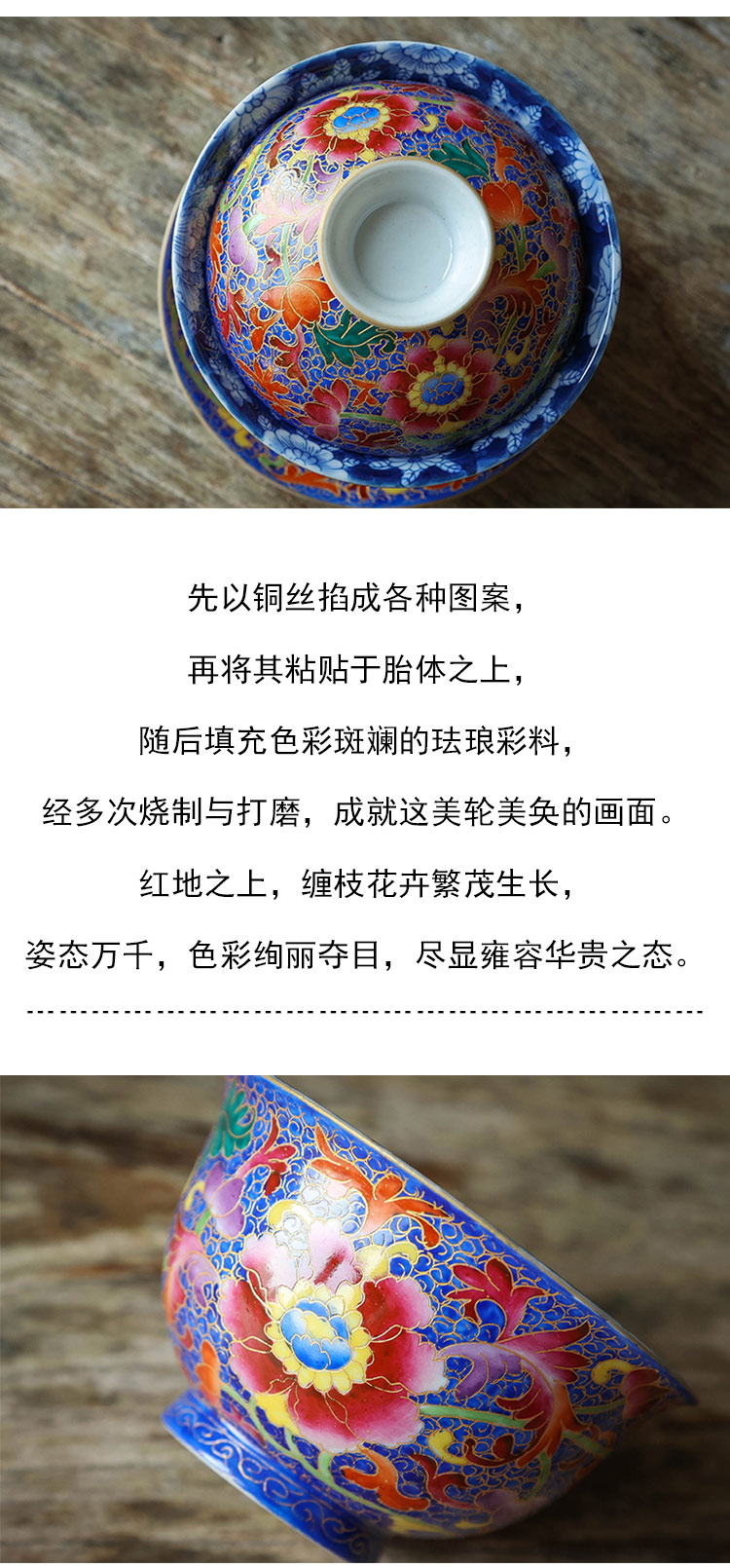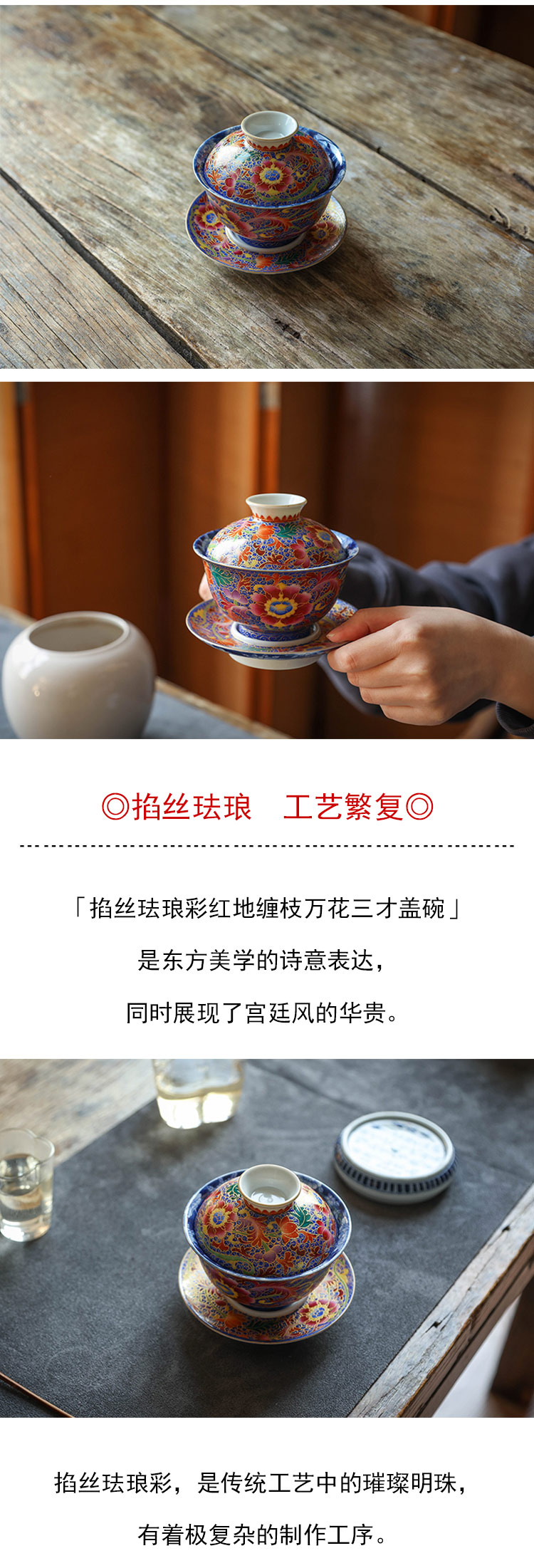 茶香记 钟家窑掐丝珐琅彩红地缠枝万花三才盖碗170ml陶瓷主泡器