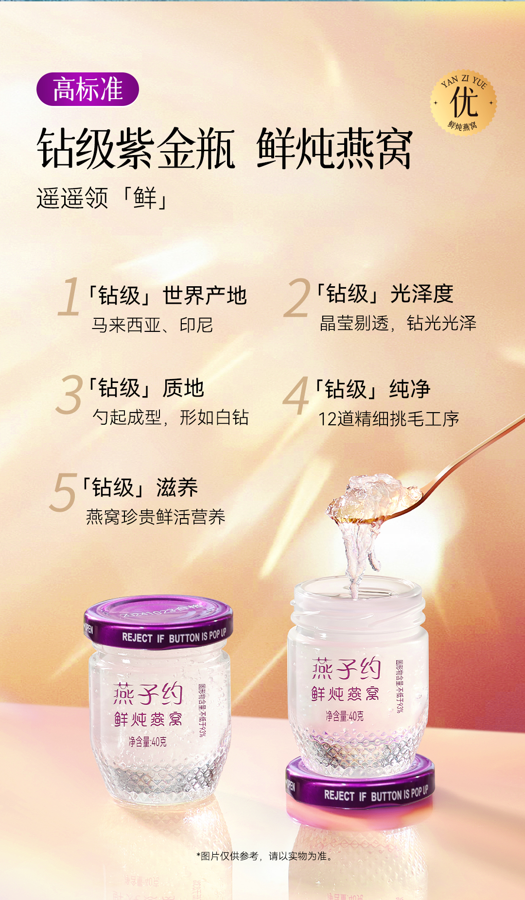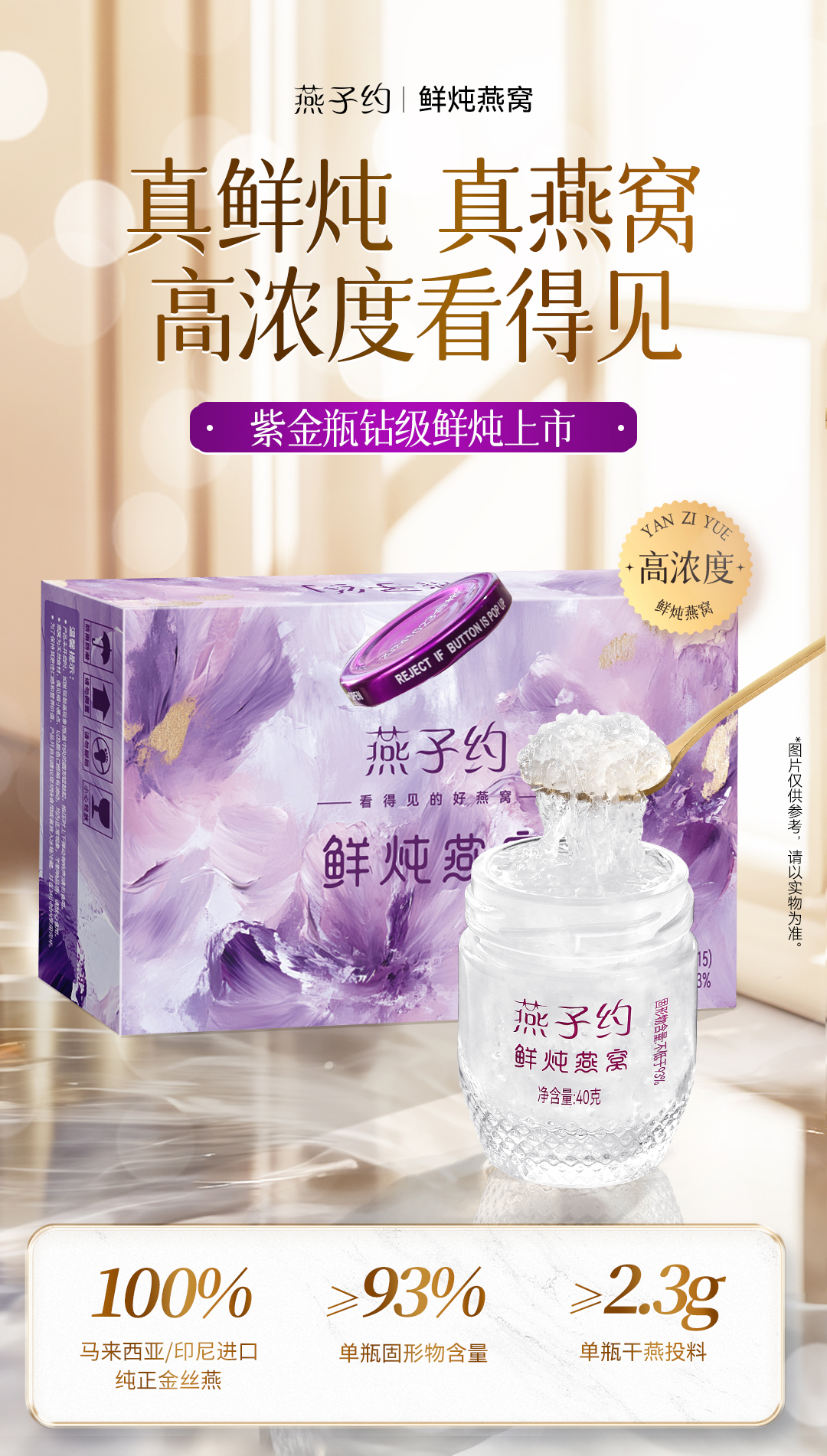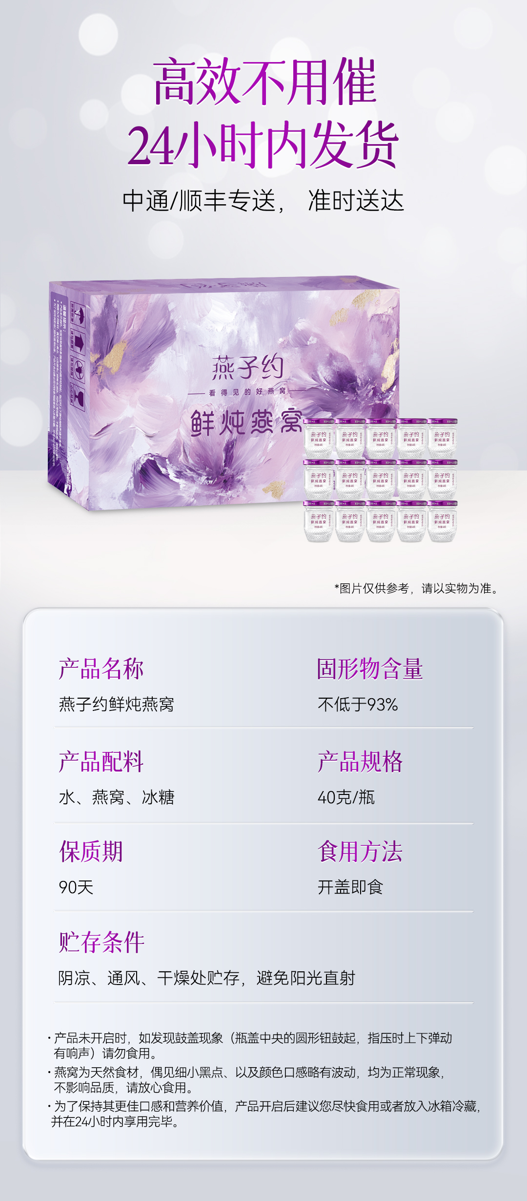 【紫金瓶鲜炖燕窝季泽套餐 】每瓶40g 共90瓶(≥2.3g燕窝投料 ●唾液酸≥152mg/瓶 ●≥93%固形物含量 )