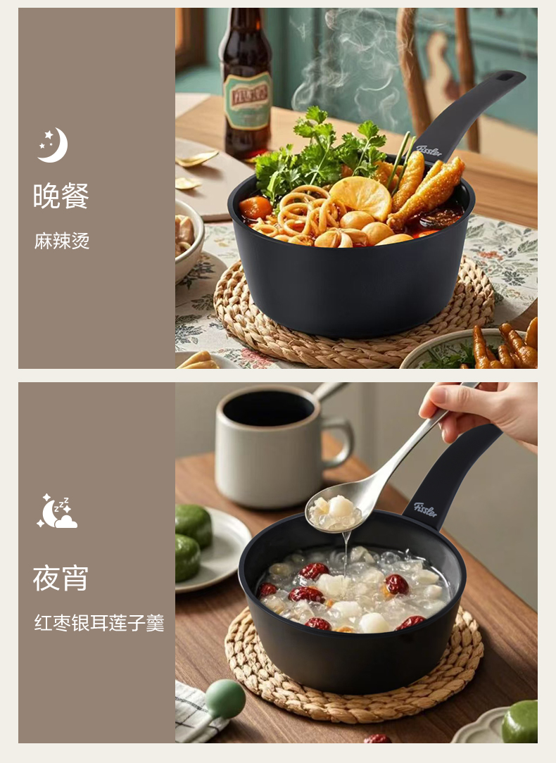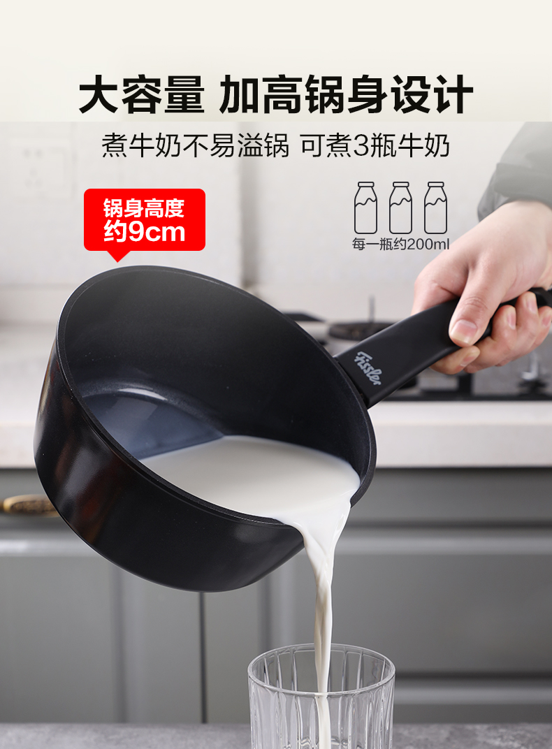 瓷安18厘米奶锅时尚黑色天然陶瓷涂层