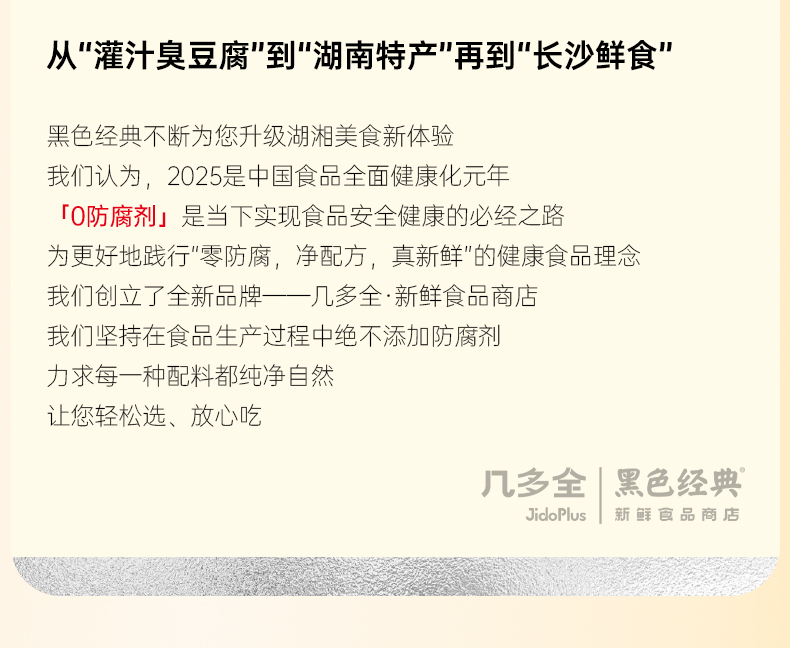 黑色经典湖南特产商城是长沙著名特色小吃“黑色经典长沙臭豆腐”旗下的线上官方商城。黑色经典面向全国,以长沙臭豆腐为核心,辐射覆盖湖南本土特色美食全系列产品,并对所有产品的生产工艺及包装进行了独特的改良。