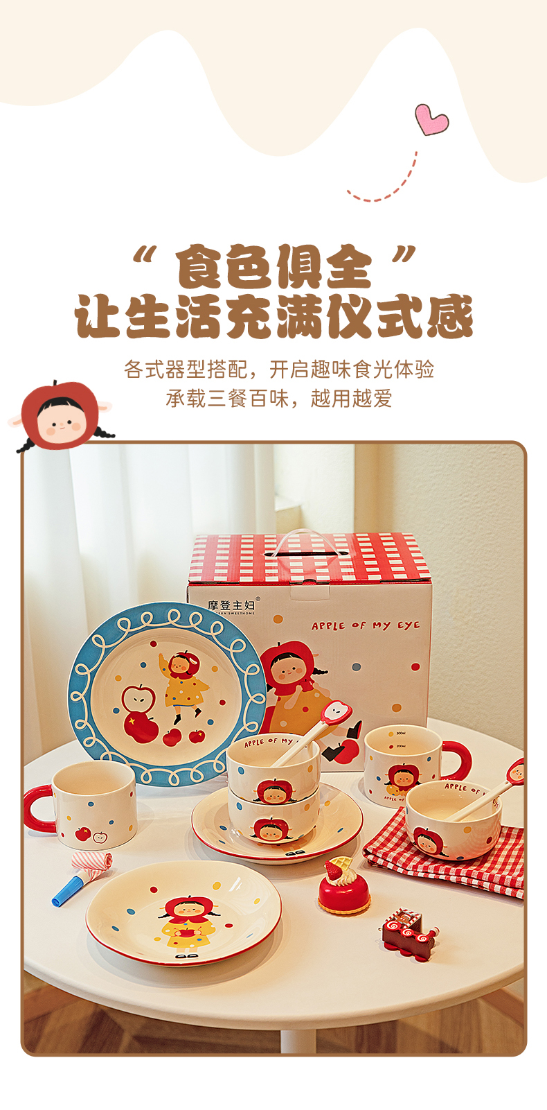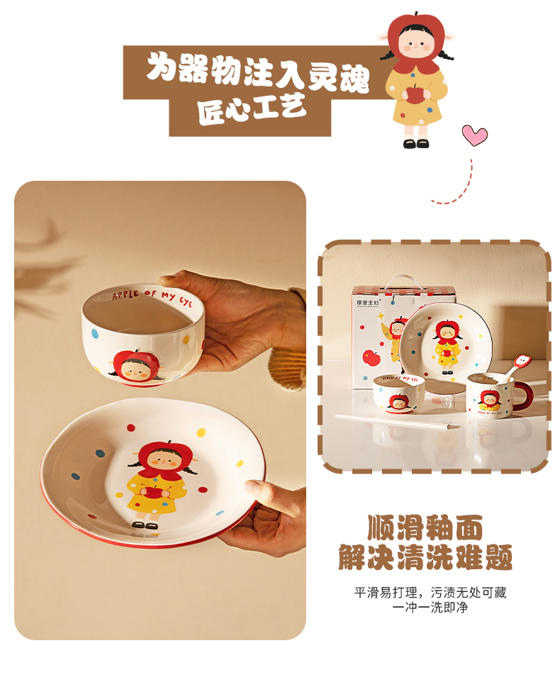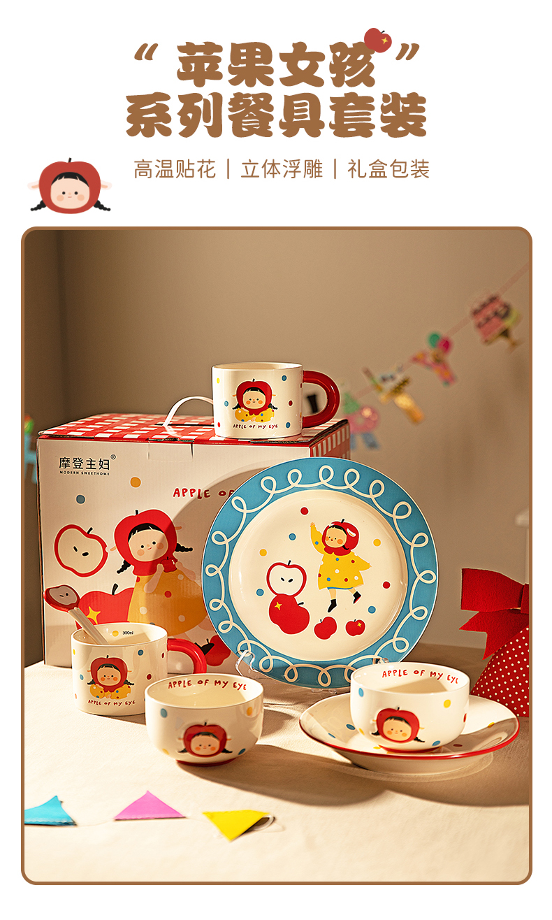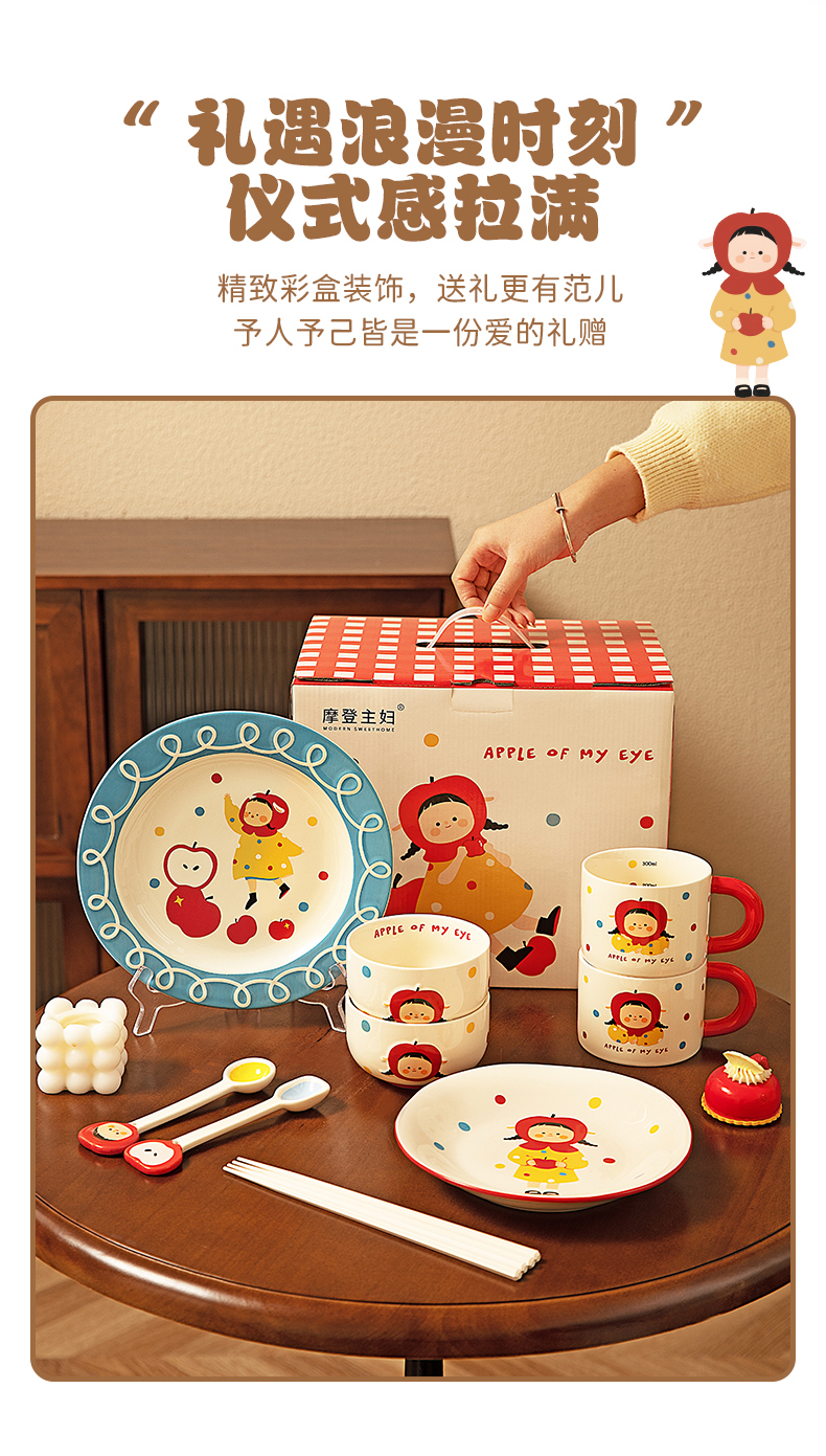 摩登主妇 苹果女孩碗碟套装碗具家用盘子生日礼物乔迁新婚圣诞餐具