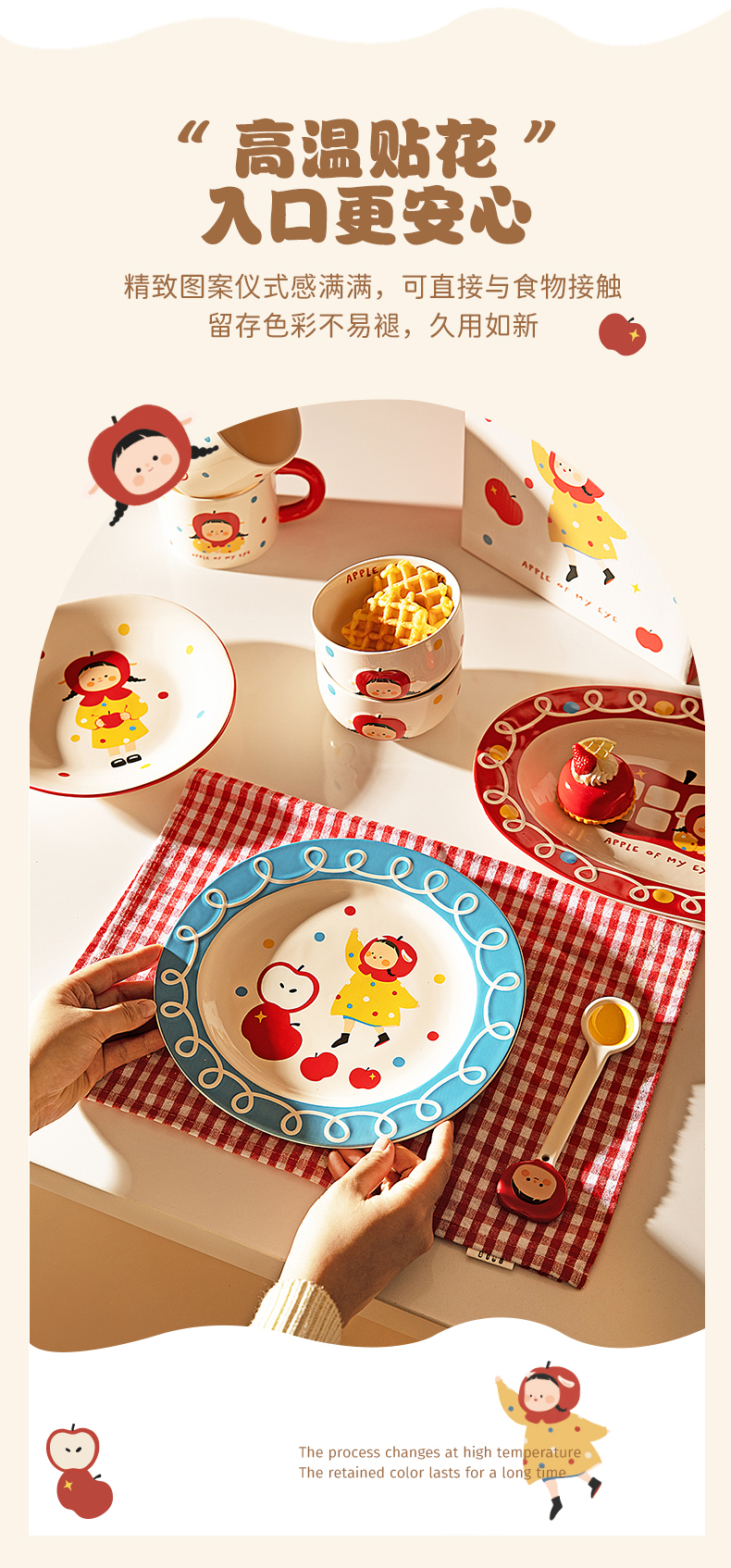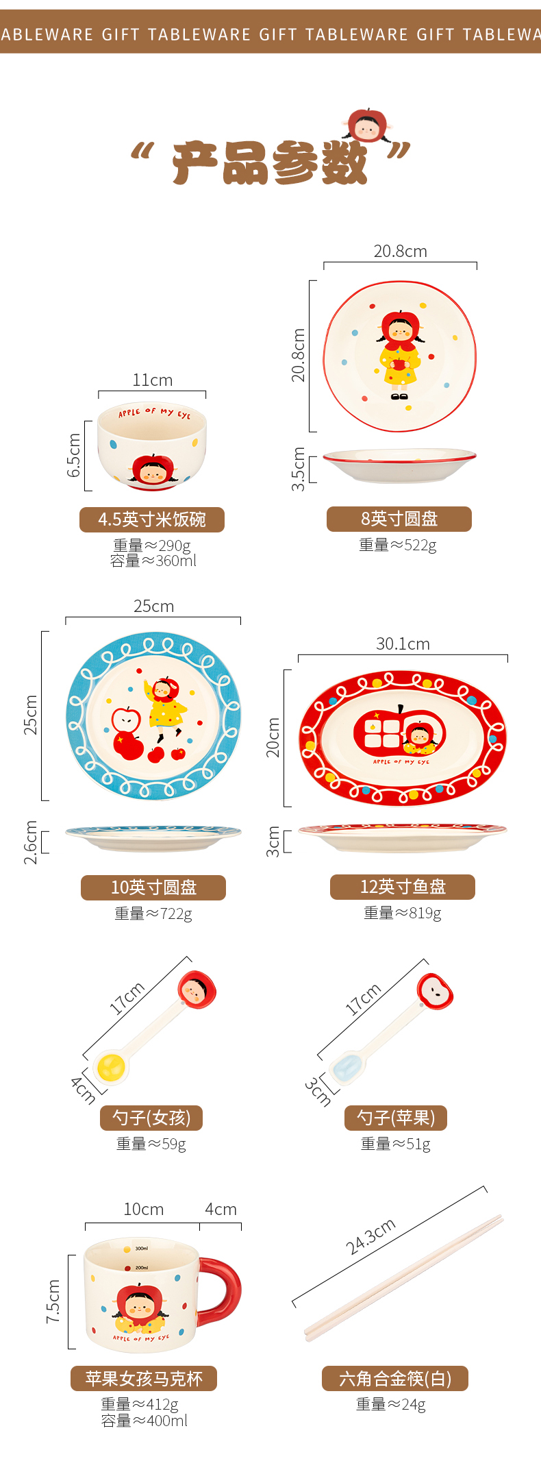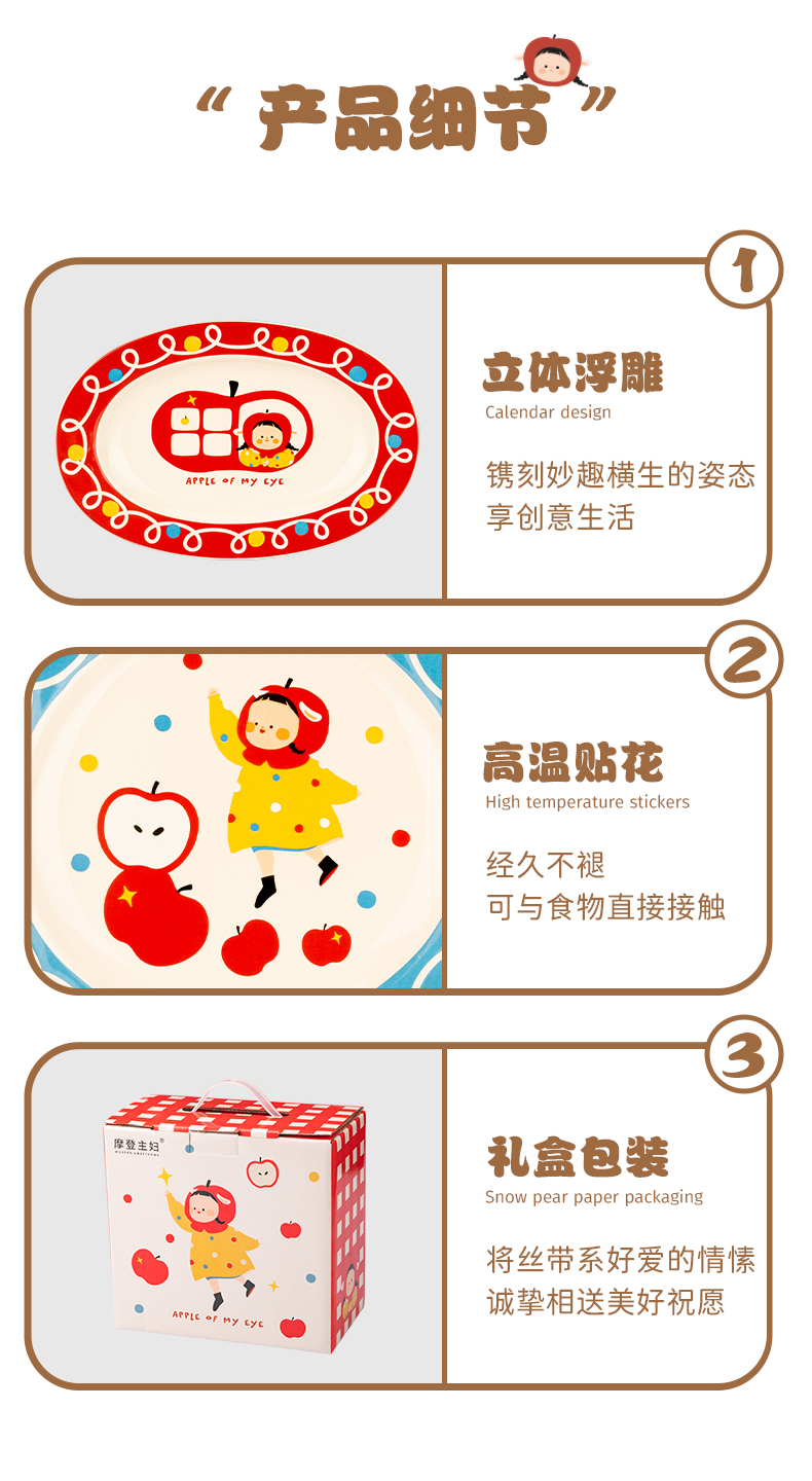 摩登主妇 苹果女孩碗碟套装碗具家用盘子生日礼物乔迁新婚圣诞餐具