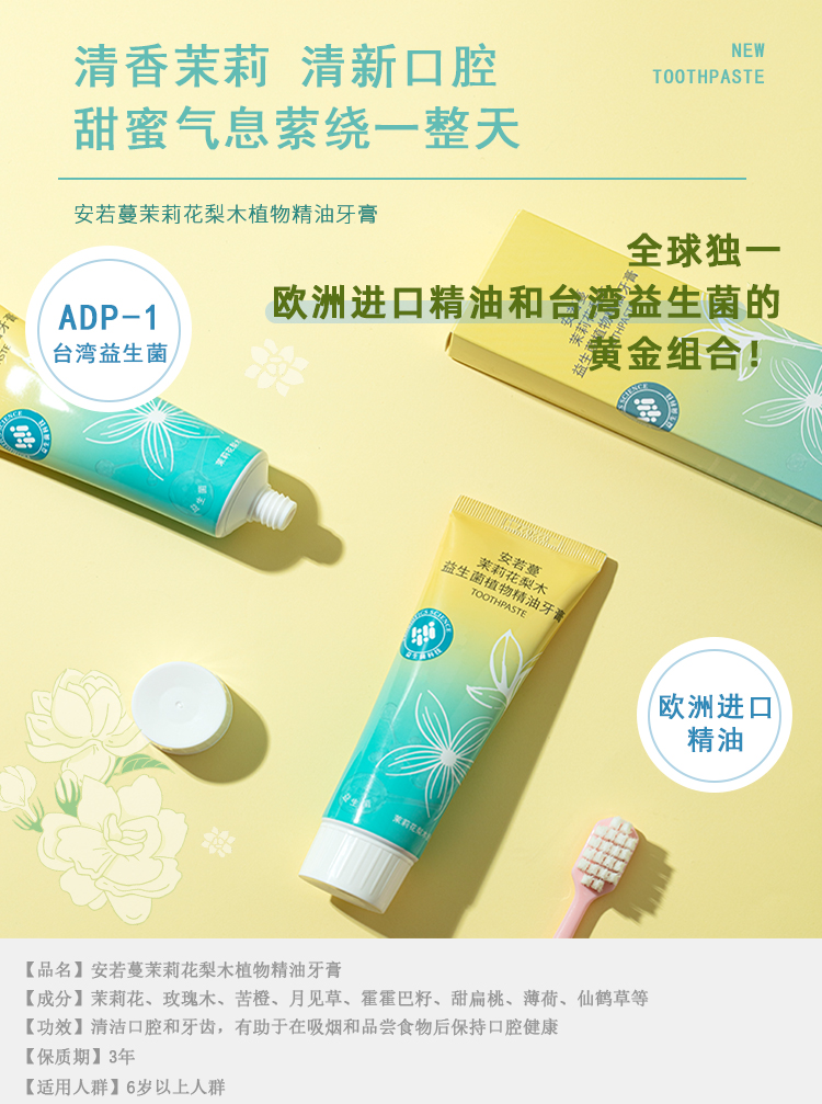 安若蔓 茉莉花梨木益生菌植物精油牙膏 100g