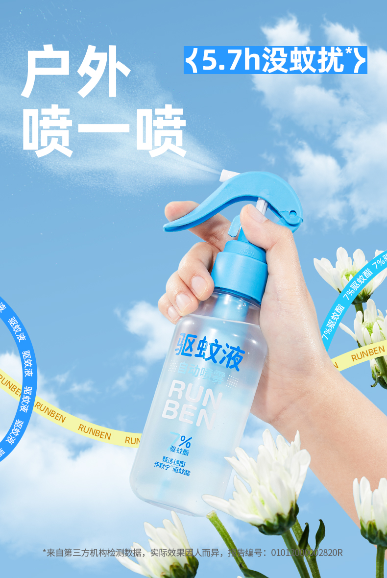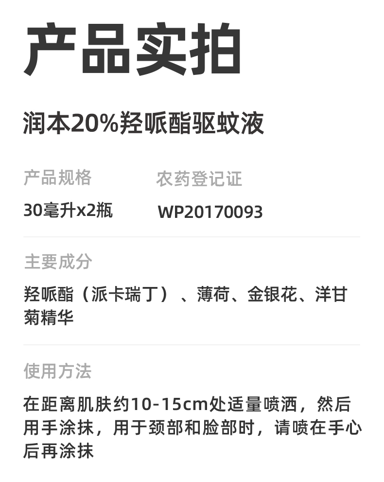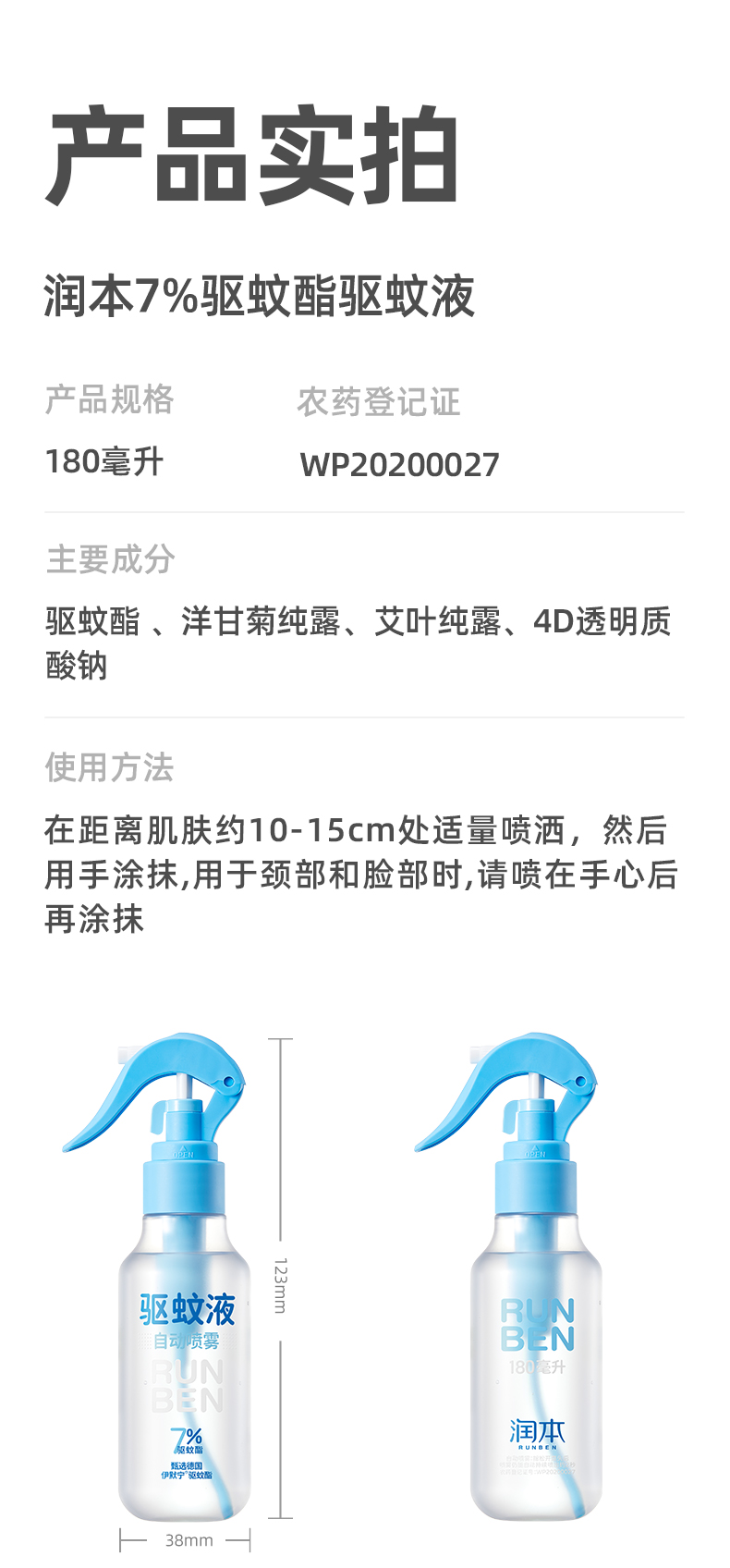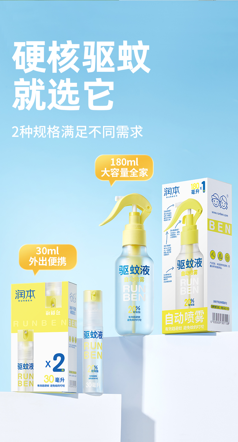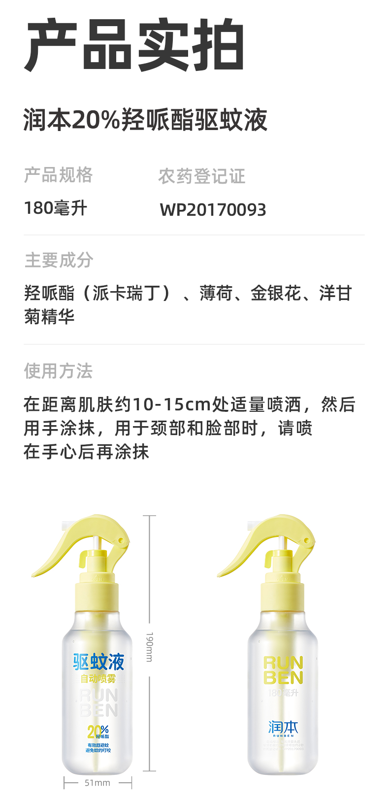 测评优品-润本 驱蚊酯 羟哌酯驱蚊液 婴儿宝宝户外专用防蚊喷雾 30ml装倒喷喷头 180ml装自动喷头