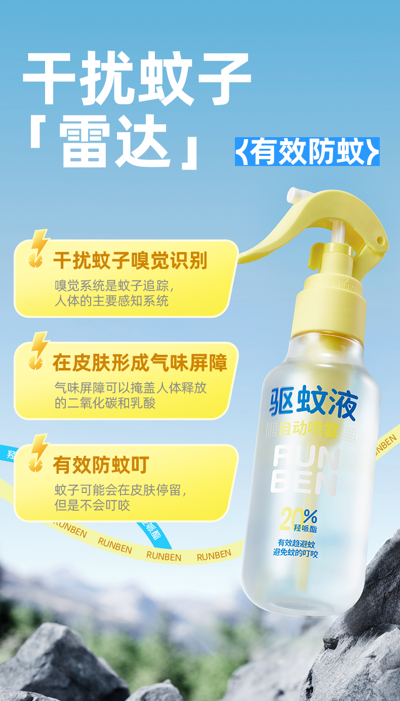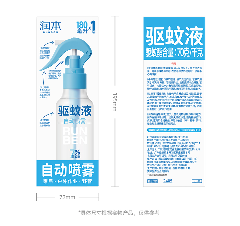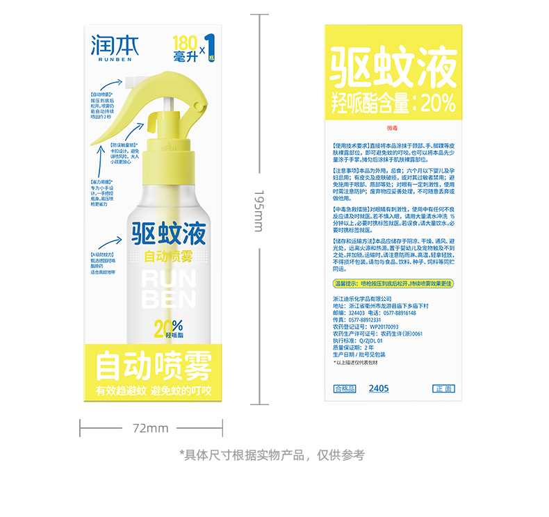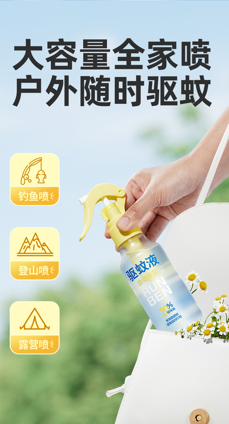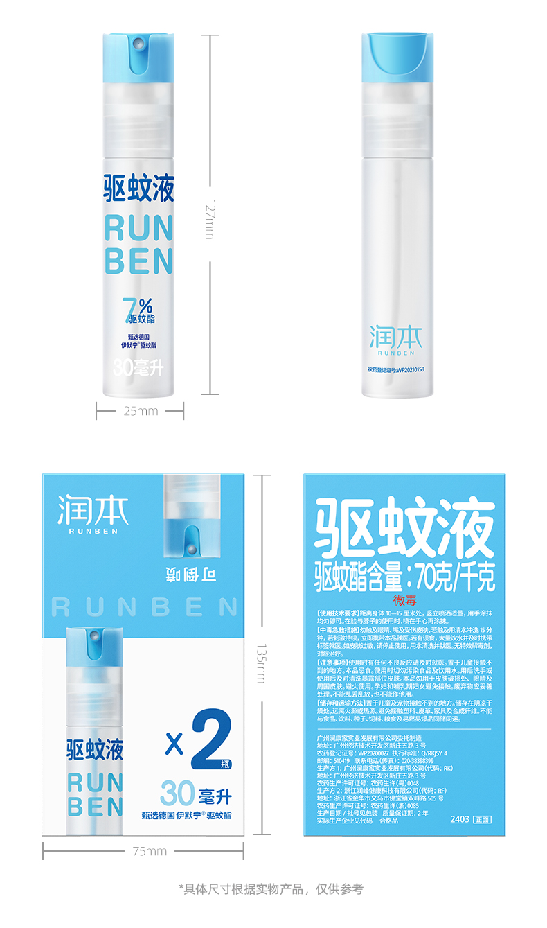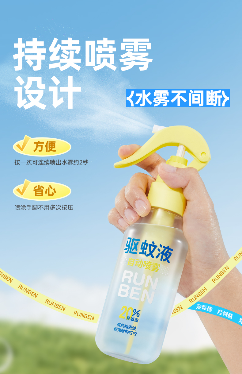 测评优品-润本 驱蚊酯 羟哌酯驱蚊液 婴儿宝宝户外专用防蚊喷雾 30ml装倒喷喷头 180ml装自动喷头