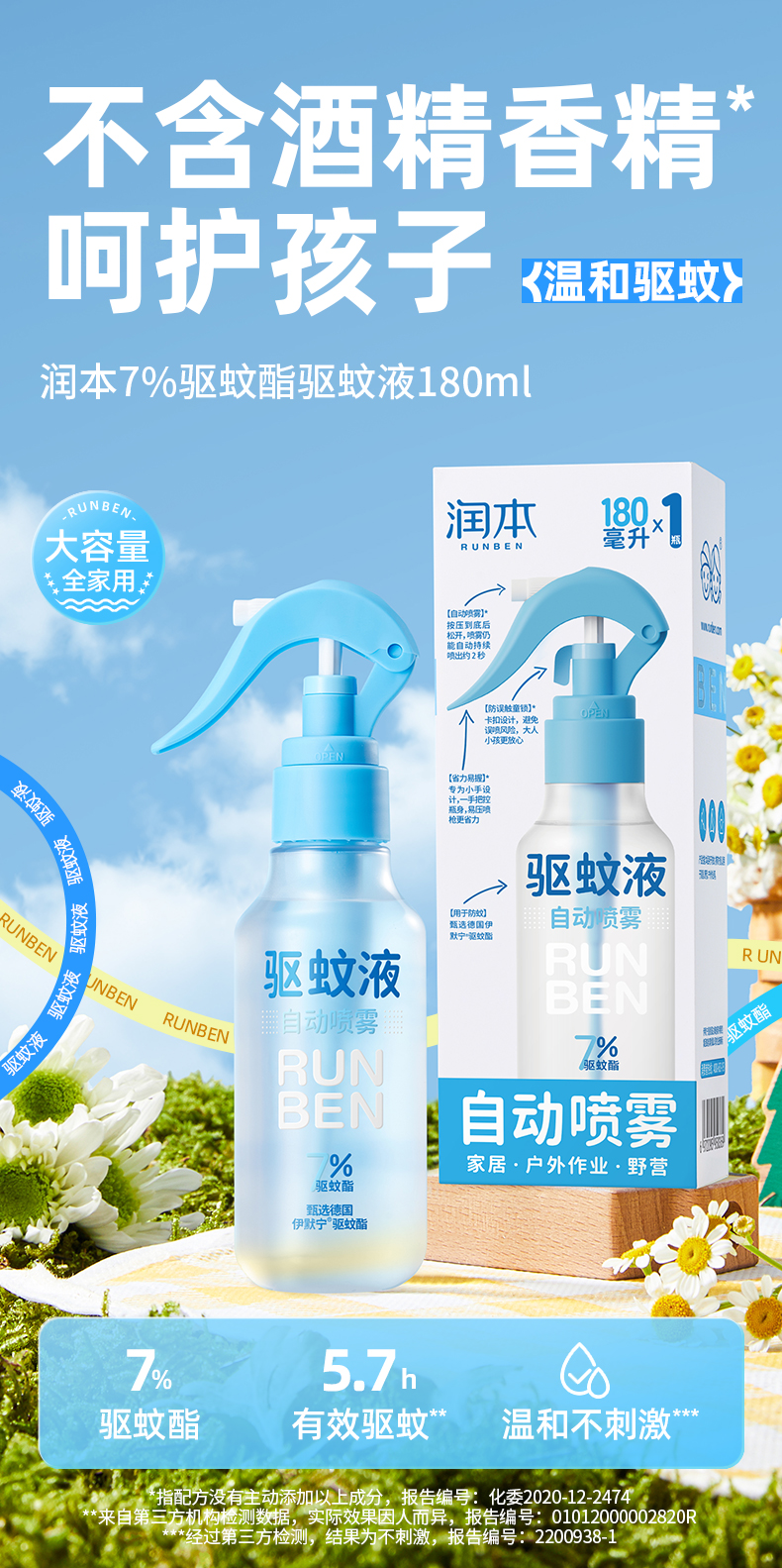 权威驱蚊成分,驱蚊持效时间7.3h;