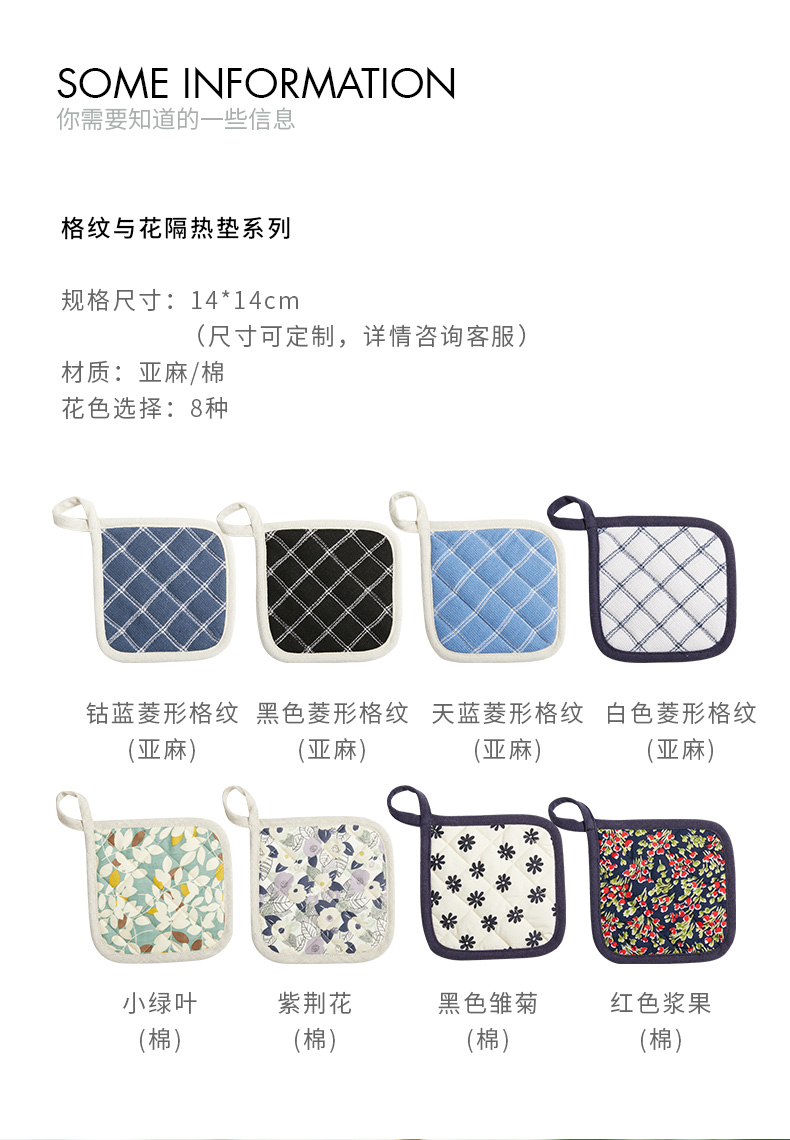 厨房格纹与花隔热垫餐桌隔热垫