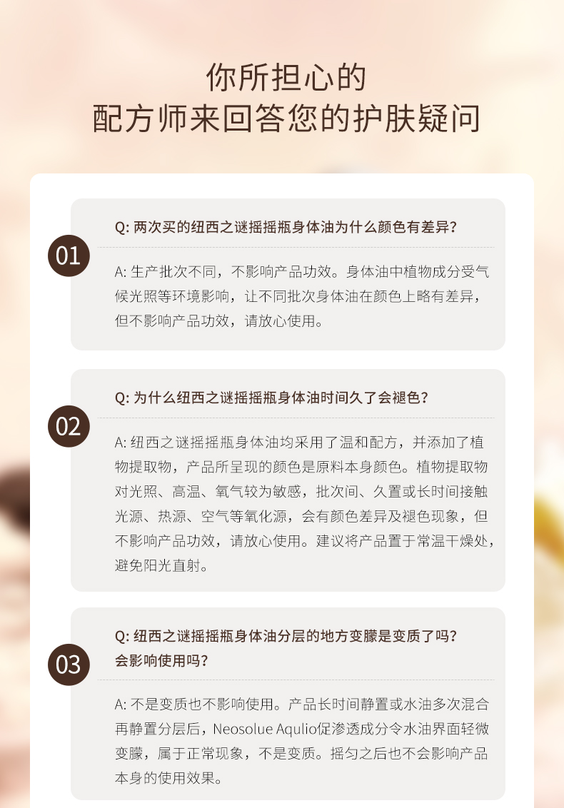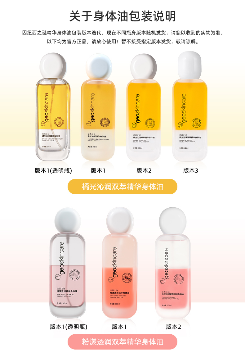 【朋友圈专享】纽西之谜流金水润/橘光沁润精华身体油100ml*2 赠护手霜3支&保湿面膜5片