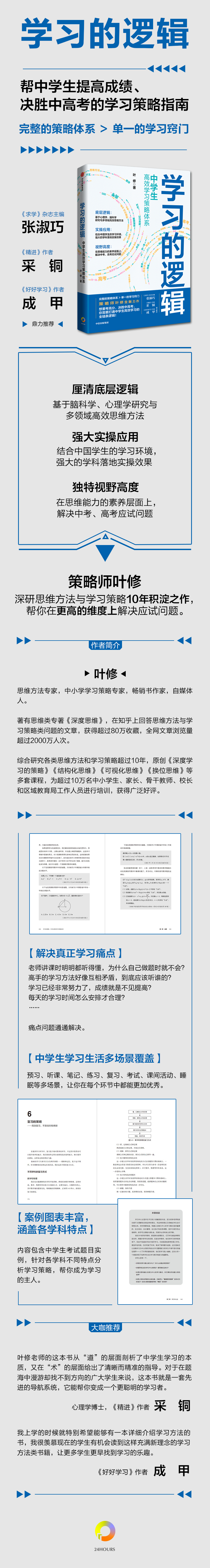 什么样的学生能够取得好成绩呢?这个问题的答案一直在变化。 几十年前,中国的教育刚刚开始缓慢地复苏,大家对教育的重视程度和焦虑程度都没有那么高,很多学生还不知道教育的重要性,有些老师甚至学科基本功都不深厚。整个教育市场上,配套措施不足,教辅资料稀缺。这个时候,能够在学校取得好成绩的往往是一些比较聪明、有天赋的学生。我们将这段时间称为天赋红利时代。 随着中国经济的发展、社会的进步,部分区域的教学质量得到提高,教育产品丰富起来了——主要是经济发达地区。于是“北上广深”等一线城市和省会城市的重点中学开始凸显优势, 因为他们的师资更好,得到的教育服务更多。这个时候,好成绩开始依赖外界资源了,如果一名学生仅仅是有天赋,但缺乏优势资源,那么他很有可能比不上另一名天赋稍弱但资源强势的学生——天赋红利弱化。在这个阶段,一线城市和重点高中的学生占尽优势,可以称为资源红利时代。 作为对大城市资源优势的应对,资源弱势的小城市、县城学校开始寻找自身困境的突破口。几经尝试以后,他们发现,学生的努力程度是一个可以继续挖掘的增长点。此时,整个社会对教育的重视程度和焦虑程度均处于逐步上升的趋势,但结构暂不均衡。经济发达地区的学生尚未进入焦虑阶段,努力程度稍弱;经济弱势地区的学生则已经有了相当的压力,有动力,也有机会通过更多的努力来弥补外界资源的差距。于是军事化管理、高压教育、题海战术等在学校开始流行,而最早进入极限努力模式的学校和学生,也确实吃到了努力的红利,将勤能补拙的力量发挥得淋漓尽致。此种的典型代表是县城中学模式,如毛坦厂中学。这个时期,可以称为努力红利时代。 随后社会进一步发展,各阶层对教育的重视程度越来越高,到今天,大部分学生经高度重视教育。小城市、普通中学的学生们可以极端的勤奋地一天学习14小时,而享有教育资源优势的大城市、重点高中的学生也会非常刻苦地一天学习13小时以上——两者之间已经没有太大差距了。这时,努力红利弱化。 在此期间,整个中国社还开始了大规模的互联网建设,教育资源在互联网上逐渐开始增多,于是资源红利也弱化了。 小结一下,在学习这件事情上,我们已经走过了3个时代——天赋红利时代、资源红利时代、努力红利时代。天赋不可复制,资源可以部分复制,努力则很容易复制,而容易复制的努力与部分可复制的资源已经被大规模复制,成了大部分人的学习基础装备。于是一群角力的学生相互张望着,不知道自己还靠什么额外力量取得竞争优势。 他们需要新的红利。 这新的红利只能是策略红利。 学习策略,指的是能够提高学习效率的思维方式和学习方法。通过调整我们的思考方式、学习理念、学习习惯、学习行为和学习辅助,我们能够取得更好的学习效果。如果你掌握了别人所不具备的高效学习策略,那么你相较于别人便有了优势。 有人会奇怪,“学习方法”这个概念不是早就有了吗?市面上也有很多关于学习方法的培训课程和书籍,人人可以买得到,比如“XX超级学习法”“XX全脑学习法”等。既然已经很广泛地存在了,它还有红利可言吗?策略红利还存在吗? 答案是,还存在。因为中国市面上目前流行的学习方法,大多比较初级,并不构成真正的策略红利。 策略红利是中国教育领域的一个价值洼地。学习策略对学习的重要性不必多言,尽人皆知,原本早就应该流传开来了,但由于特殊的原因,那些真正有效的策略缺并不常见。比如,尽管欧美教育系统已经做了大量对学习策略的研究,但由于欧美教育模式与中国的有巨大差别,所以他们的研究对我们的学生来说并不 那么适用。比如,虽然中国本土也有不少学习策略的研究者,但各自有各自的问题——脱离一线教学实践,只注重发论文、评职称;有的则有缺乏宏观视野和深层理论根基的缺陷。于是,真正对中国中学生有效的学习策略反而少有人掌握与推广。 本书将要做的,就是把这个空缺弥补上,向因学习而迷茫的中学生们释放新一轮的红利——策略红利。 本书将给出一套较为完整的学习策略体系,帮助中学生解决学习中遇到的方方面面的问题,提高总体的学习效率。这套策略体系包括几条重要的学习理念,如学习中心论、学习的哲学等;包括几种重要的思维方式,如结构化思维、流程思维、信息循环思维等;还有几种重要的综合性方法,如记忆策略、时间策略、信息源管理、精力管理等。 这些学习策略有些源于我对教育学和认知心理学的研究,有些源于我对其他学科领域经典理论的迁移应用,有些则来自我的大量实践操作经验。这套策略体系由我十余年的学习、研究、实践积累而成,已经在大量学生身上实践过,帮助他们提高了学习效率和学习成绩。现在,我将这套策略体系写成本书,希望能帮助到更多的学生。如果你对学习有类似下面的疑问,这本书一样能够帮到你: • 我和同桌都在认真学习,为什么他学得比我好,难道是智商原因? • 为什么对做过的数学题印象很浅,好像总有做不完的新题? • 老师讲课时明明都听得懂,为什么自己做题就不会? • 错题本有用吗,我们需要做错题本吗? • 怎么复习才最有效? • 琐碎的知识点总是记不住怎么办? • 听课效率低该怎么办? • 每天的时间该怎么安排才合理? • 如果老师讲课不适合我