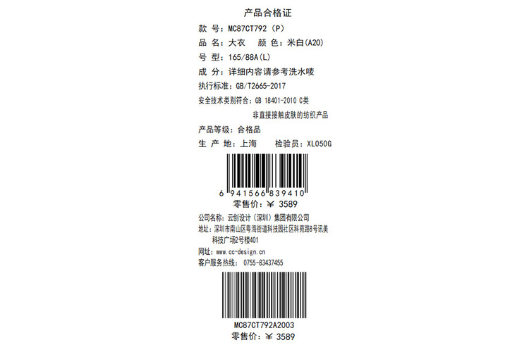 臣禾CHENHE短款派克9204010137