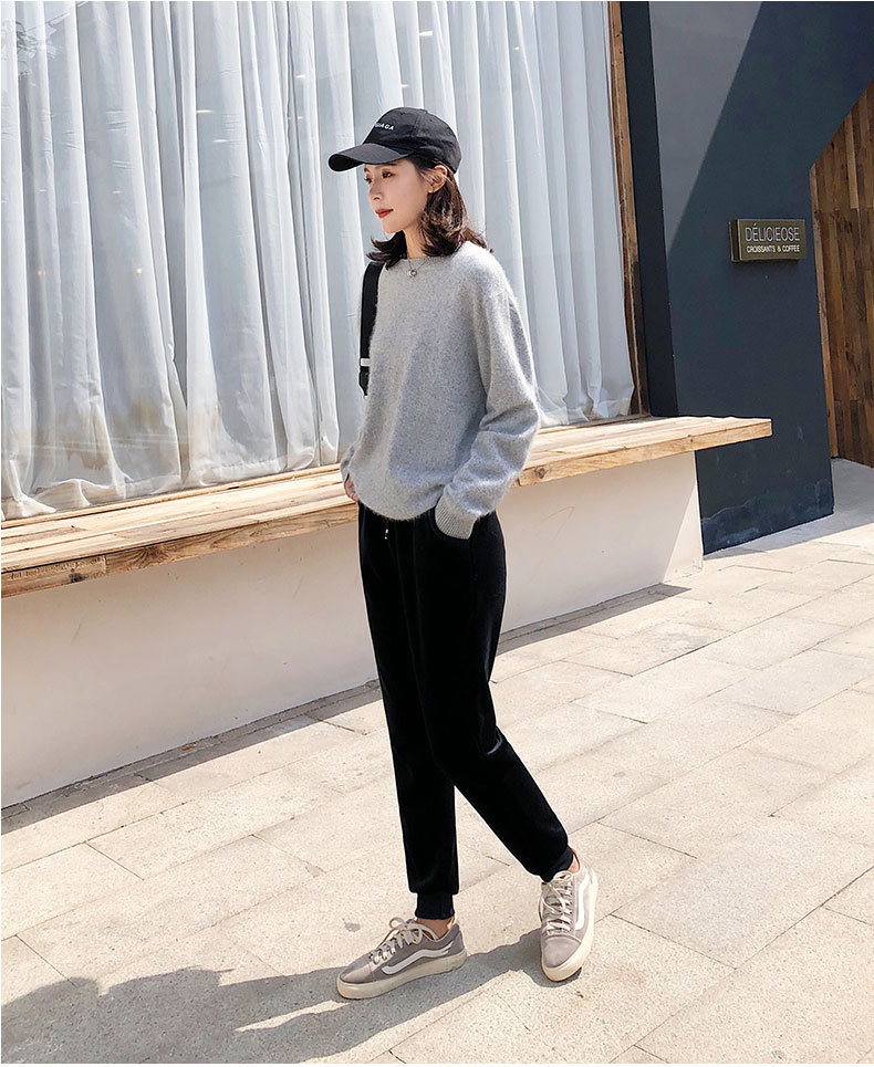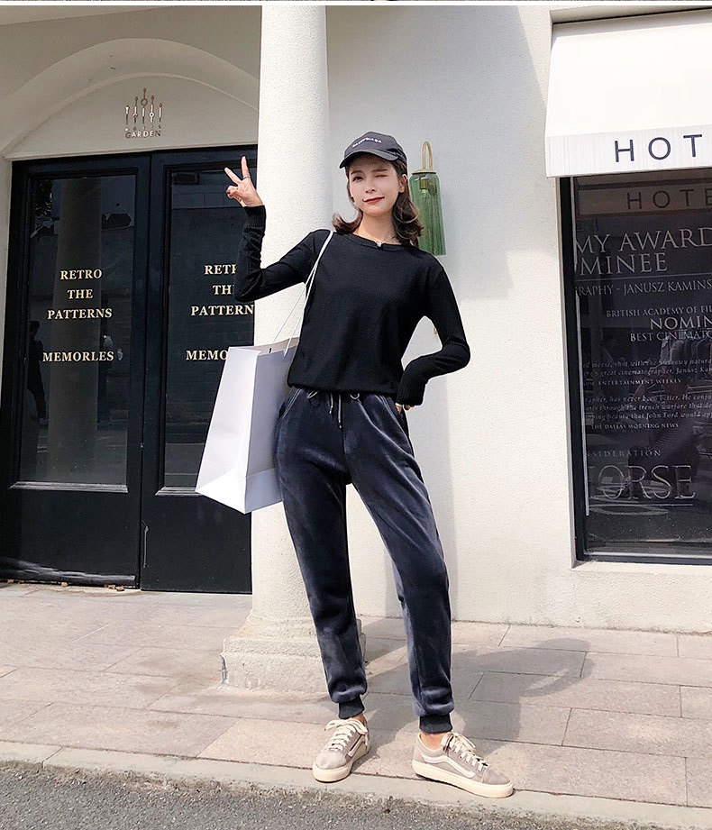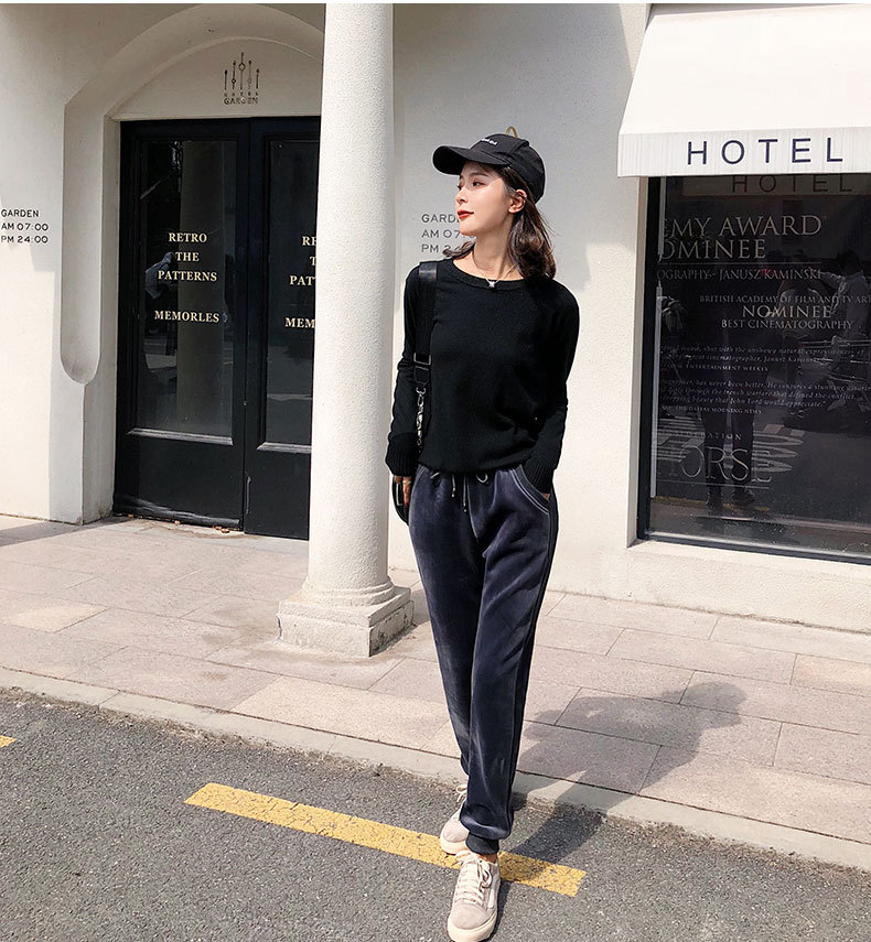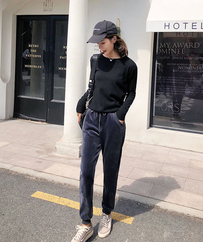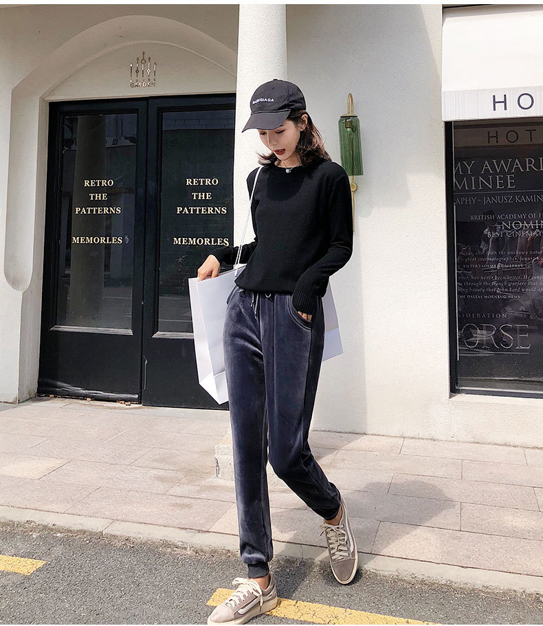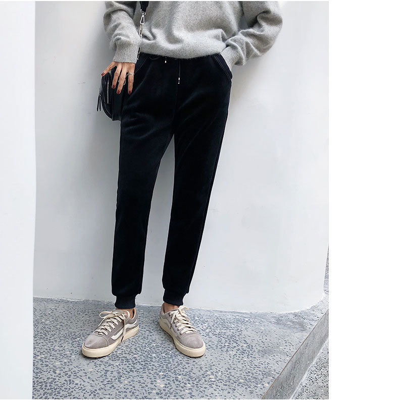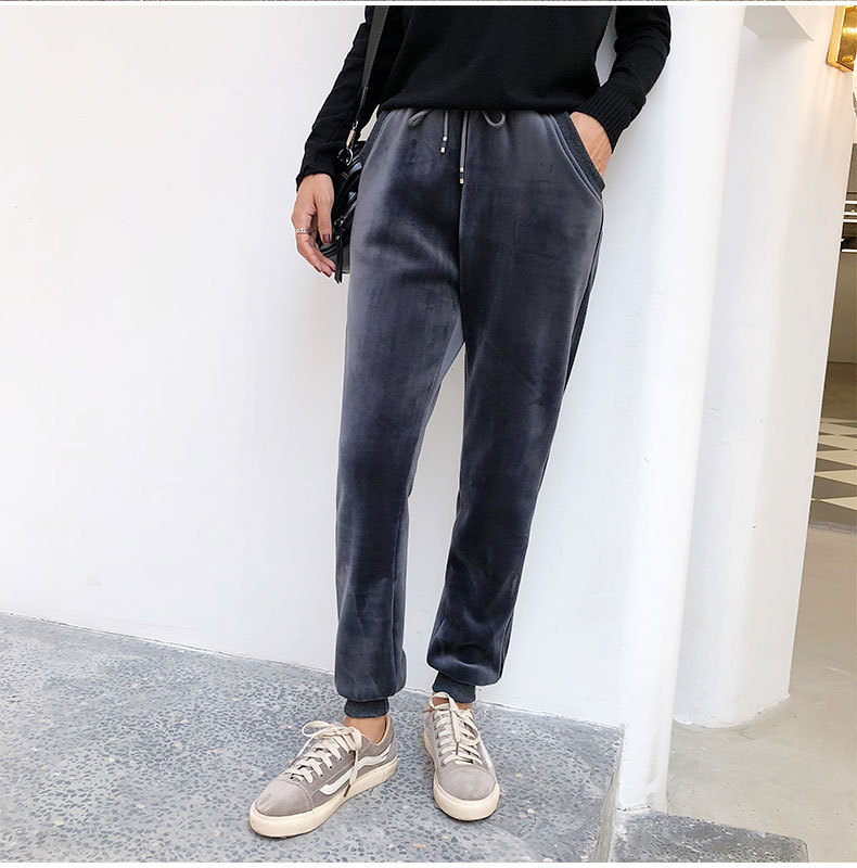 XF-z128加绒加厚双面绒运动裤女小脚束口保暖休闲打底裤bf哈伦卫裤金丝绒