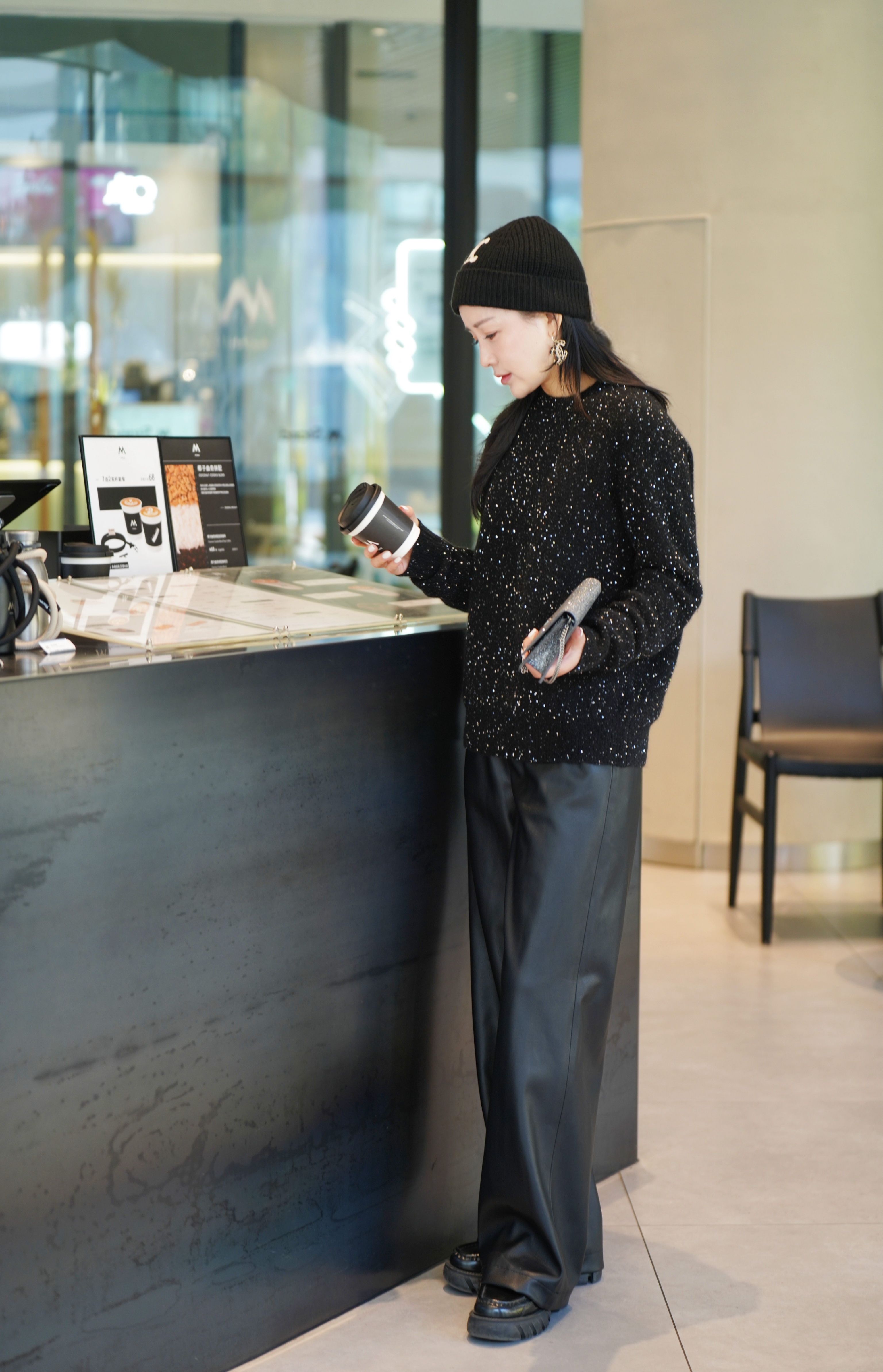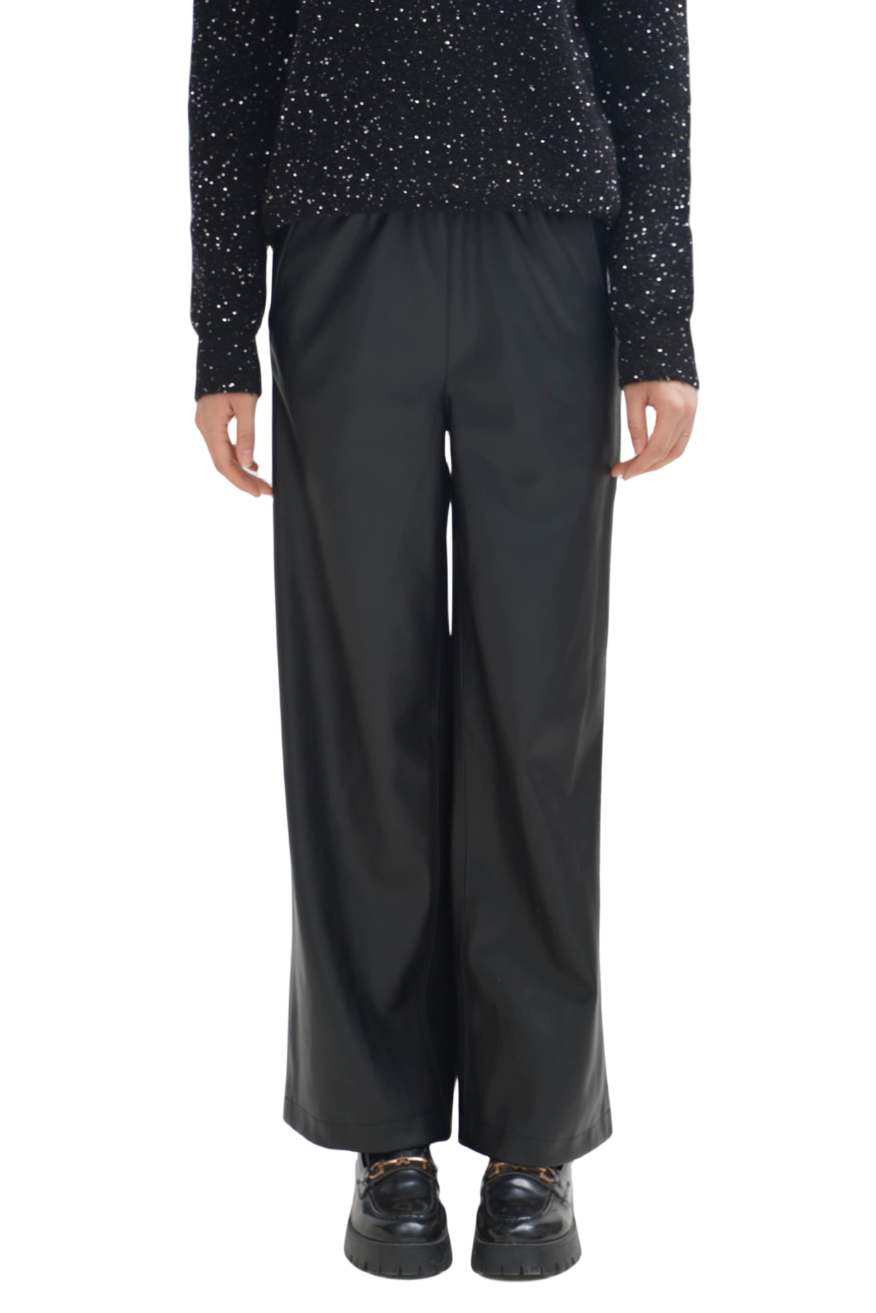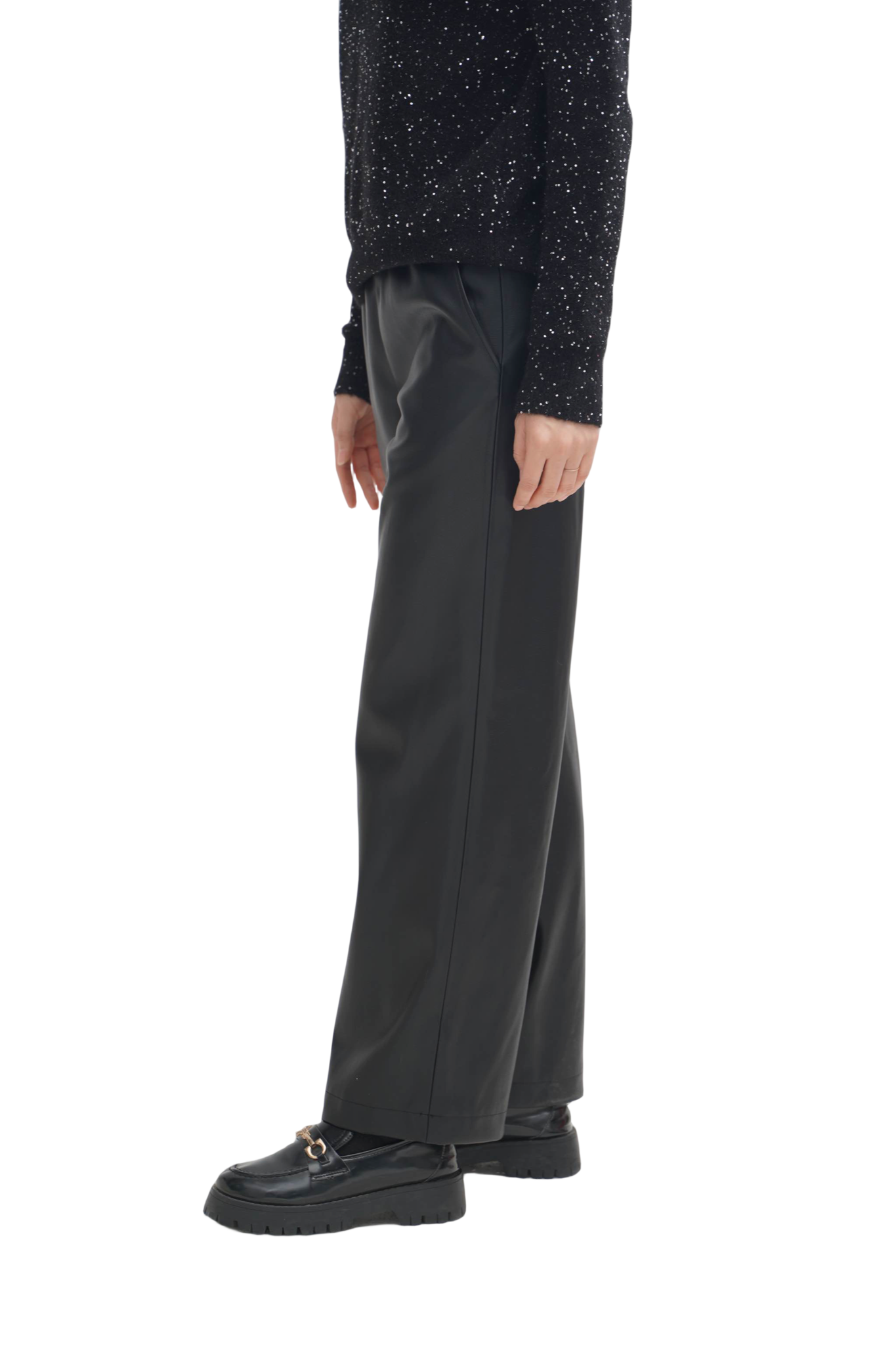 皮裤:选用100%聚酯纤维的仿羊皮手感面料,细腻柔韧,非常有质感,宽松利落的流线型裤腿,修饰腿型且遮肉显瘦,松紧腰头建议卡码拍小。免洗或轻柔冷水手洗,平铺晾挂。