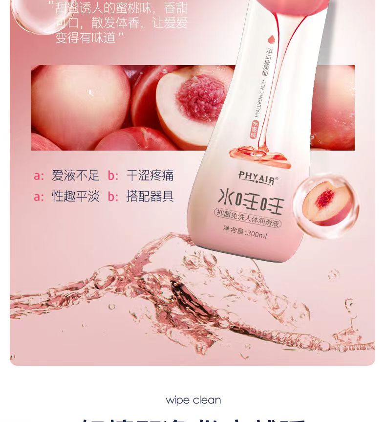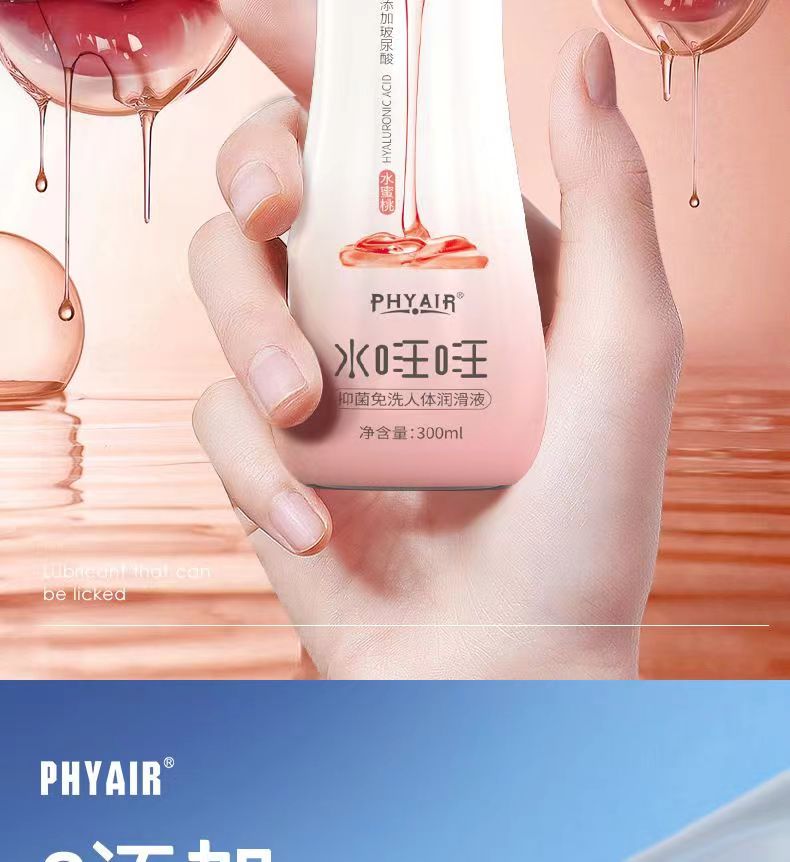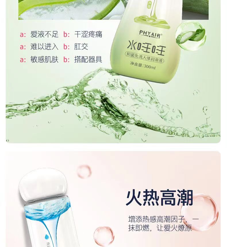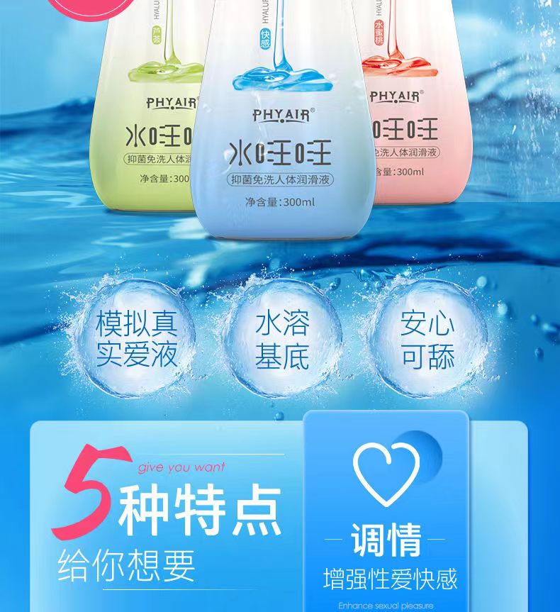 【年末亏本清仓】Phyair水汪汪玻尿酸免洗人体润滑液300ml抑菌水溶性润滑剂润滑油