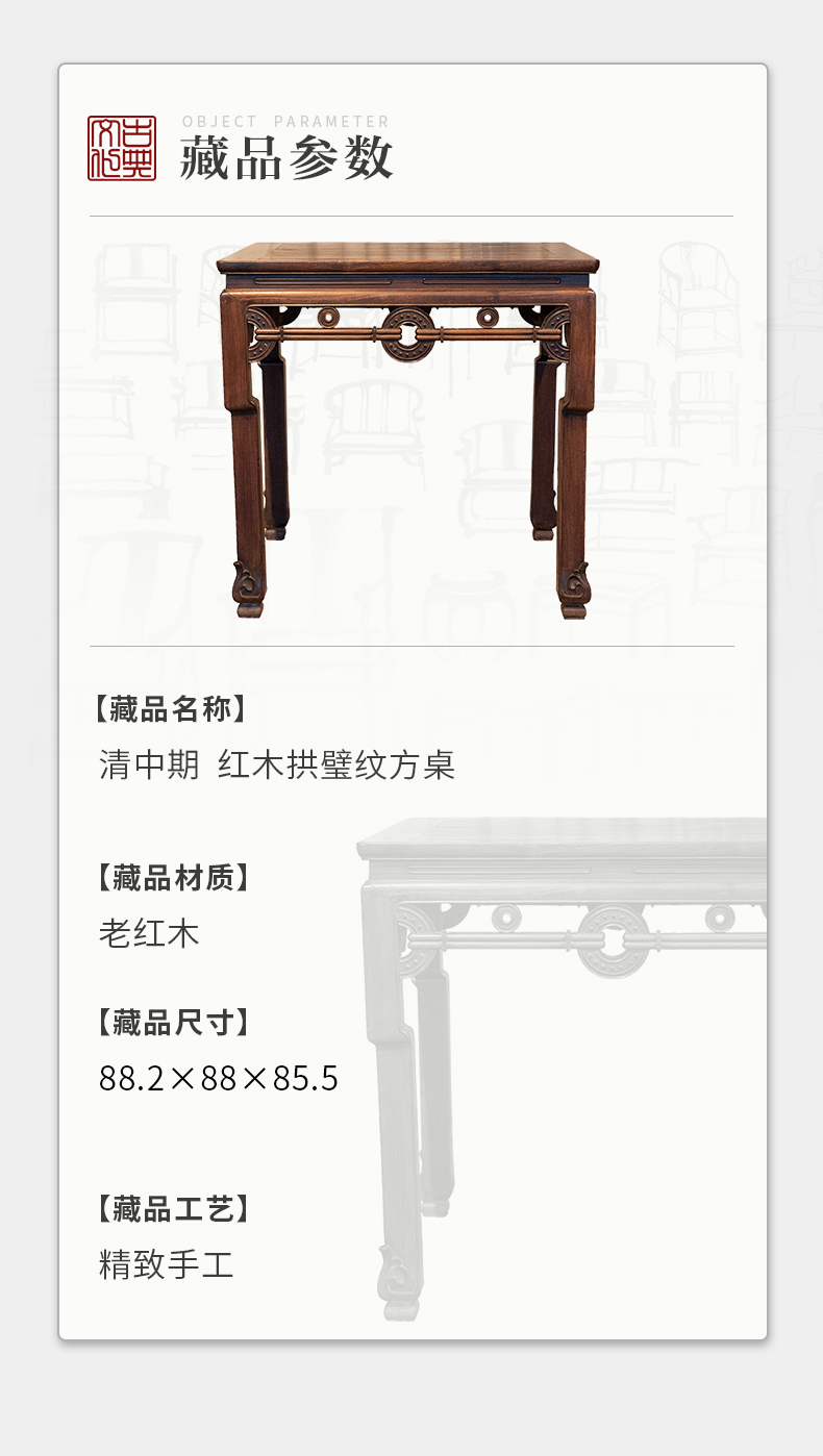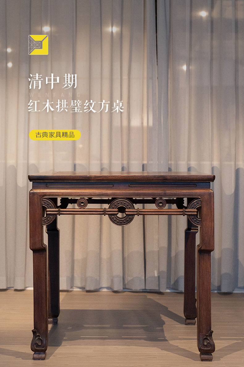 清中期 红木拱璧纹方桌