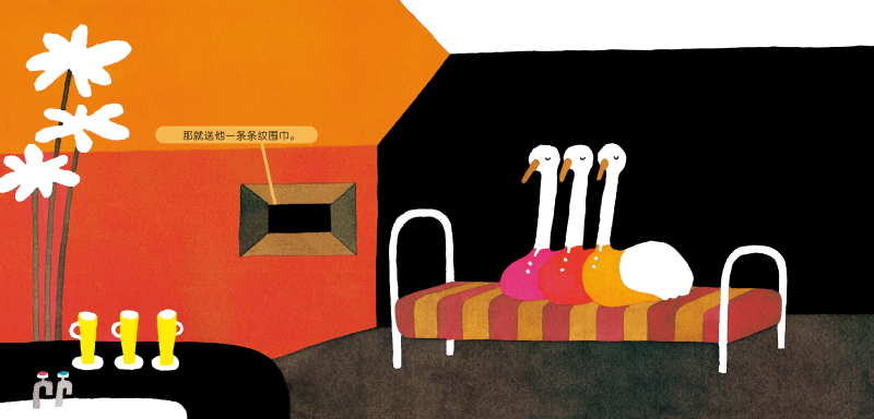 平安夜到了,圣诞老人准备了一大包礼物要送给大家。从窗口看一看,这里是斑马的家,送它条纹围巾正合适。可翻页一看,原来屋子里住的是三只鸵鸟。哇,窗户里还有一排白森森的牙齿,这是鳄鱼的家吗?糊涂的圣诞老人完全搞错对象,送错了礼物,这可怎么办?