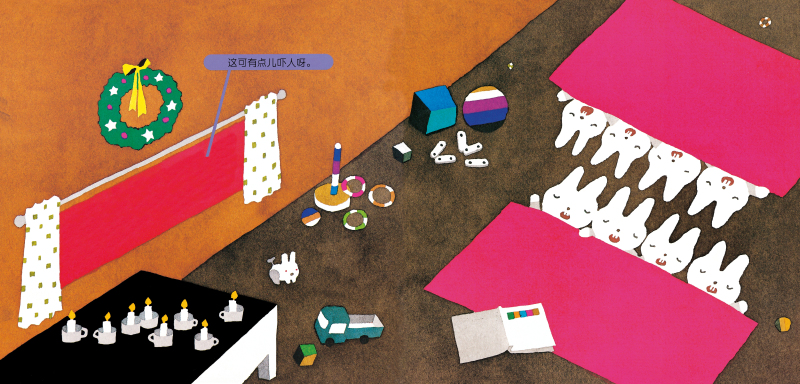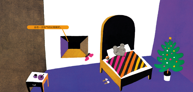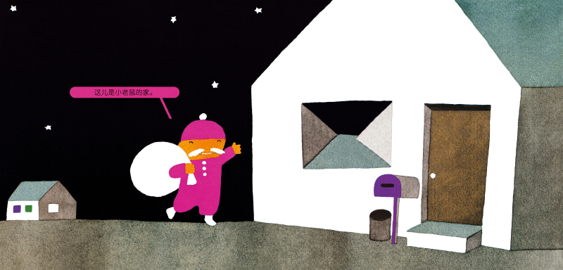 ★儿子非常喜欢这本书,看了很多遍,每次看到圣诞老人在窗外送礼物时,都会大叫“圣诞老人,你送错啦”。翻到下一页,出现房间全貌,发现屋子里住的是谁时,又会兴奋地说“你看,我说吧”,翻页的过程非常快乐。在孩子领会到五味太郎幽默的那一瞬间,这本绘本的乐趣就放大了无数倍。 ——日本读者