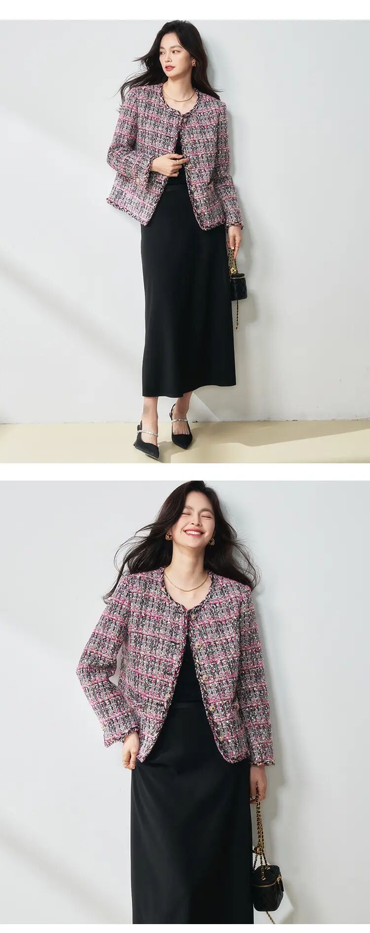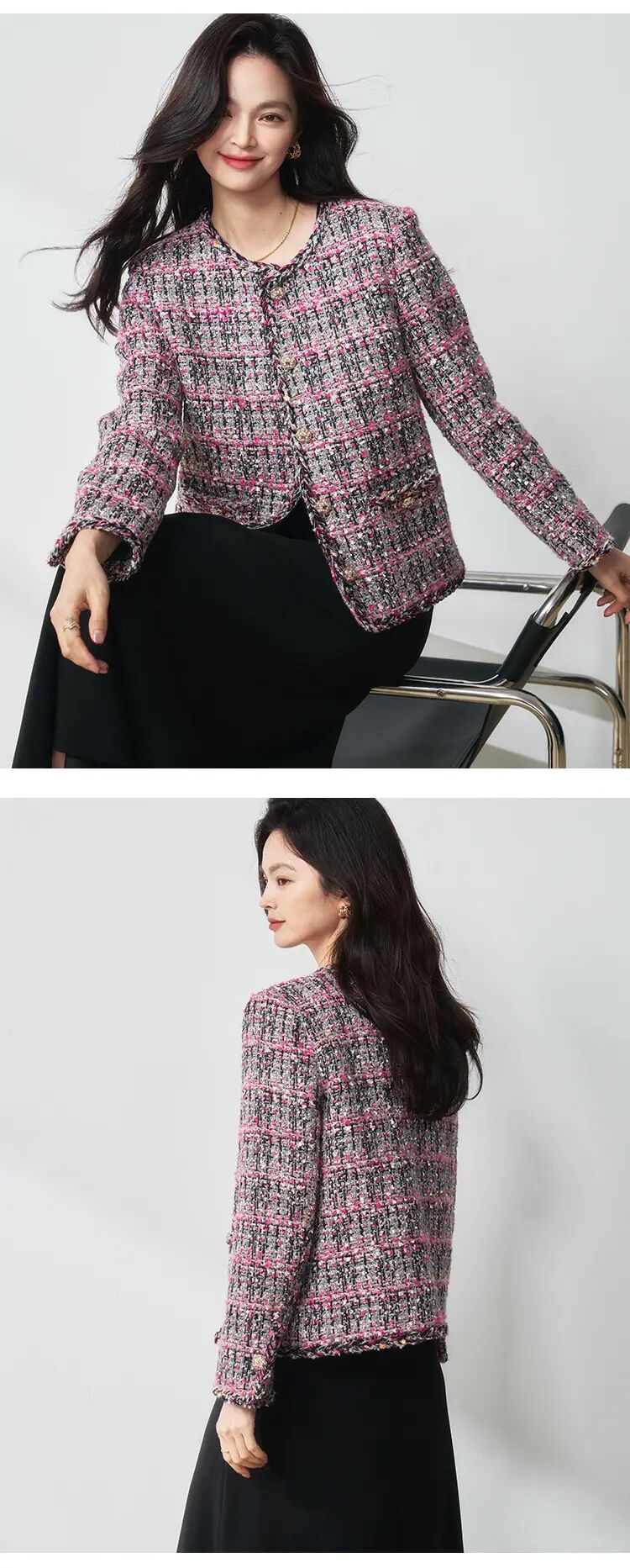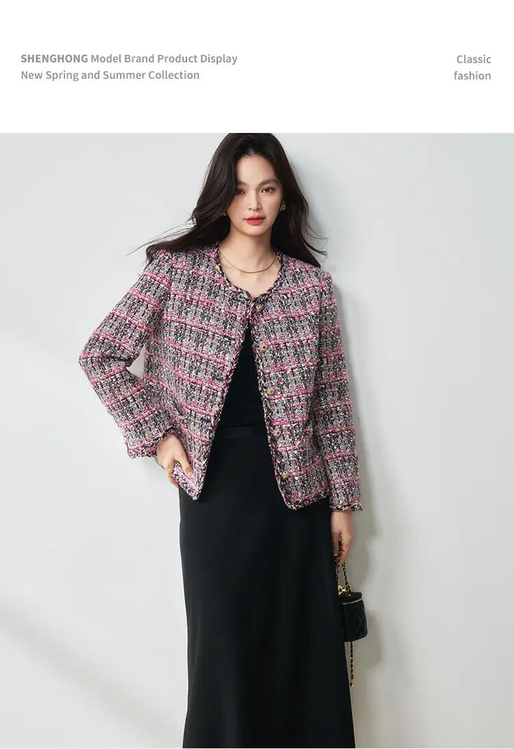 【高货sh】全新升级【铂金会员441/天猫599/差价158】(40959) 洛诗琳25春荆棘玫瑰粉色悬浮花纱玫红色气质小香风外套女