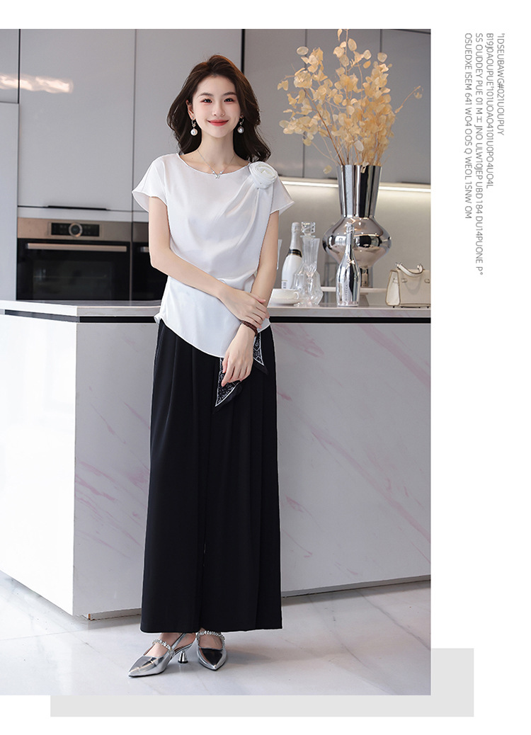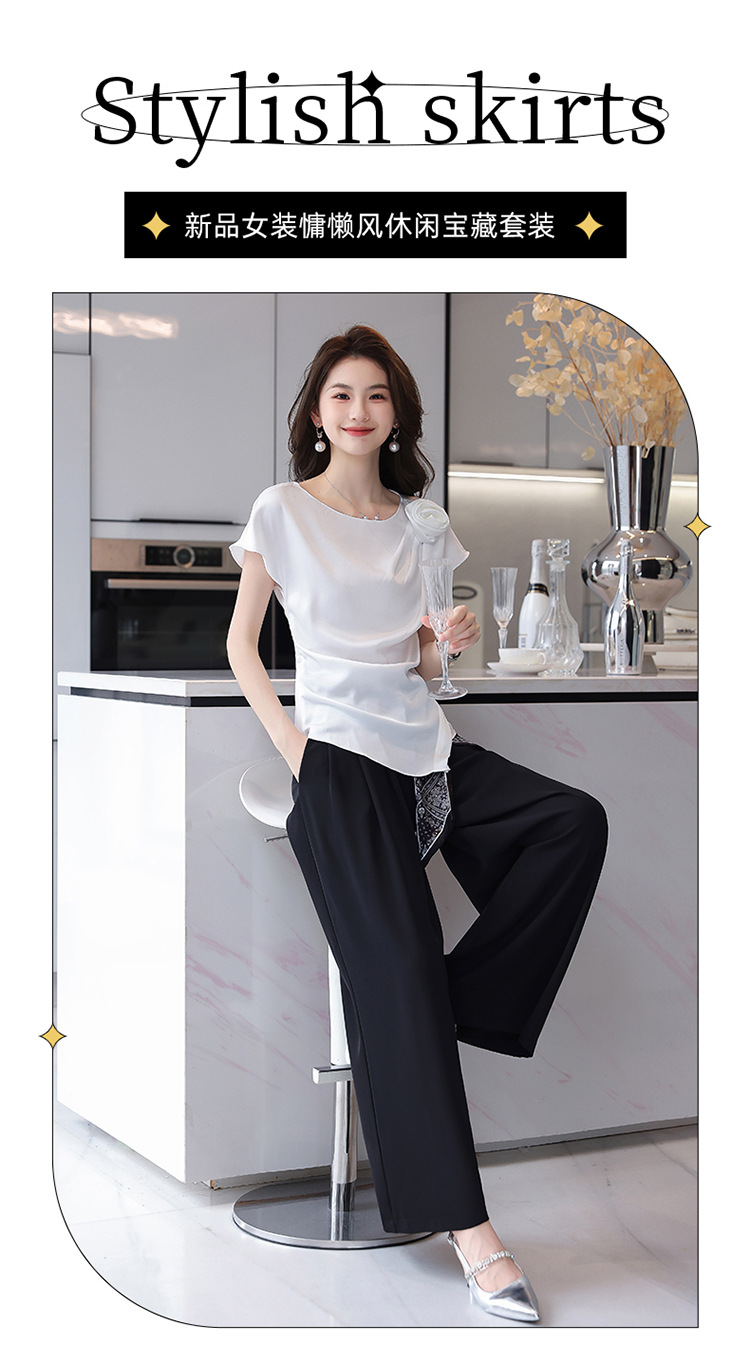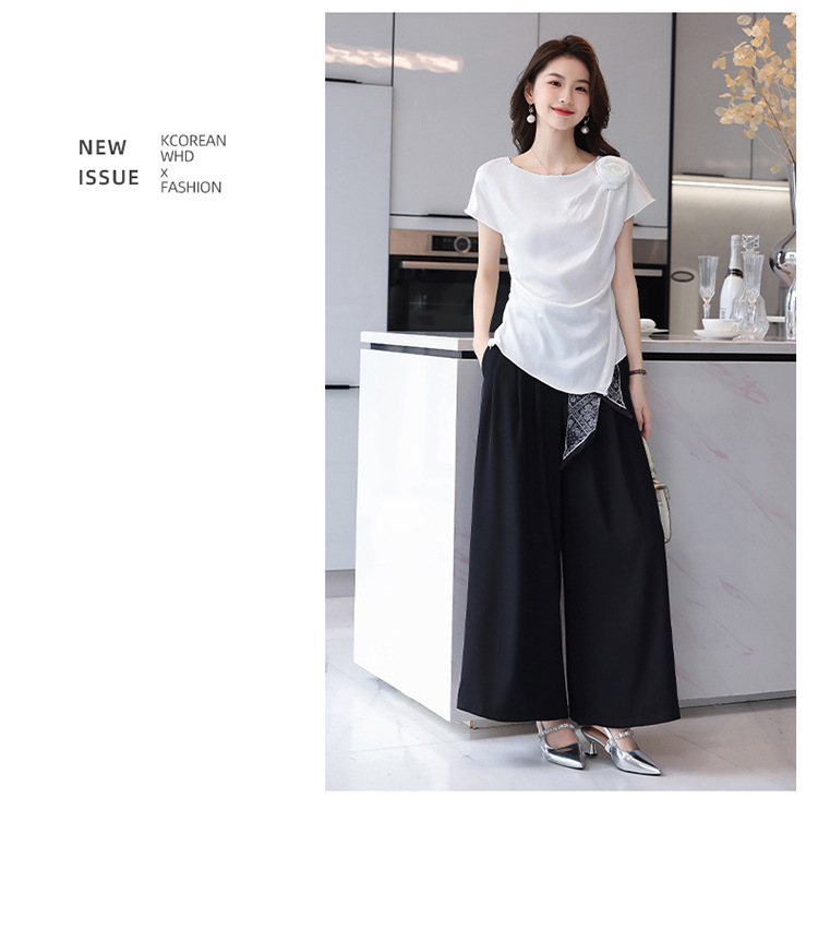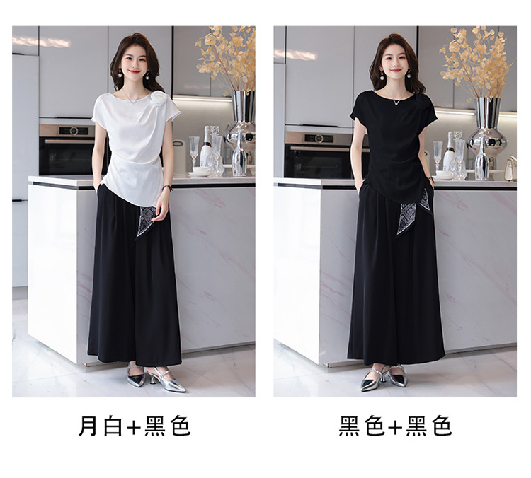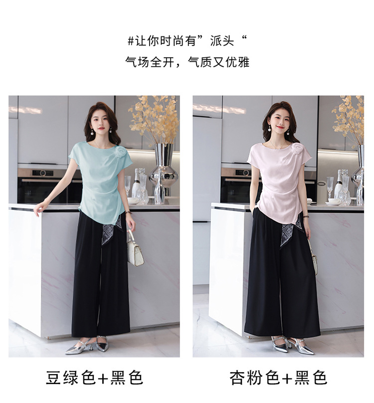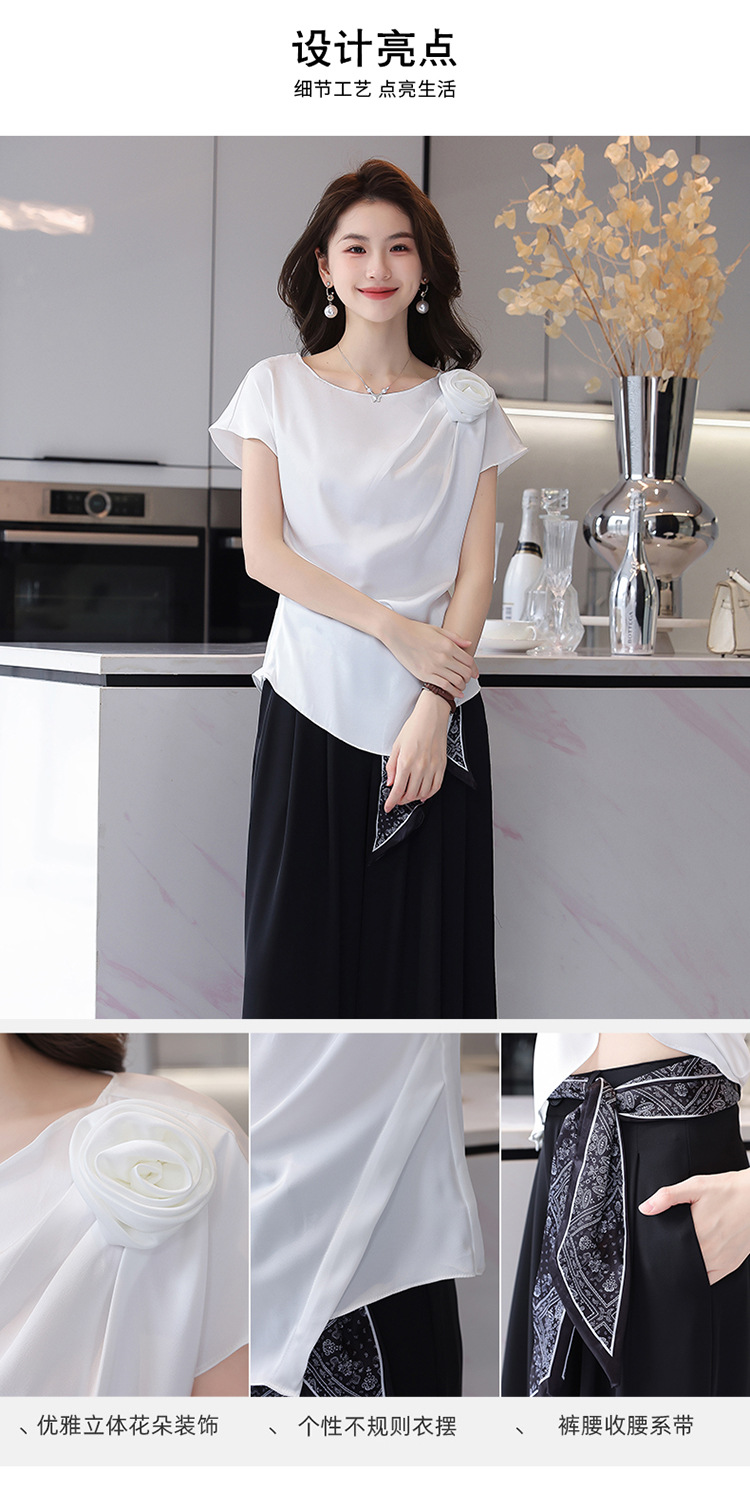 WZNHHBLJRA1157 2025年夏季时尚气质优雅配花不规则剪裁减龄阔腿裤两件套其他涤纶