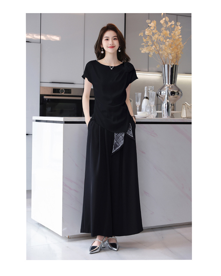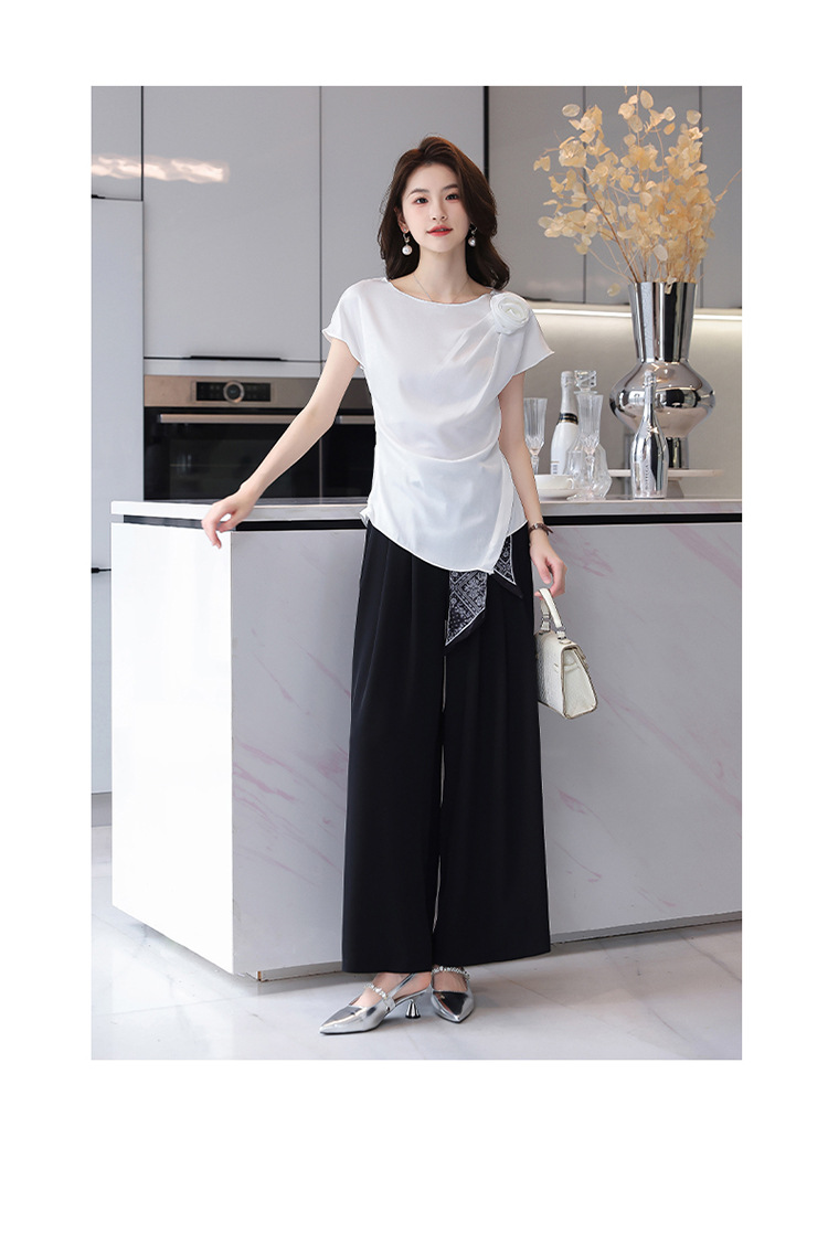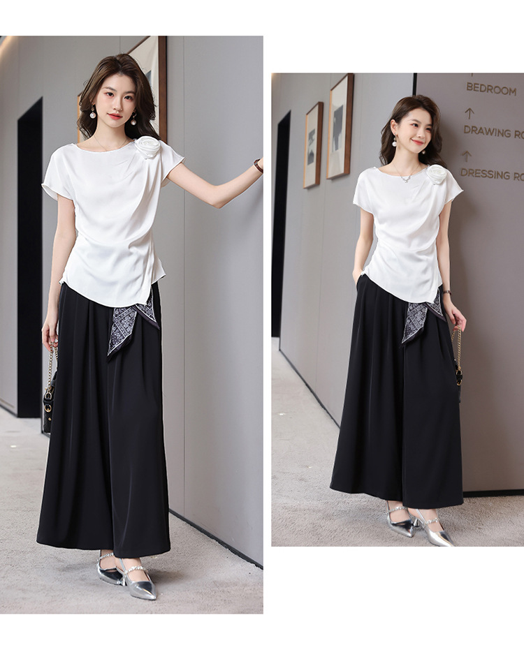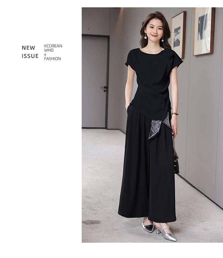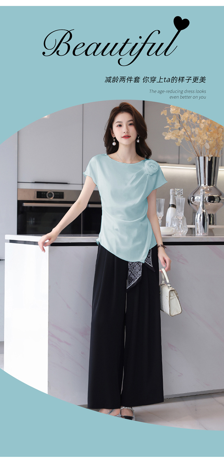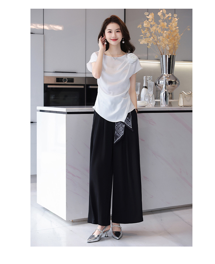 WZNHHBLJRA1157 2025年夏季时尚气质优雅配花不规则剪裁减龄阔腿裤两件套其他涤纶