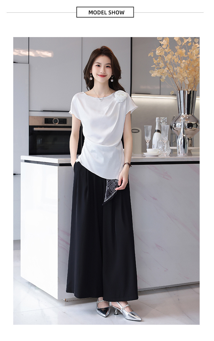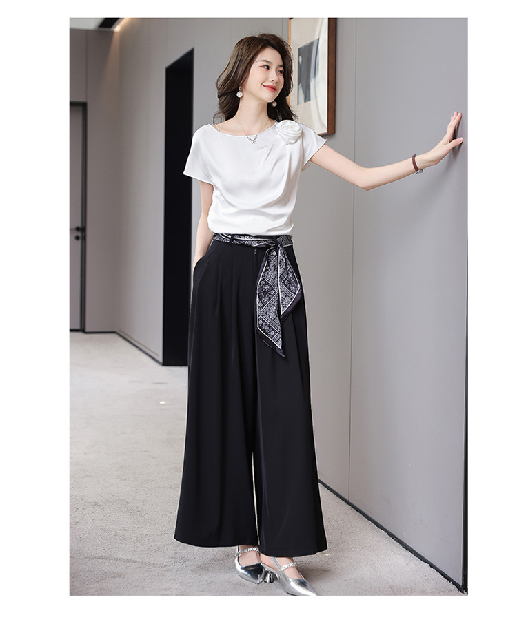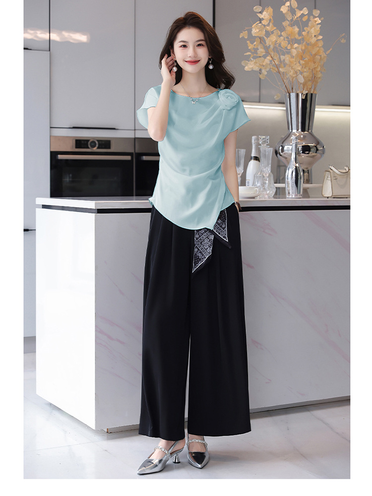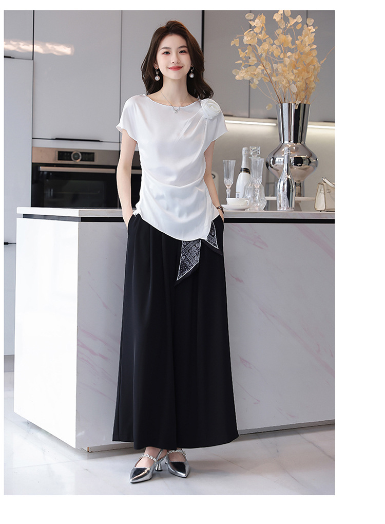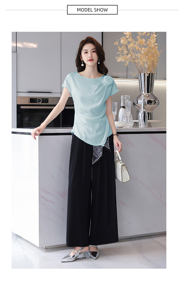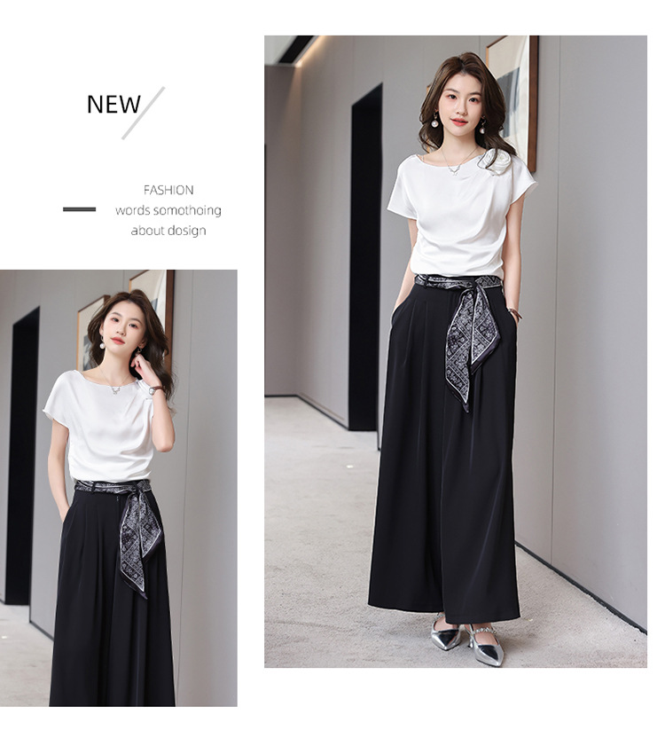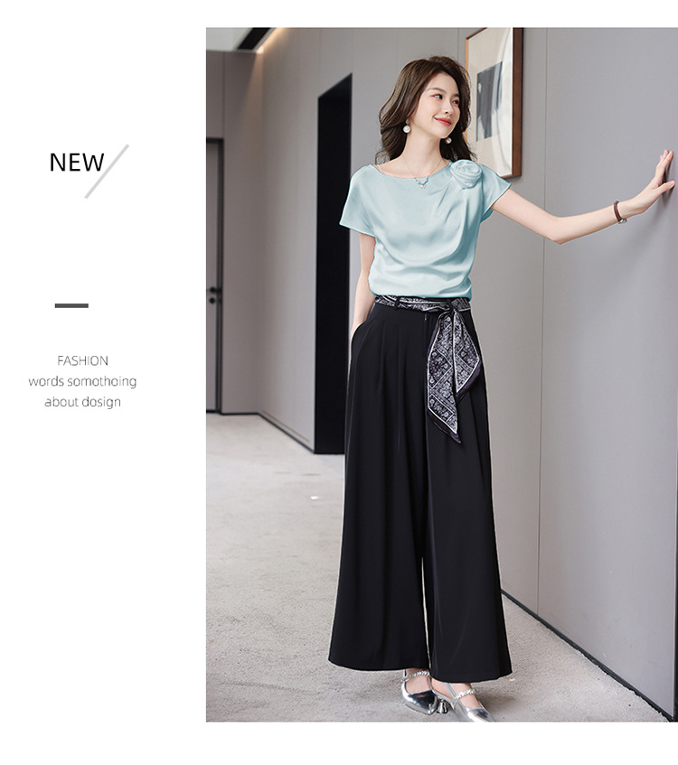 WZNHHBLJRA1157 2025年夏季时尚气质优雅配花不规则剪裁减龄阔腿裤两件套其他涤纶