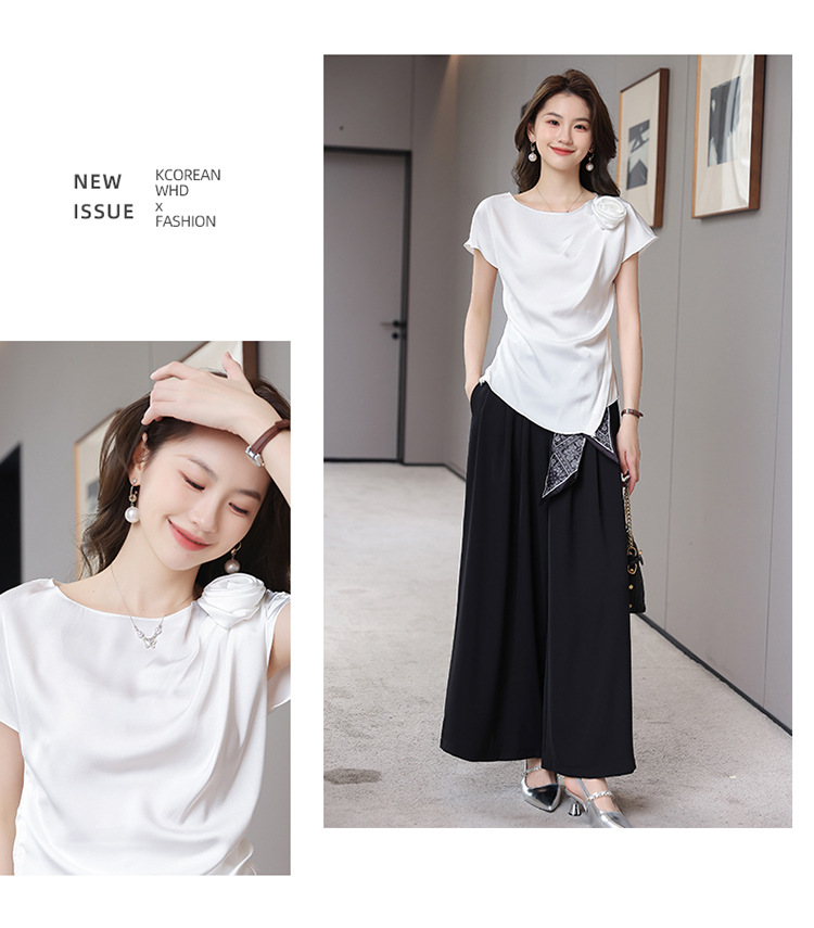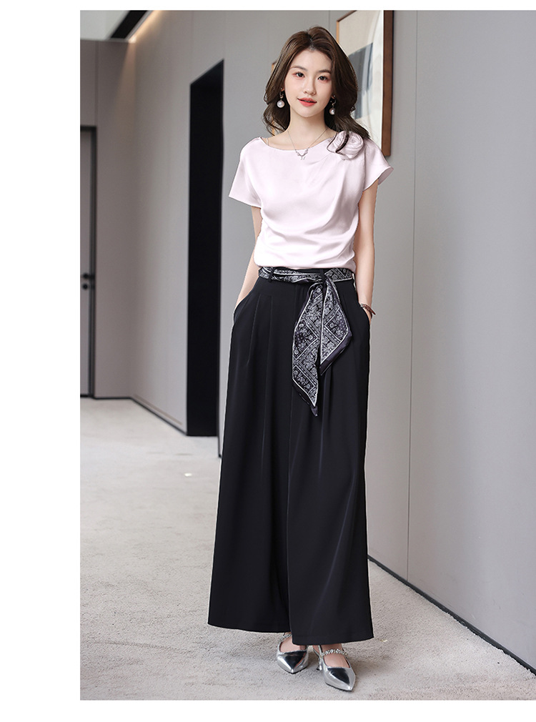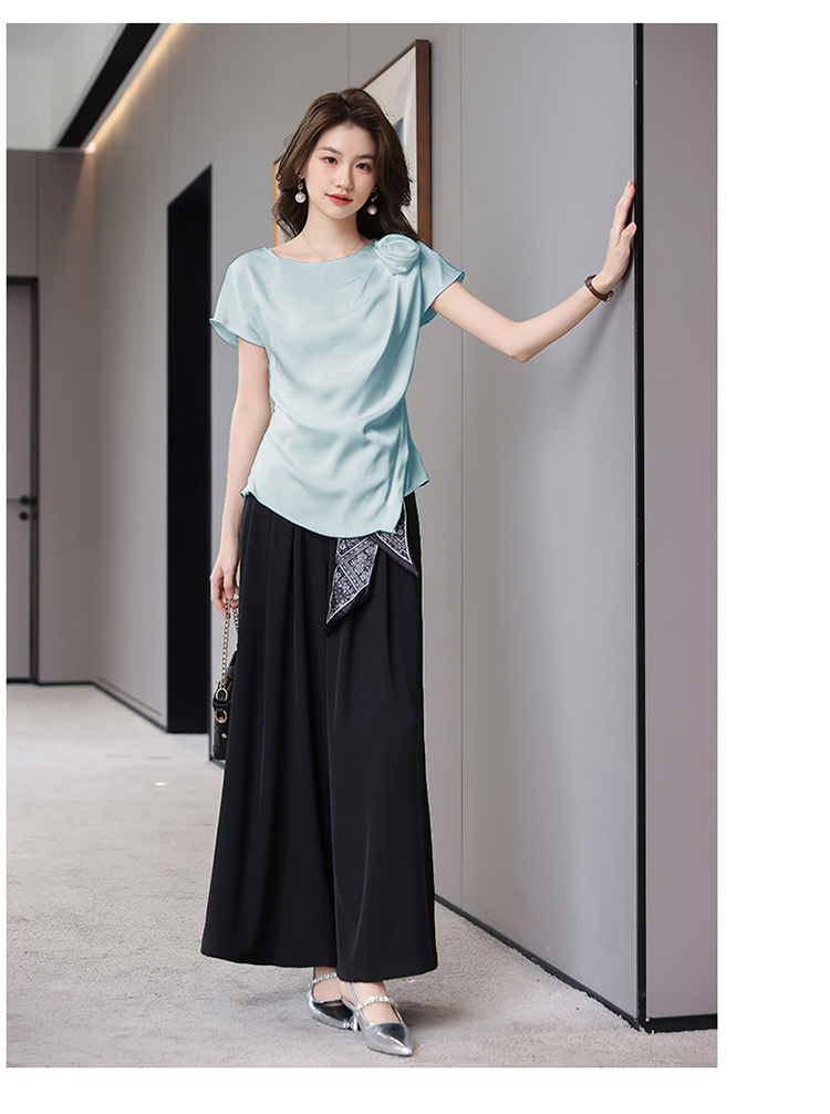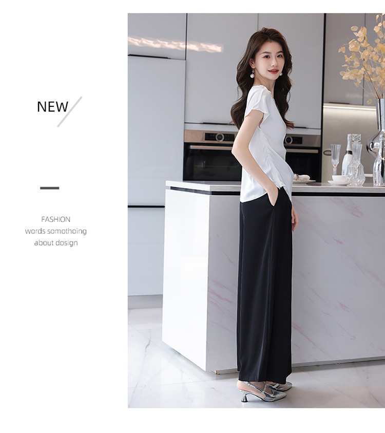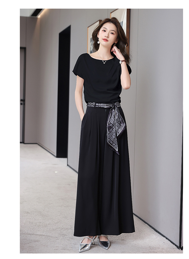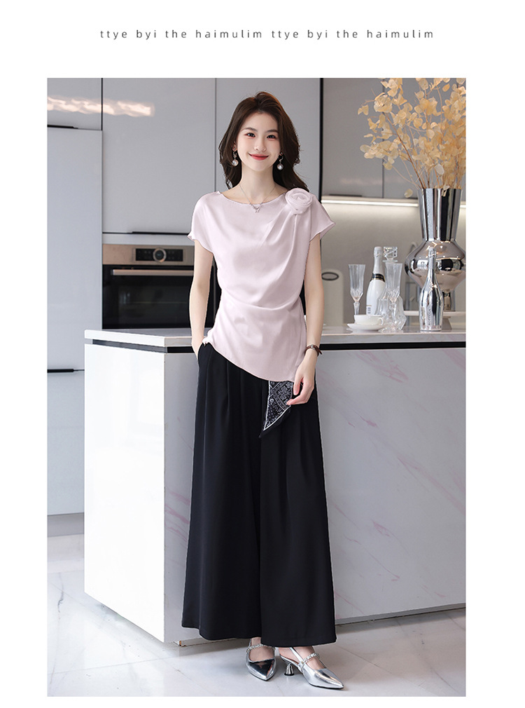 WZNHHBLJRA1157 2025年夏季时尚气质优雅配花不规则剪裁减龄阔腿裤两件套其他涤纶