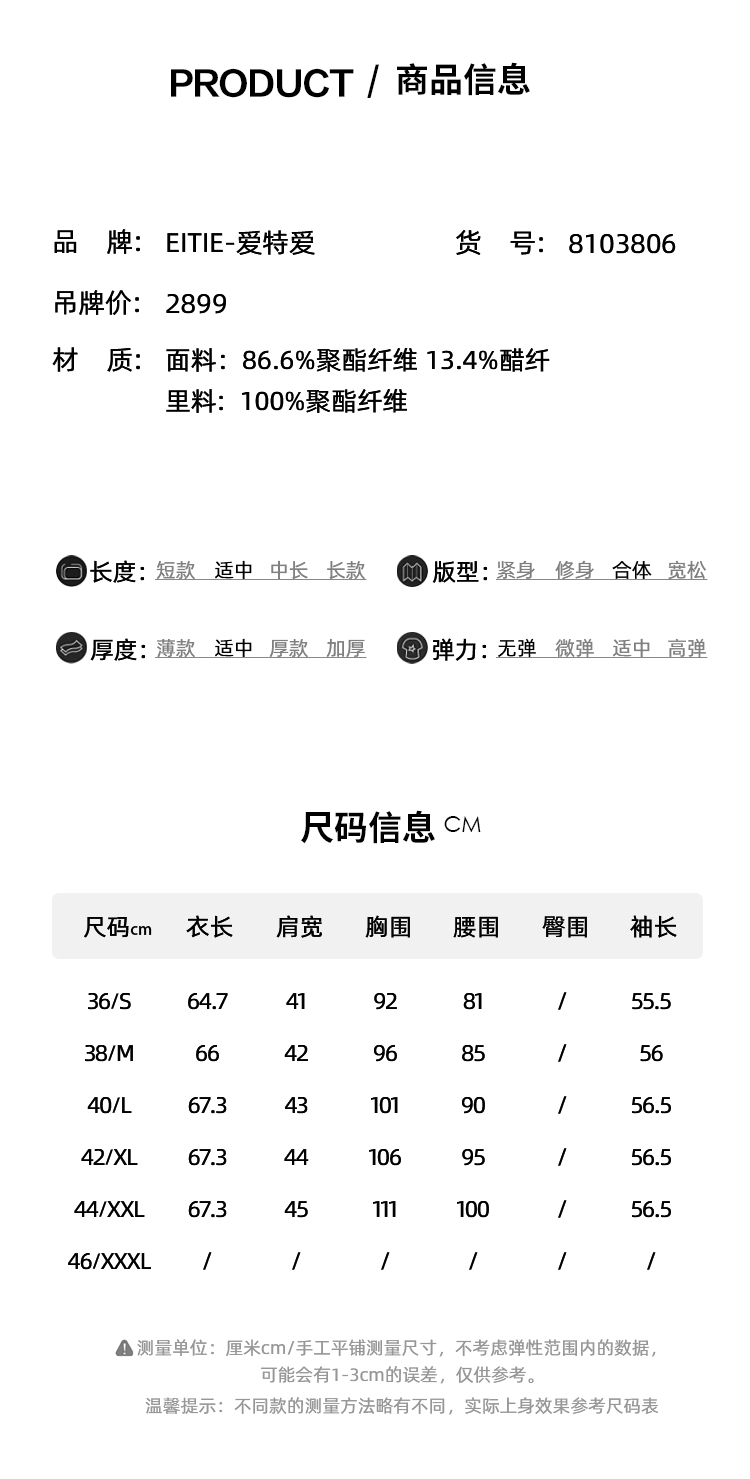 EITIE爱特爱气质干练修身显瘦西装外套春新款8103806