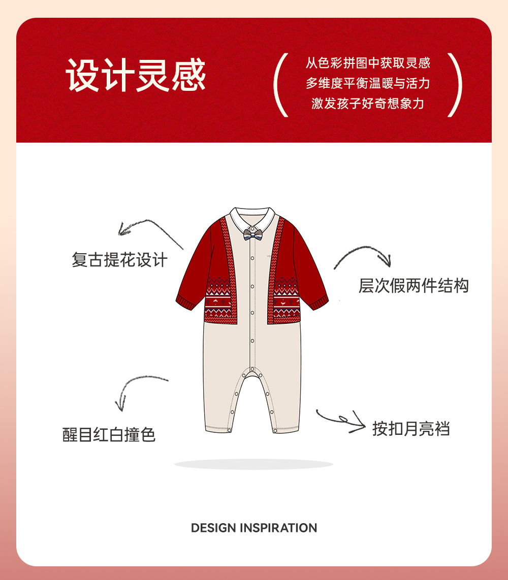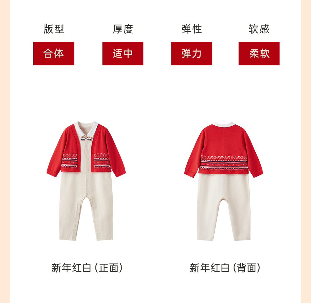 英氏贺新年系列男宝宝假两件连体衣复古绅士衣服