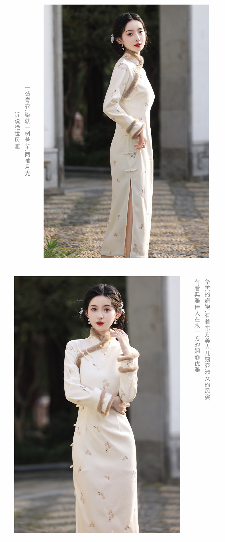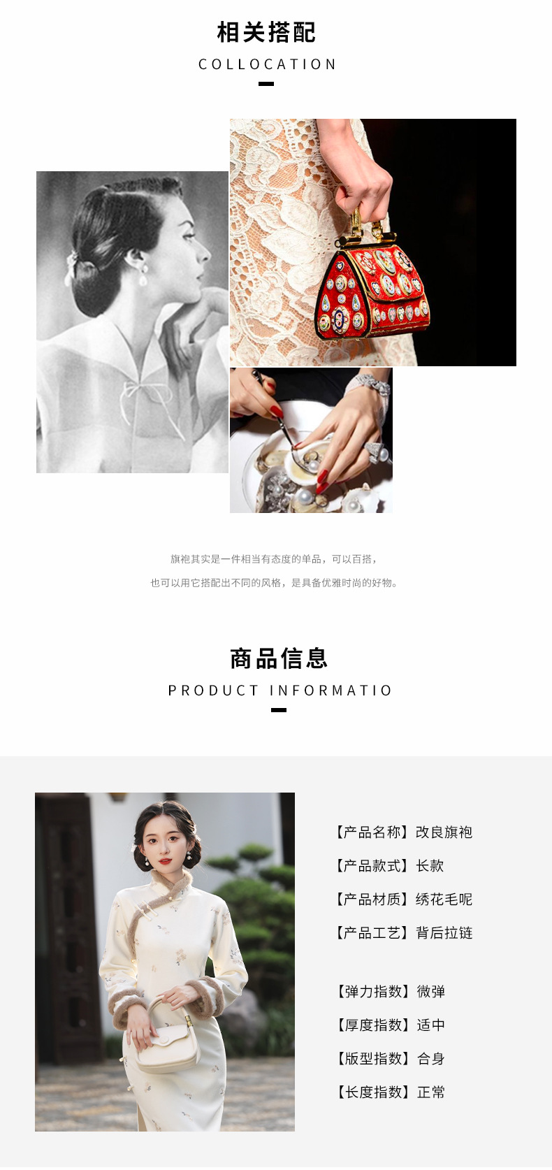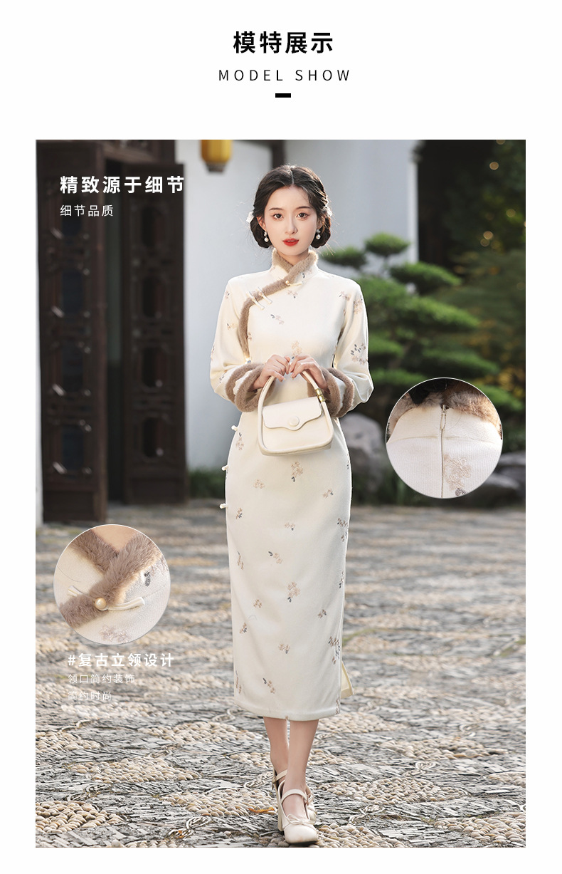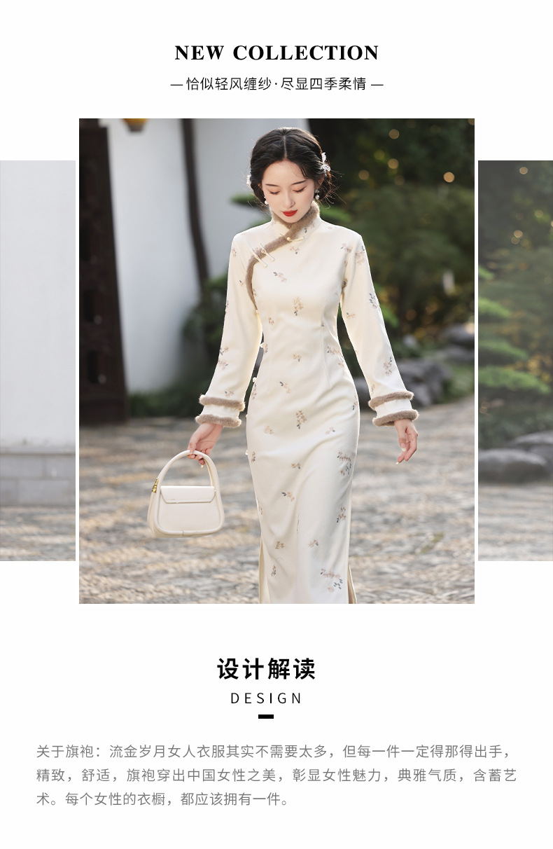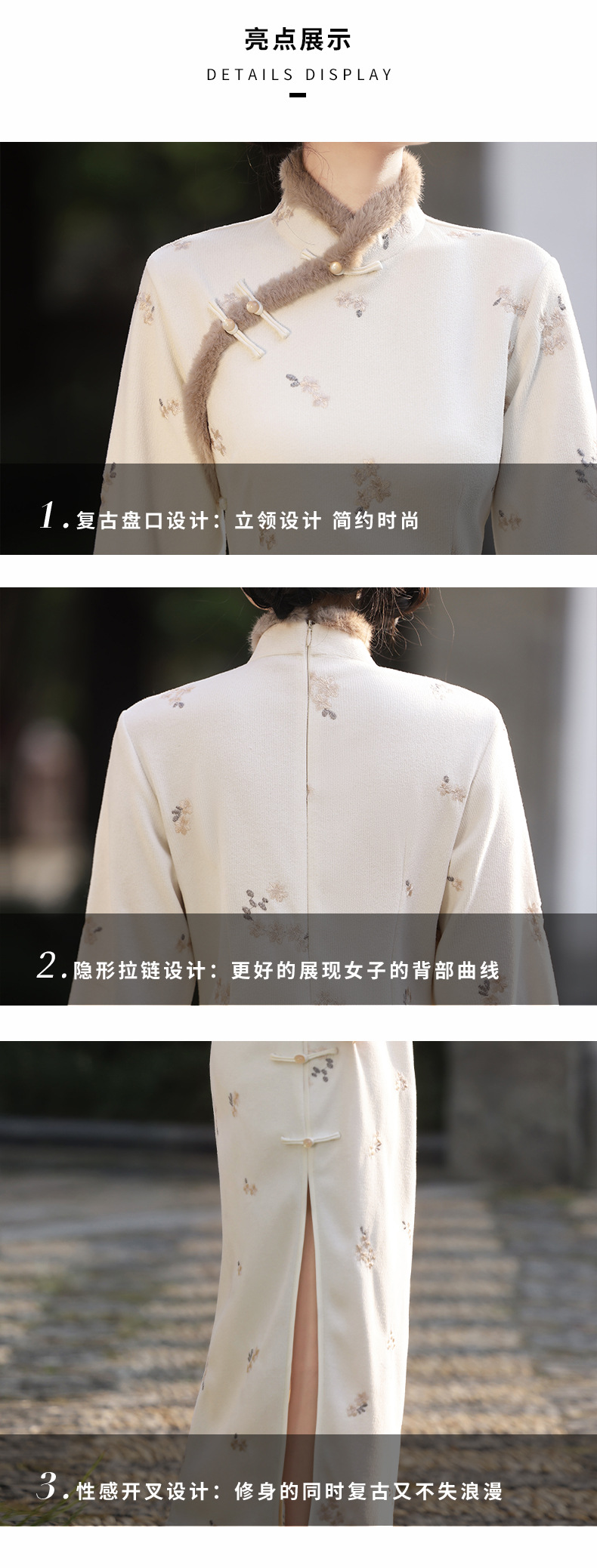 优雅毛领淑女旗袍,日常可穿改良年轻款旗袍YG-2310