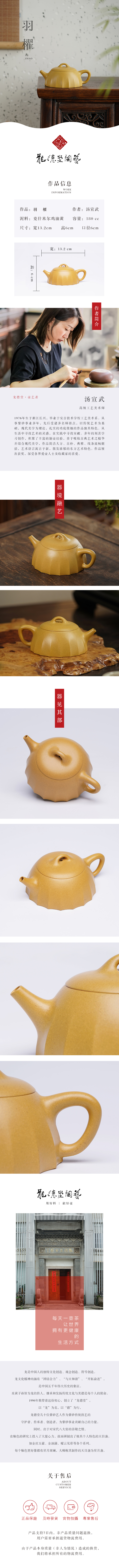 龙德堂陶艺 汤宣武制 《羽櫂》泥料克什米尔鸡油黄 180cc 库存请咨询客服