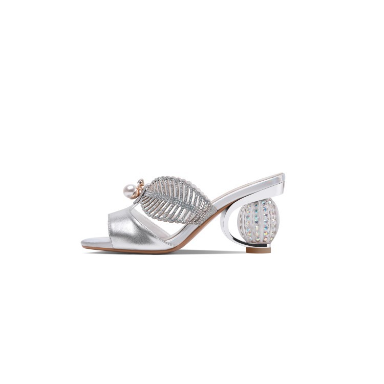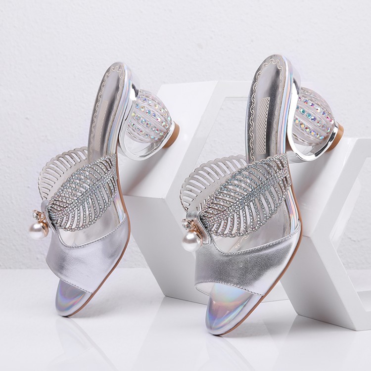 OLD-D31-18真皮粗跟高跟鞋时尚蝴蝶结一字拖鱼嘴凉拖