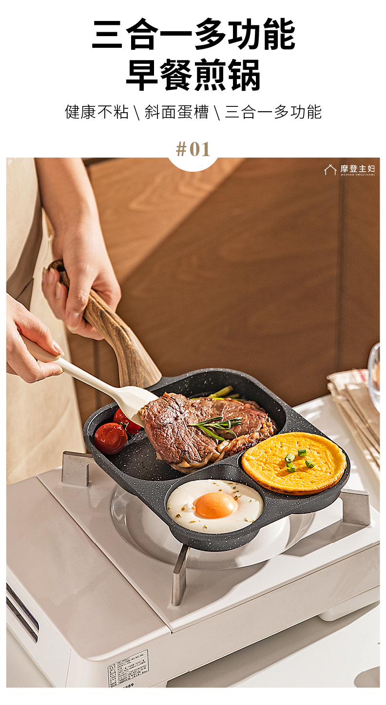 摩登主妇煎蛋锅家用鸡蛋汉堡锅不粘平底锅煎锅煎蛋神器牛排蛋堡锅