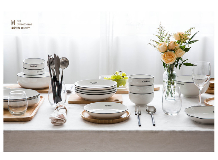 摩登主妇 欧式创意字母陶瓷餐具家用餐盘套装菜盘汤盘米饭碗组合