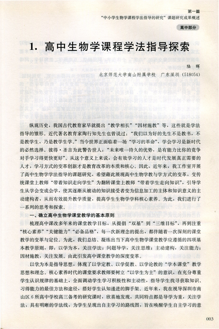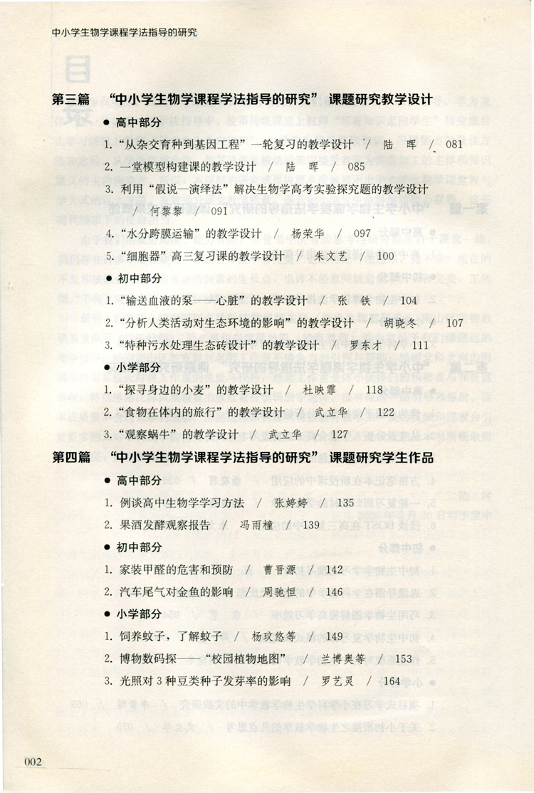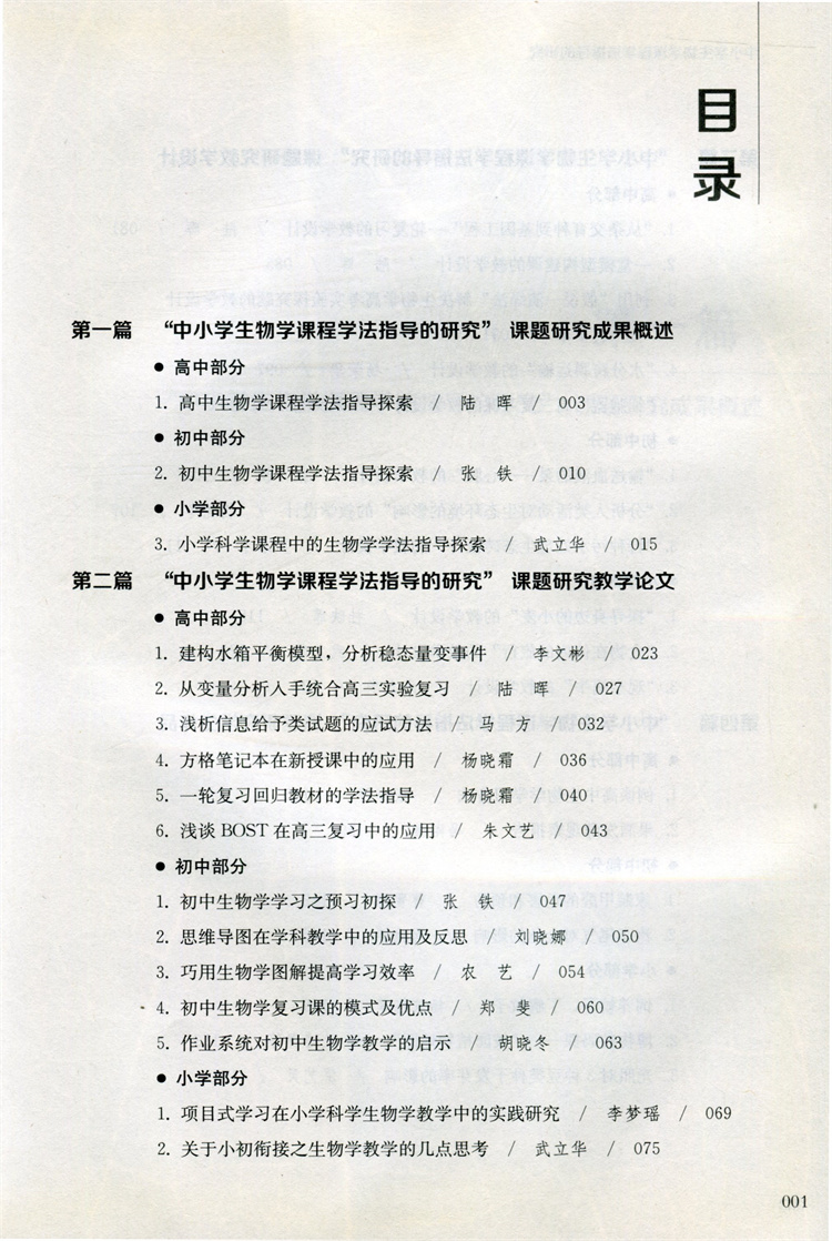 中小学生物学课程学法指导的研究 课题研究成果概述 教学论文等 中小学生物课教学研究 江苏凤凰教育出版社