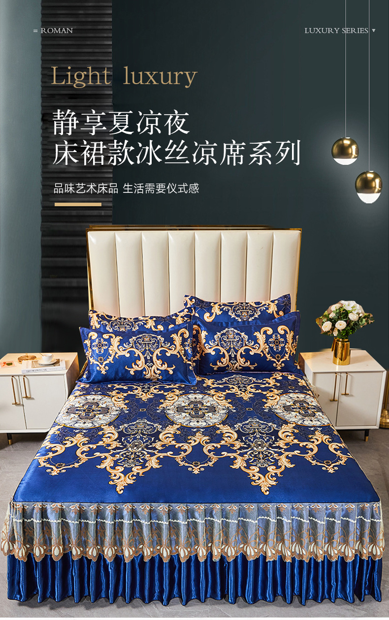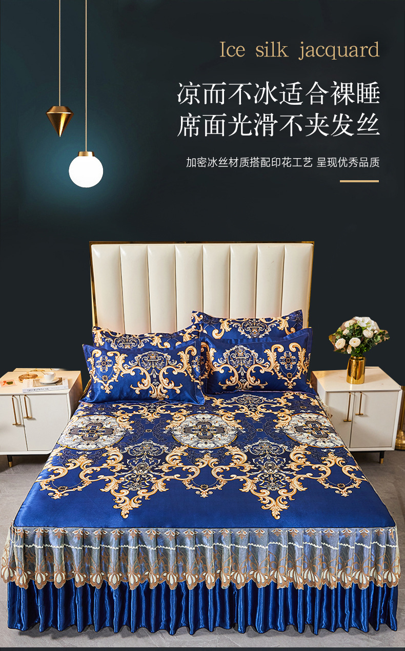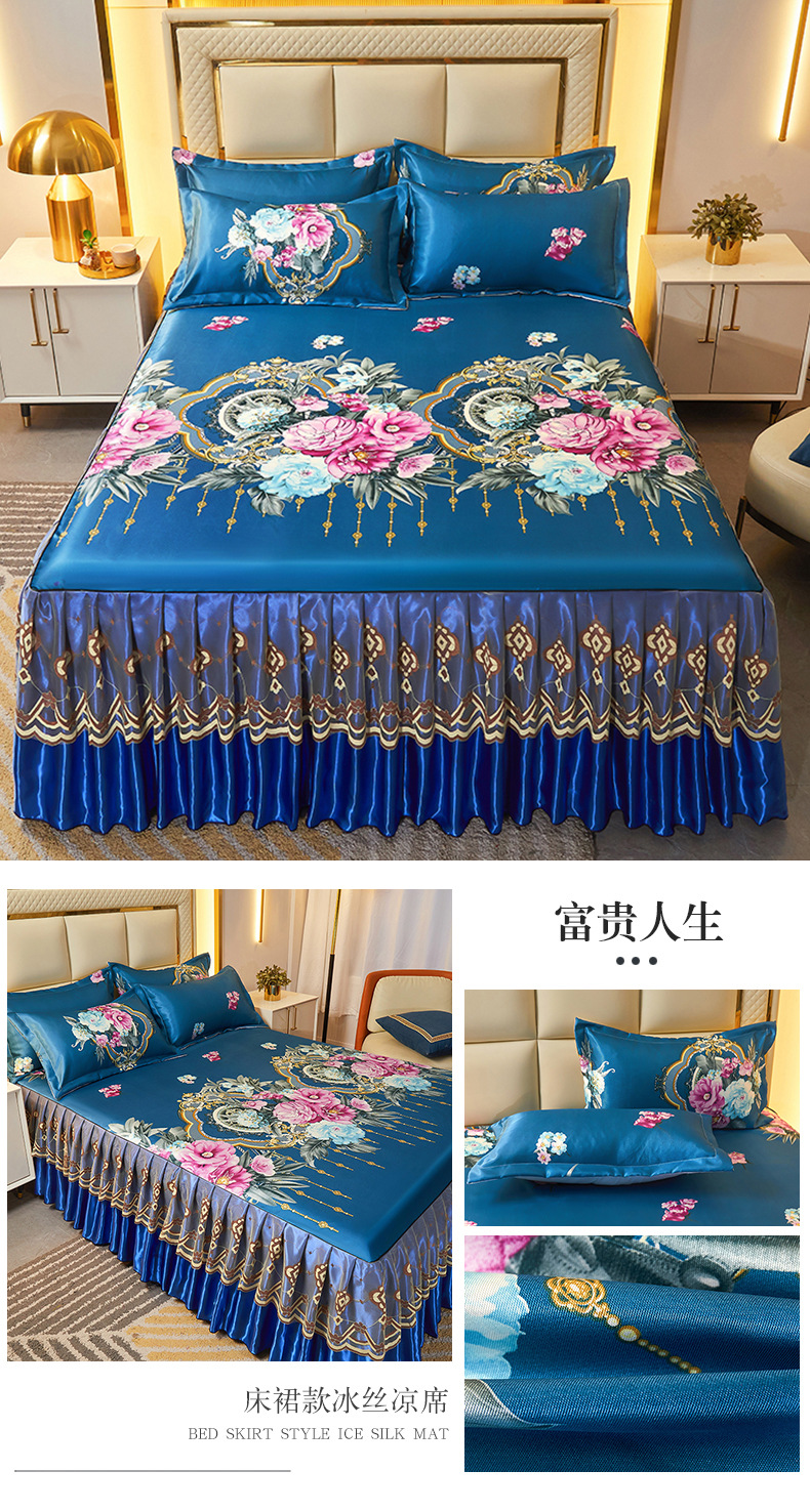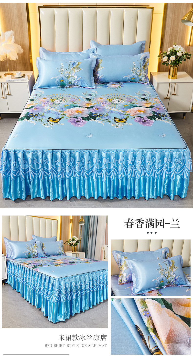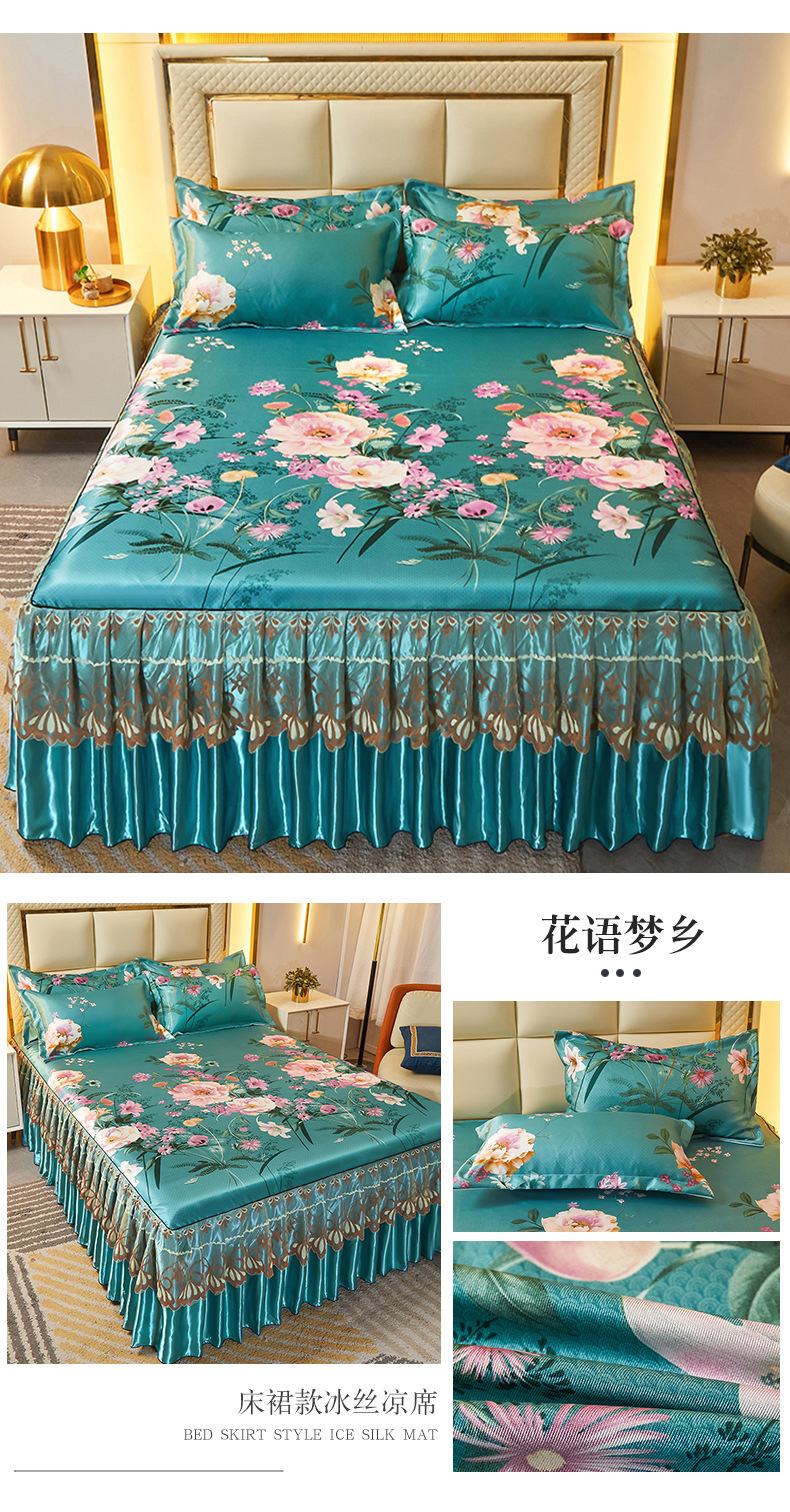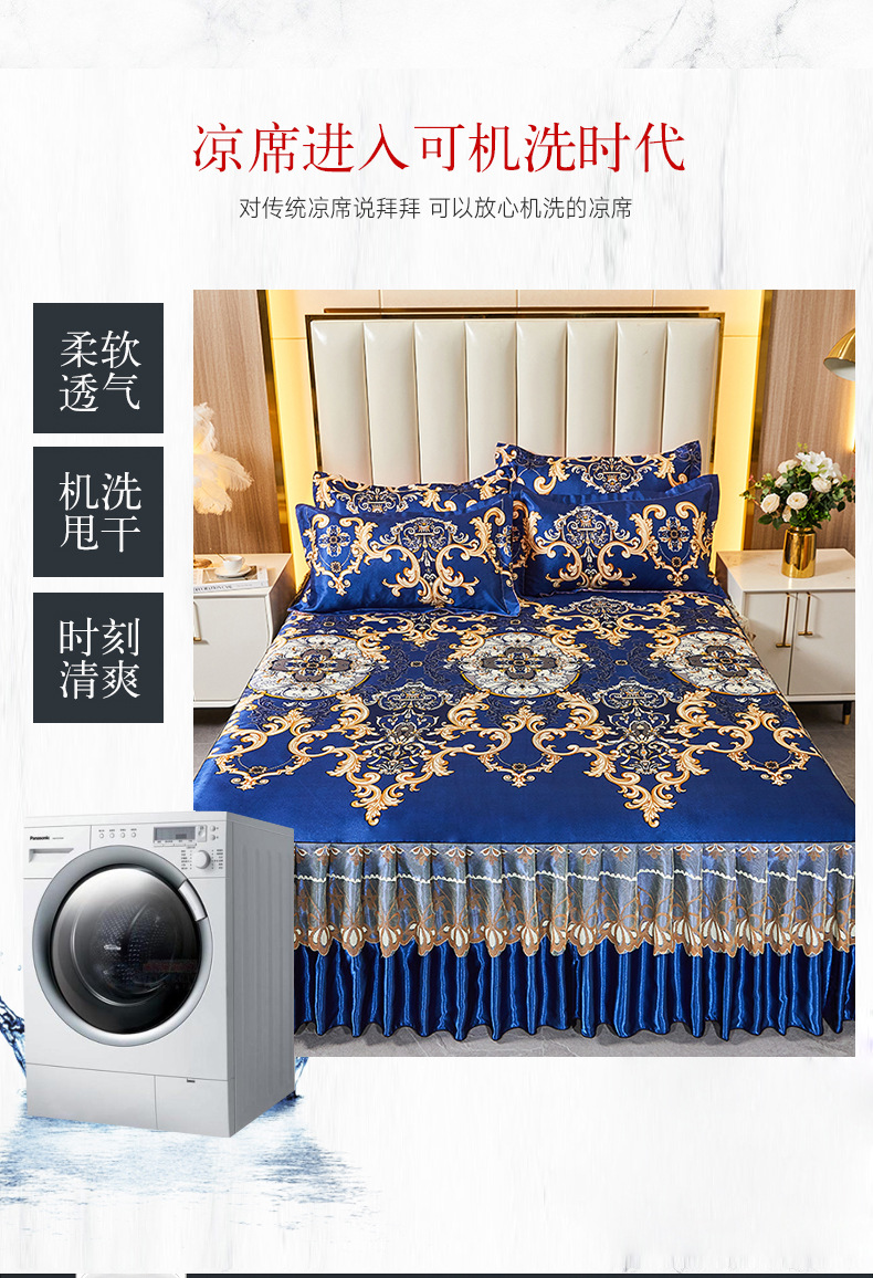 可水洗提花冰丝凉席三件套裙款夏天空调软席