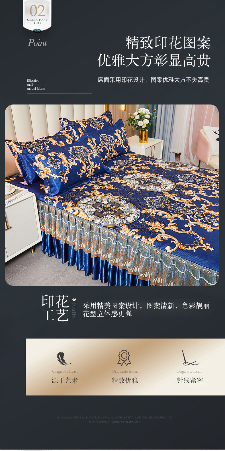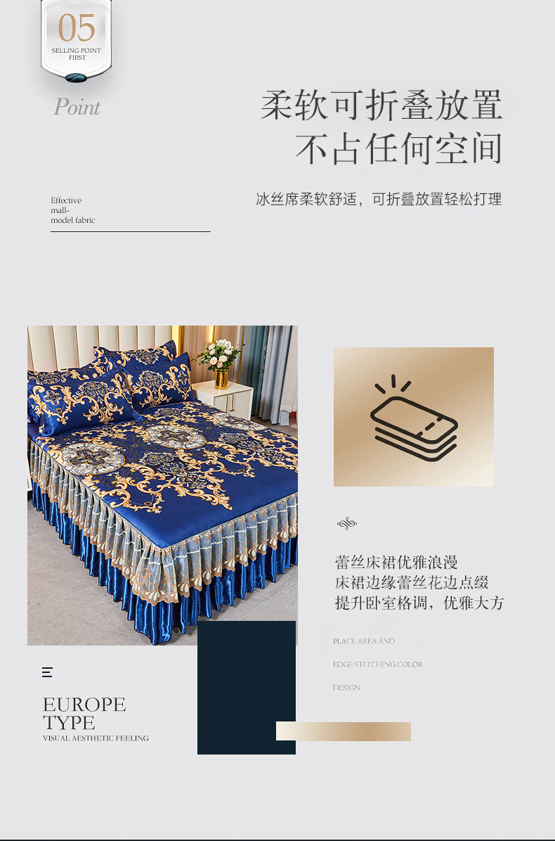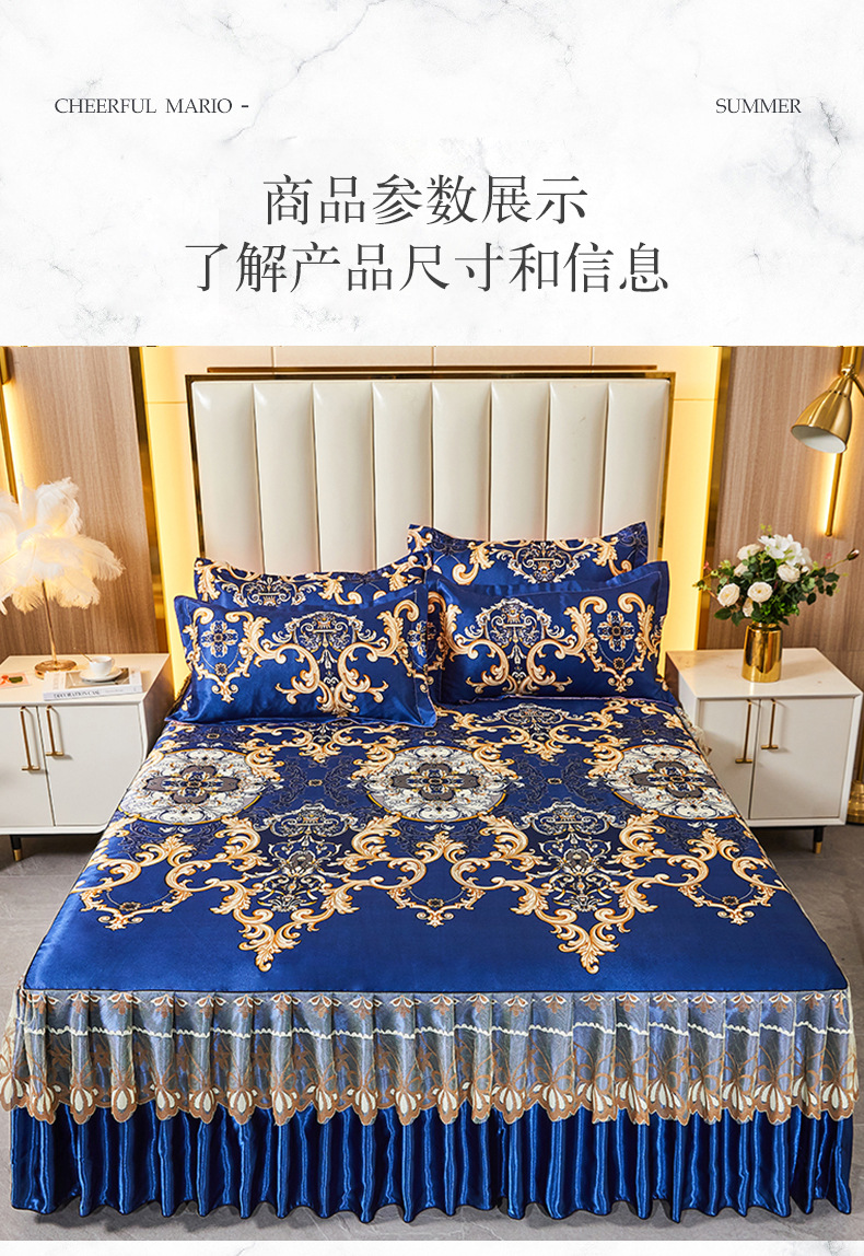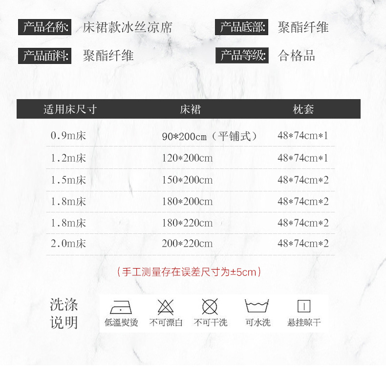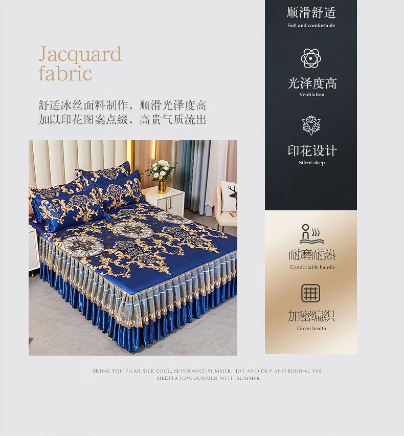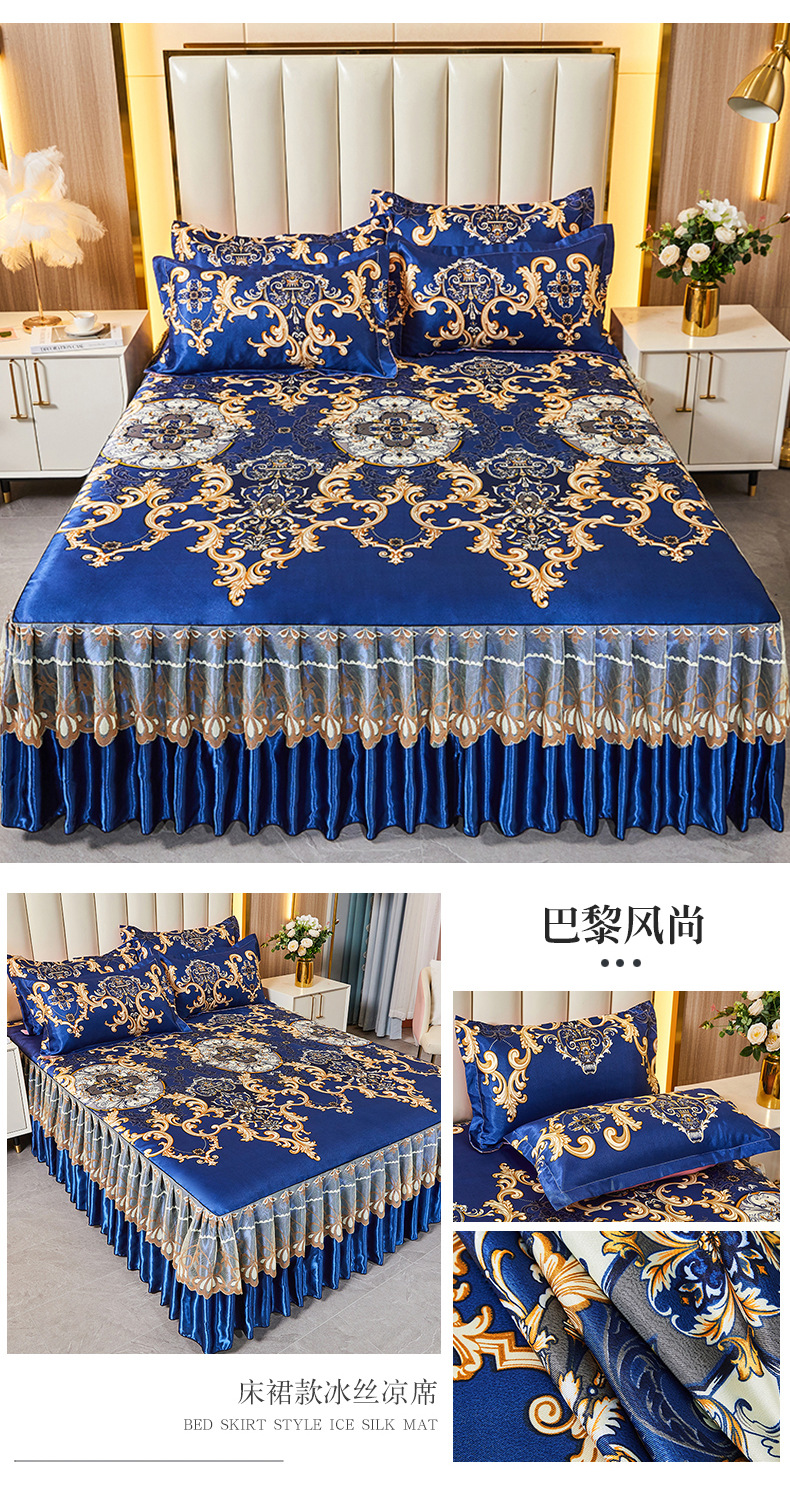 可水洗提花冰丝凉席三件套裙款夏天空调软席