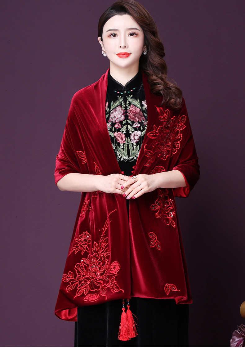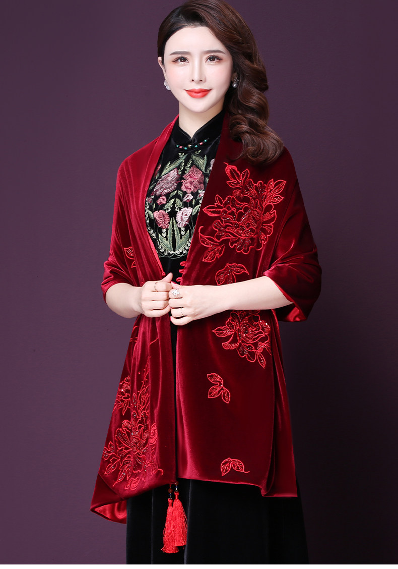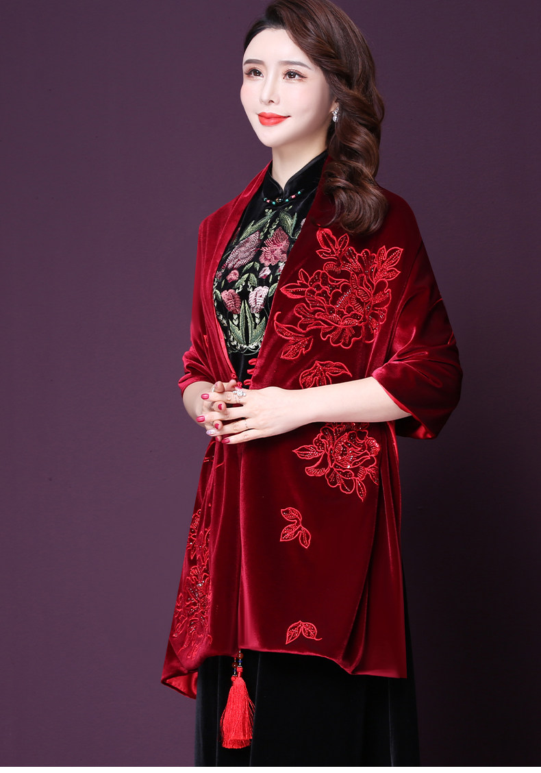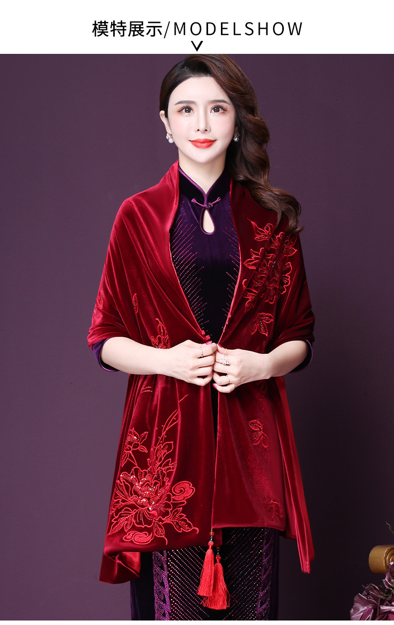 WXY-801新款金丝绒复古中国风刺绣两用洋气外搭披肩