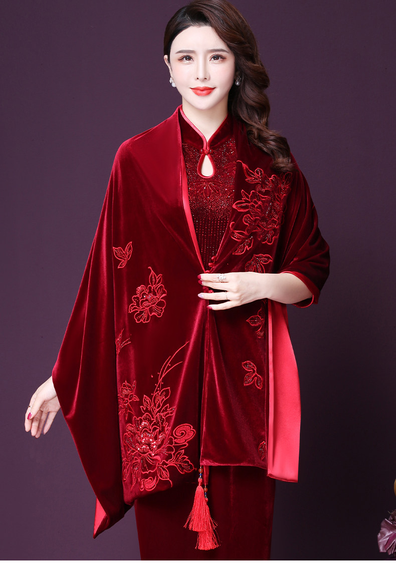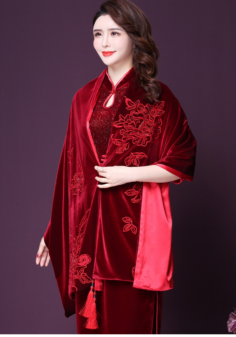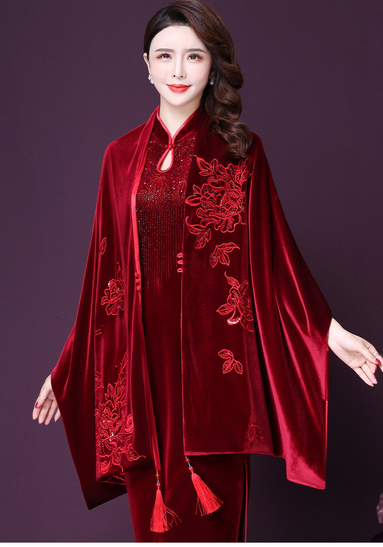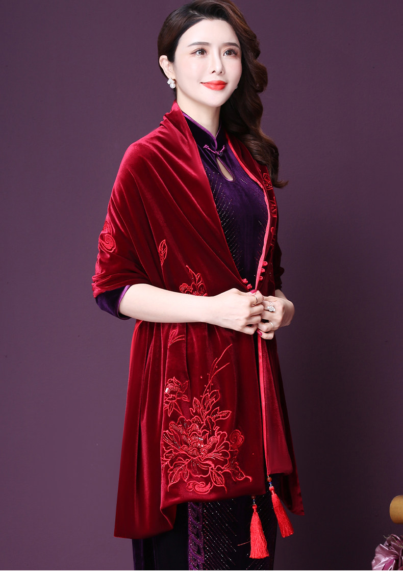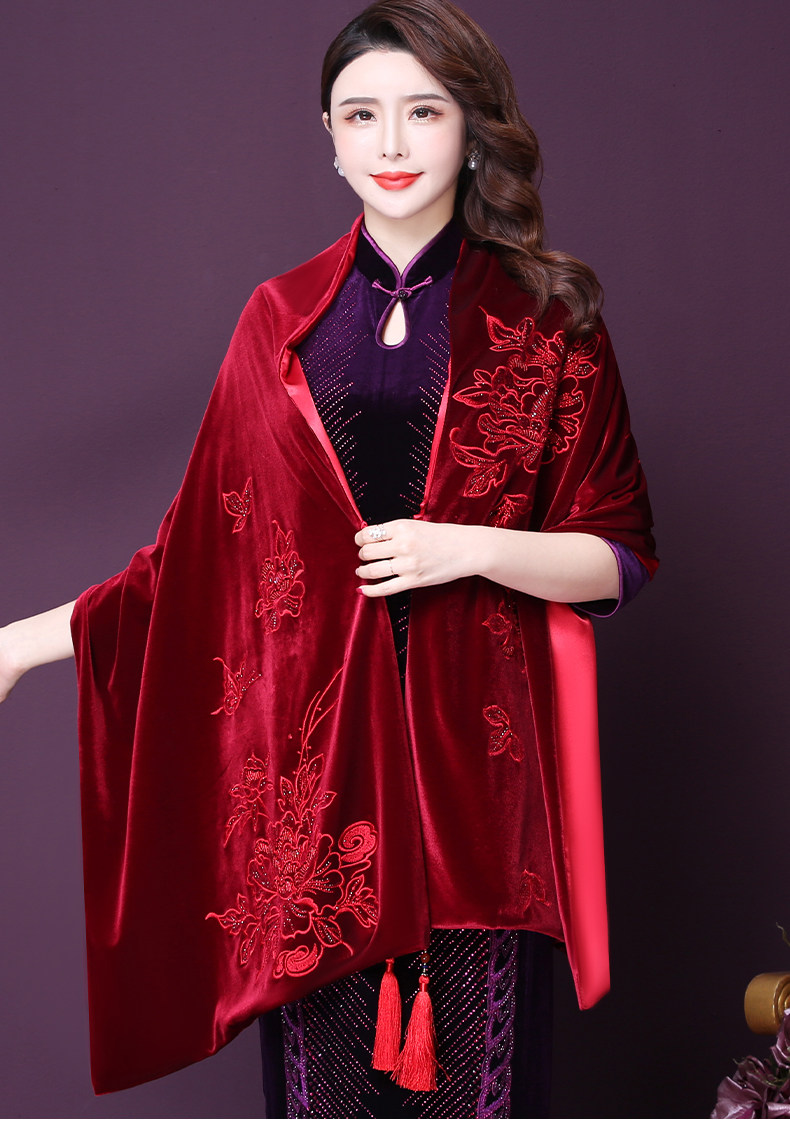 WXY-801新款金丝绒复古中国风刺绣两用洋气外搭披肩