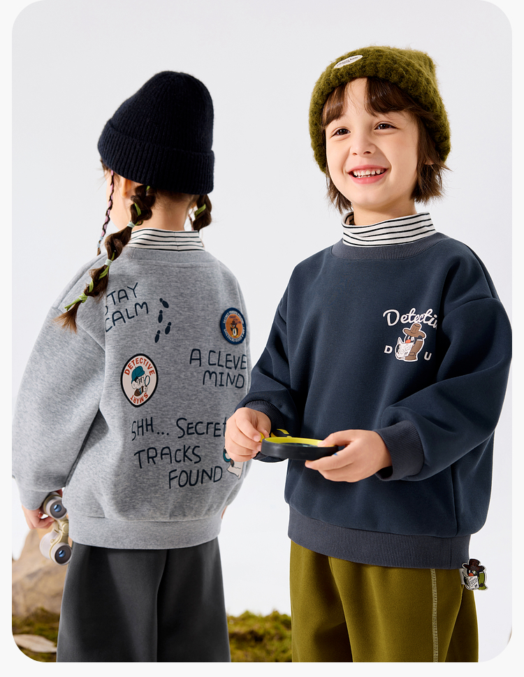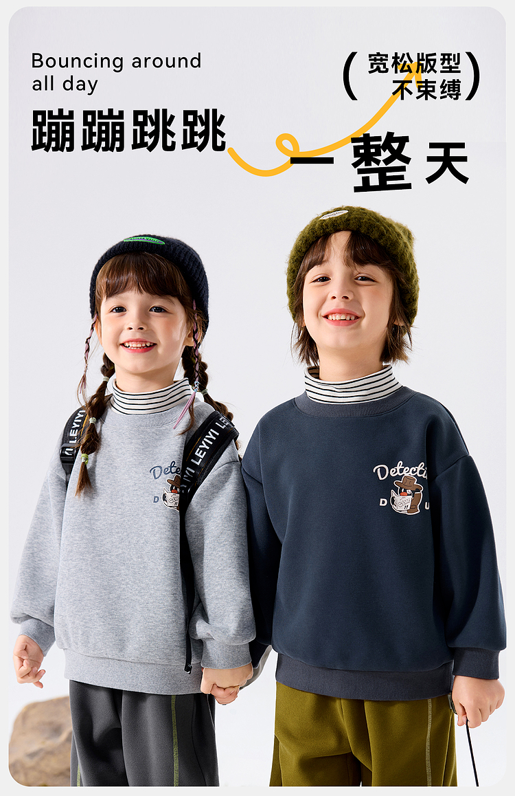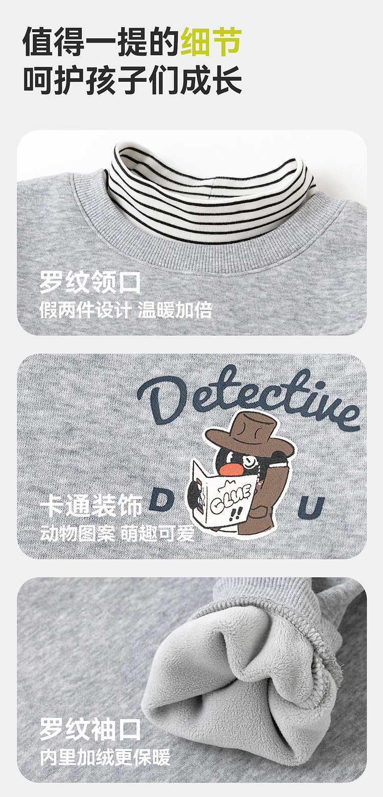 嘟嘟家男童卫衣秋冬儿童加绒假两件高领上衣女童2025新款洋气内搭T5DWY019