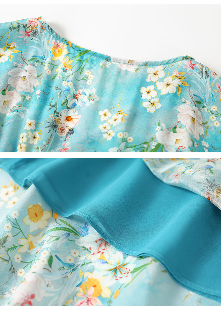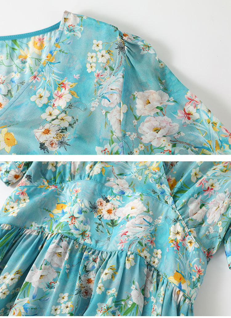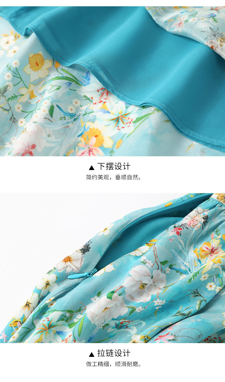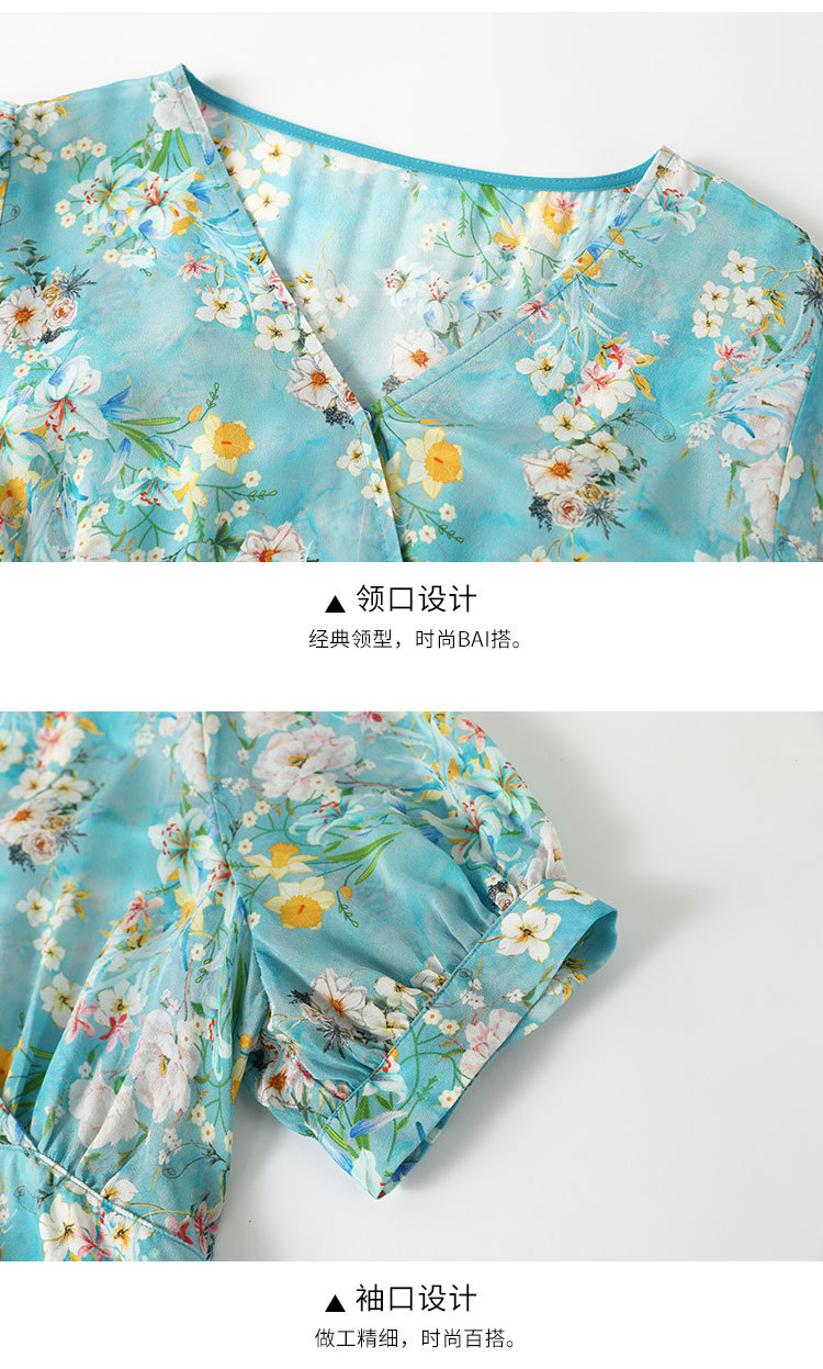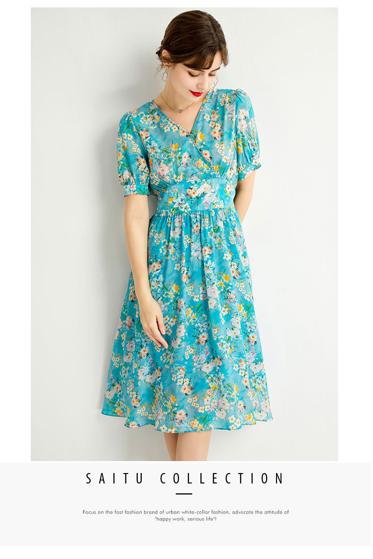 v领时尚收腰桑蚕丝,碎花真丝连衣裙KBN-230117