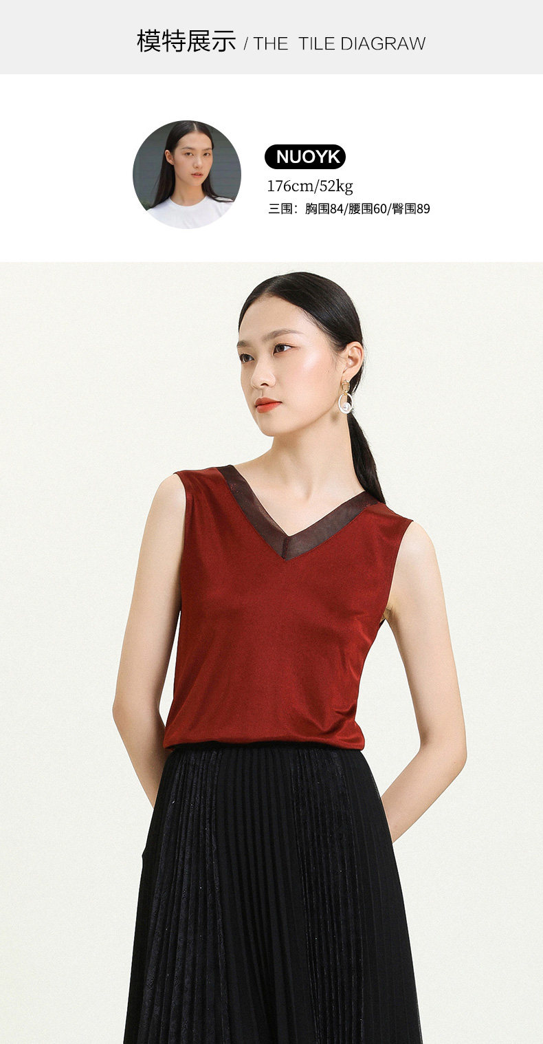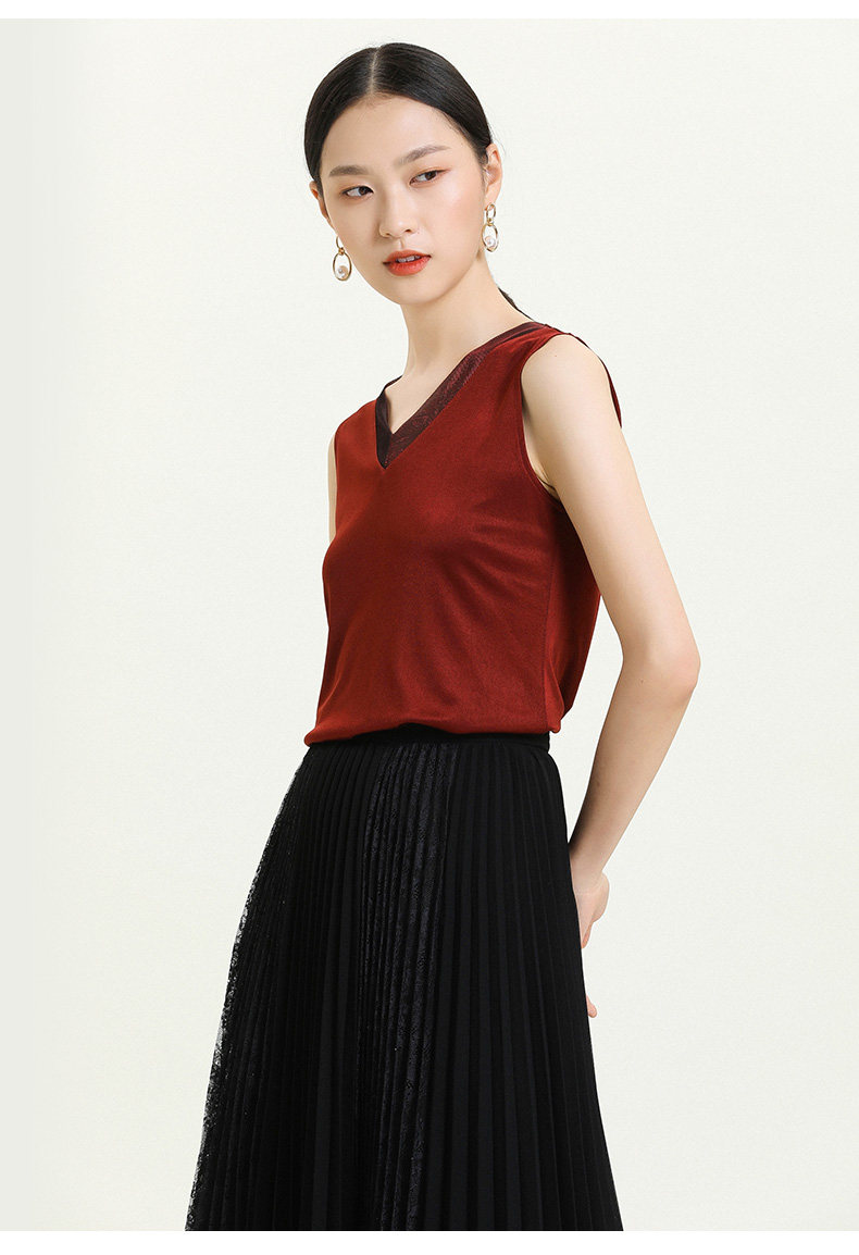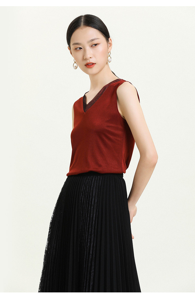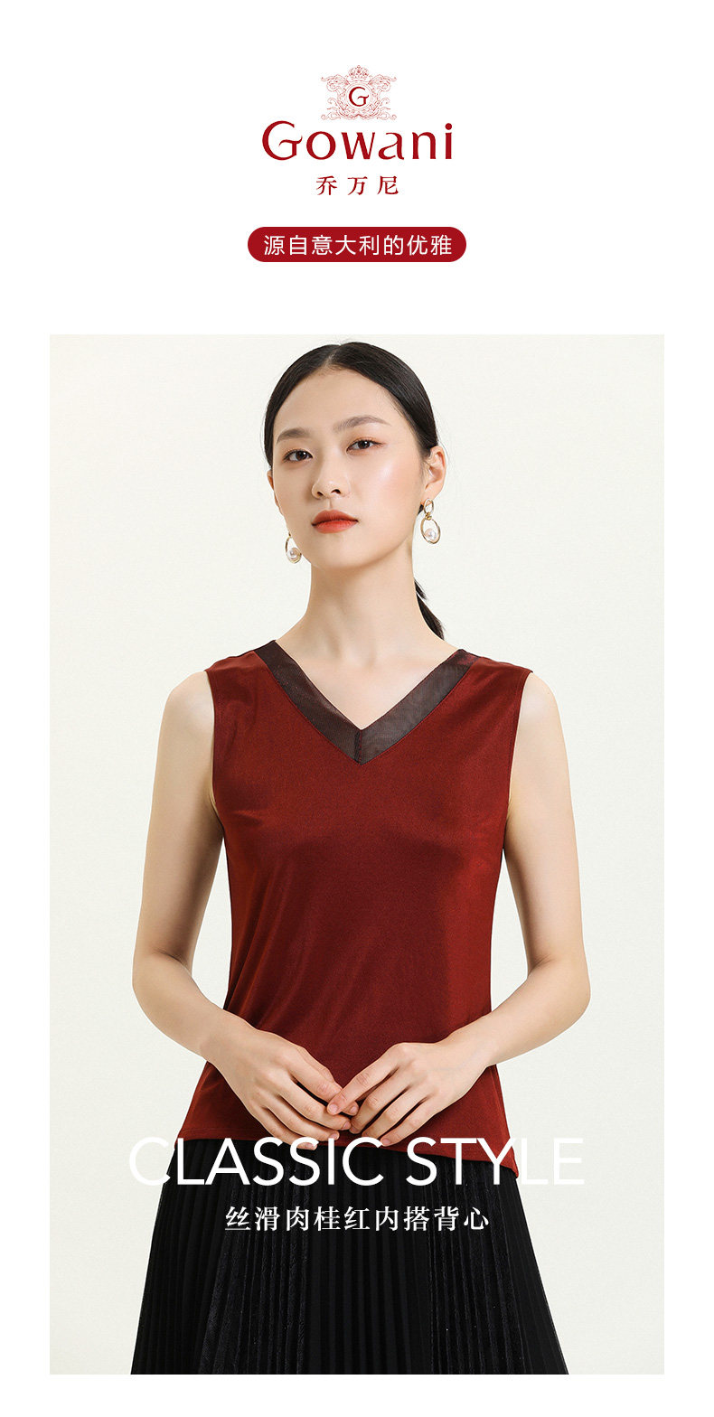 乔万尼新款打底上衣外穿无袖背心女夏季打底红色薄款V领上衣ES3H583