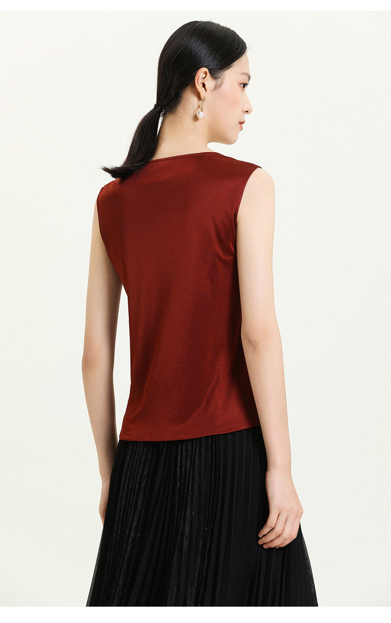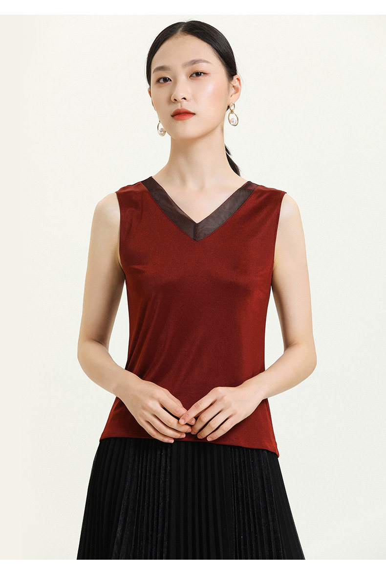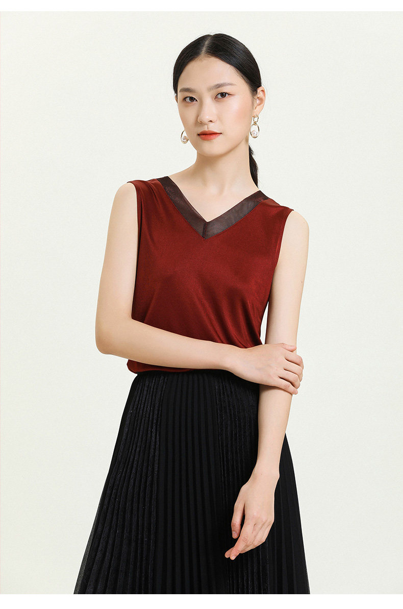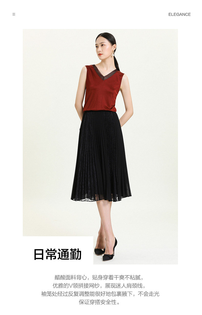乔万尼新款打底上衣外穿无袖背心女夏季打底红色薄款V领上衣ES3H583
