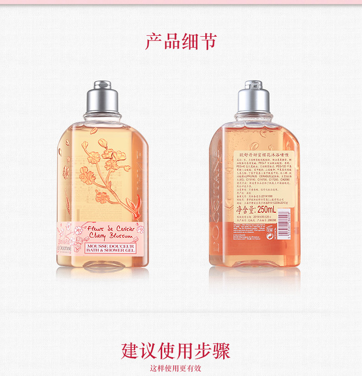 L'occitane欧舒丹甜蜜樱花沐浴啫喱250ml