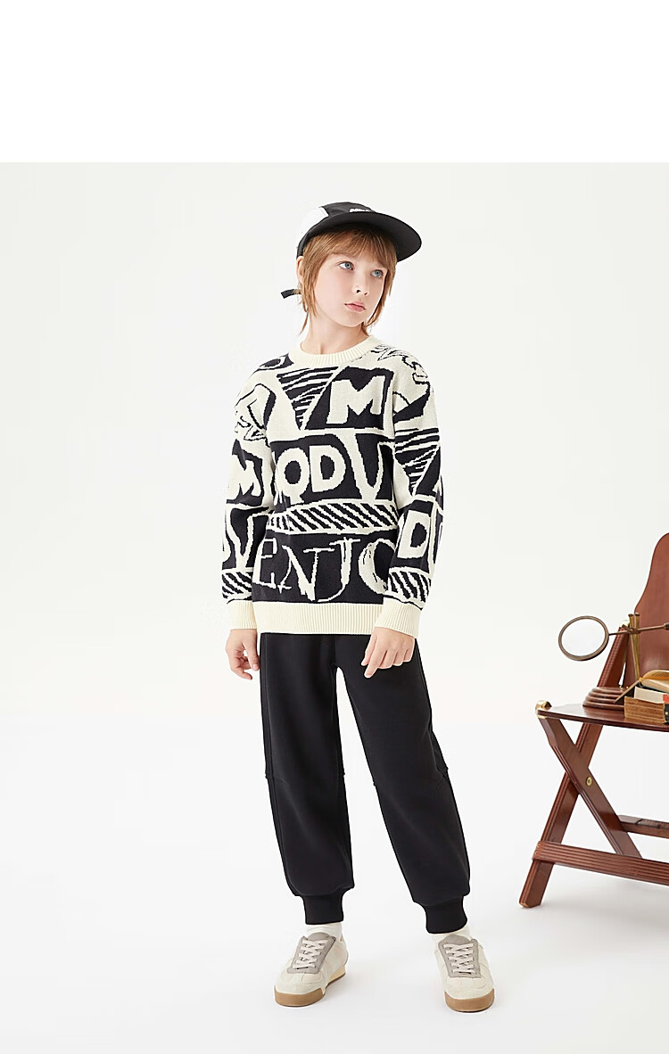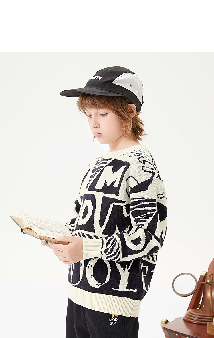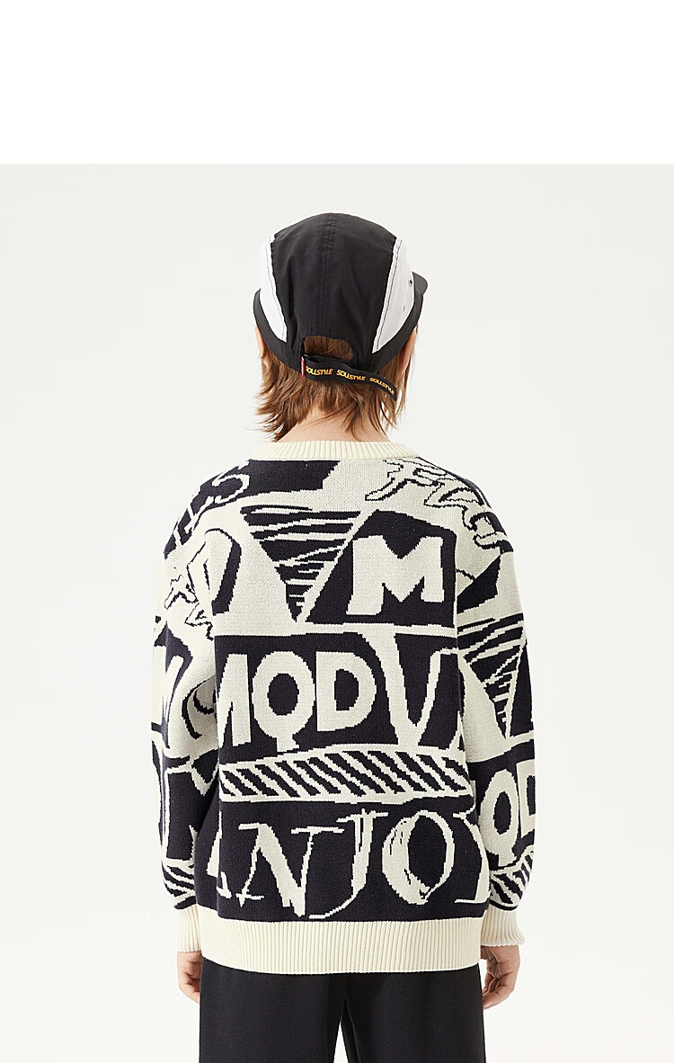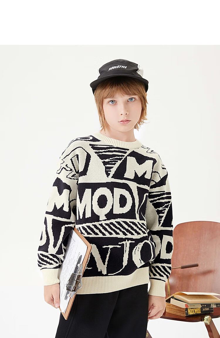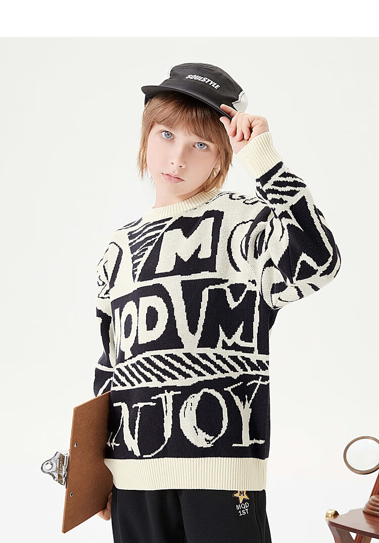 【MQD】童装男大童冬季新品漫画风字母圆领毛衣