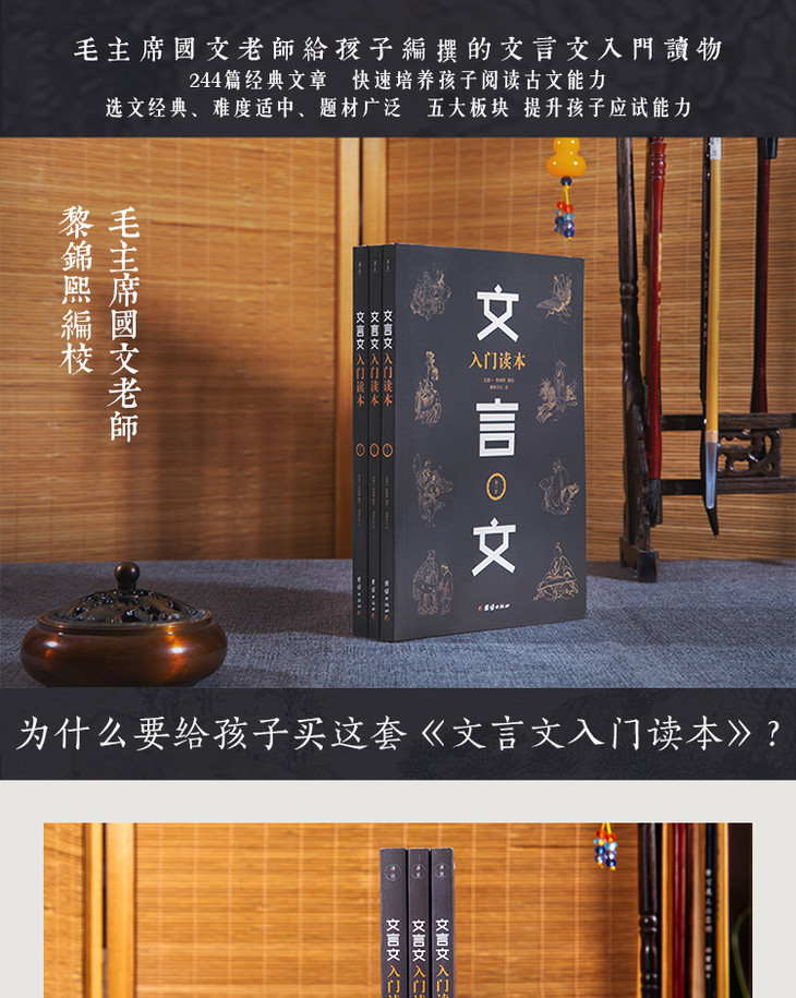 文言文入门读本(全三册),快速培养孩子阅读古文能力,提升孩子应试能力