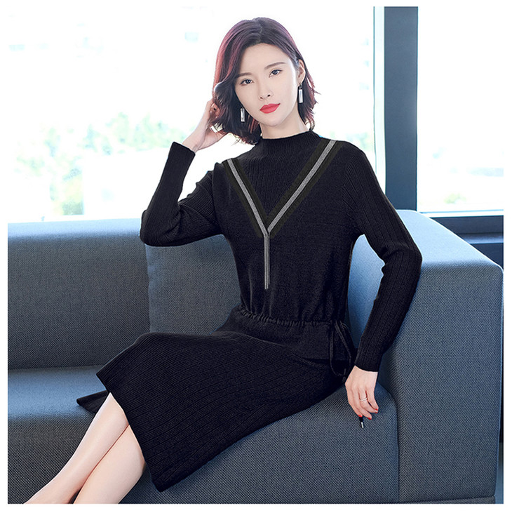 上海旗袍厂PY-60233 秋冬新款修身显瘦包臀打底针织裙毛衣长袖假两件套连衣裙