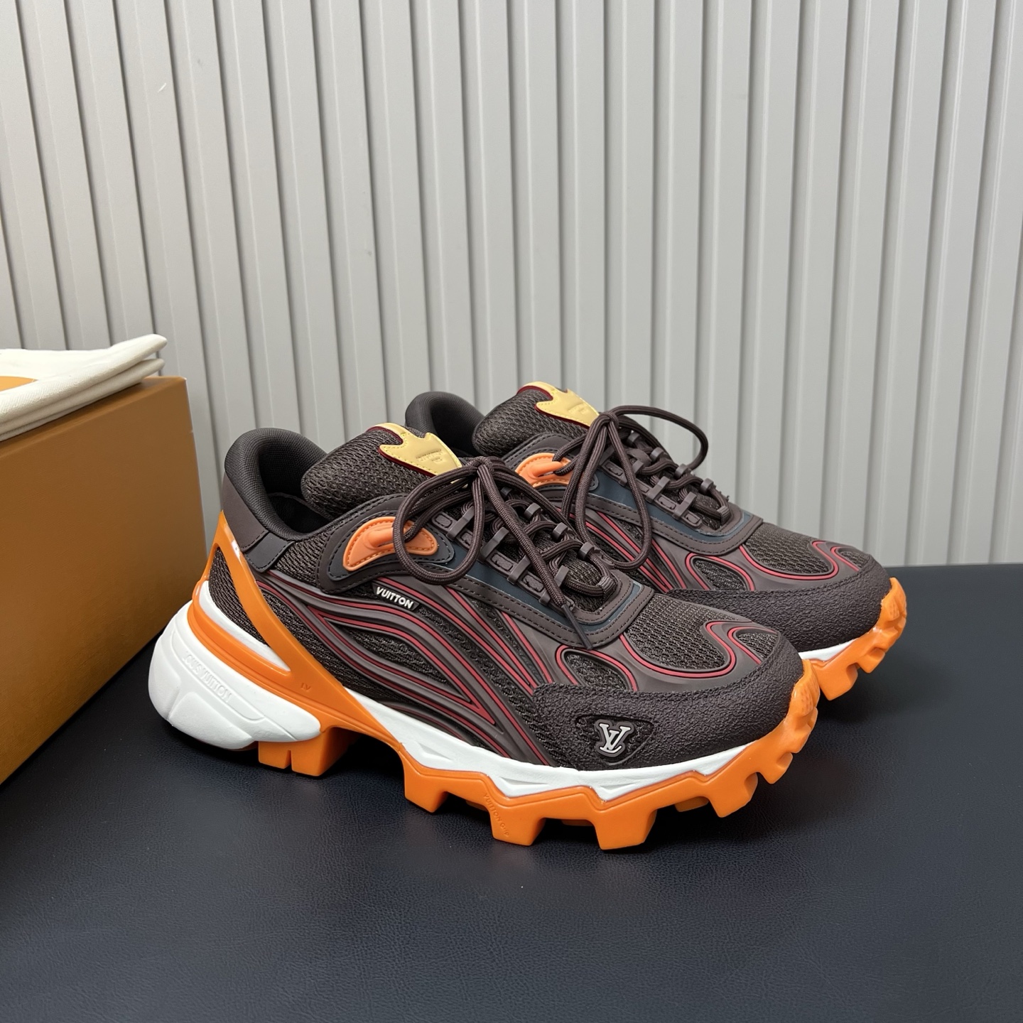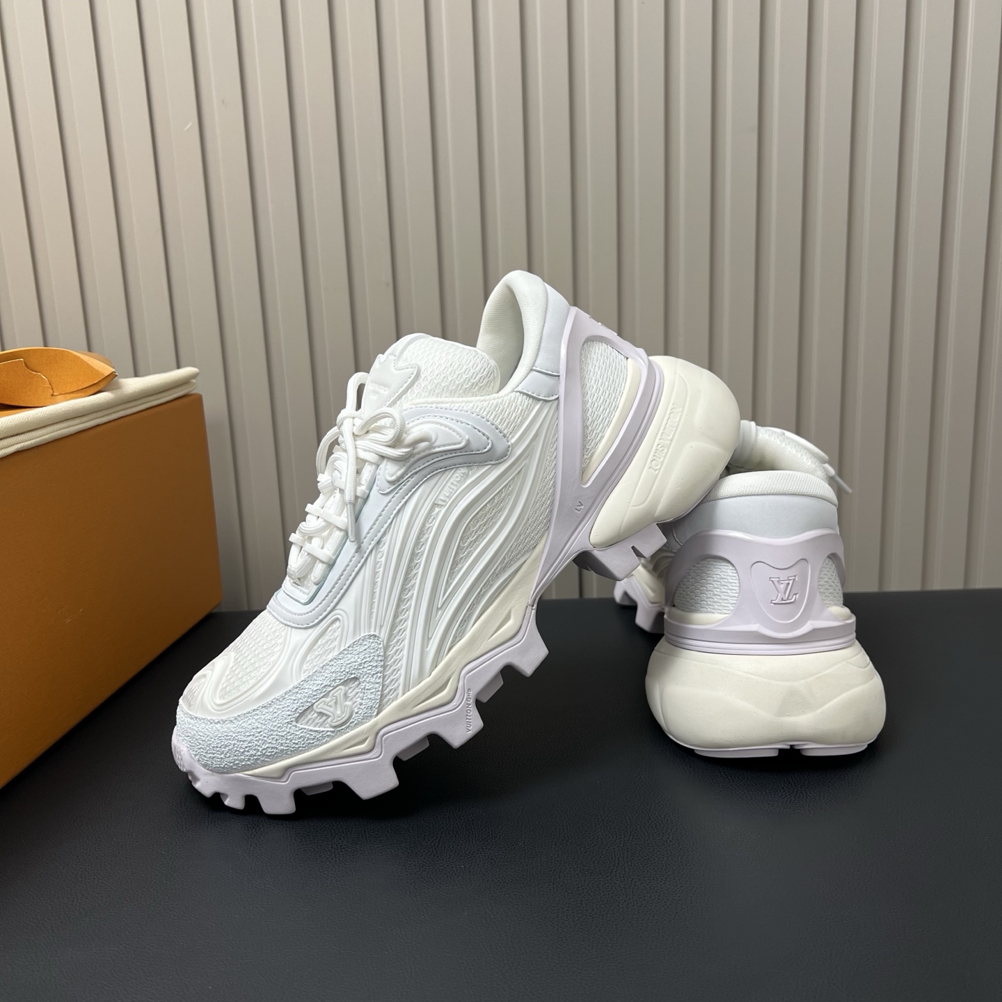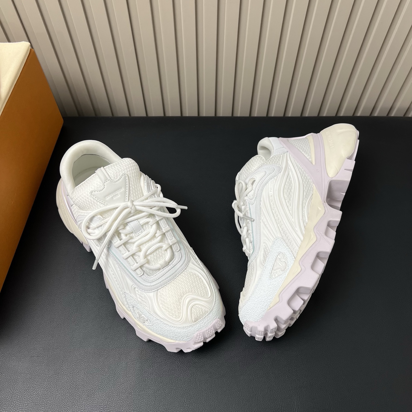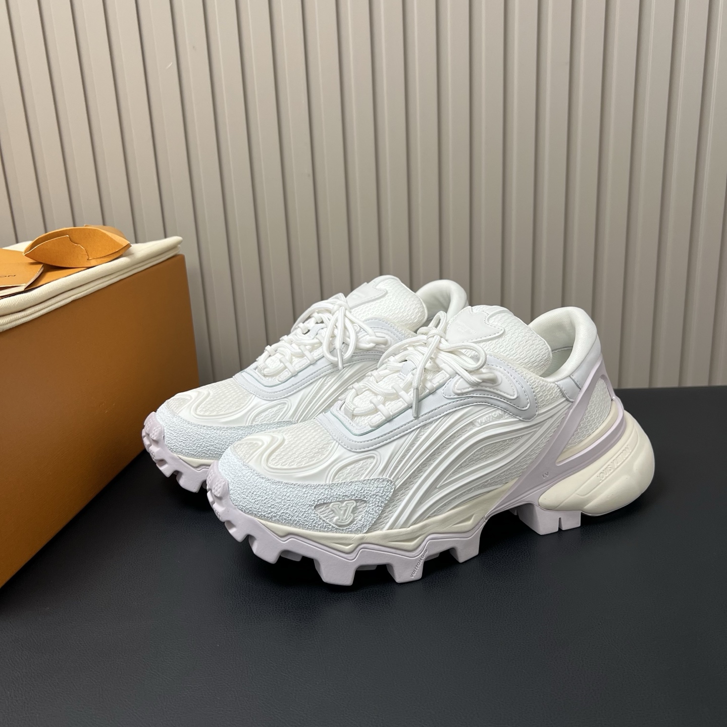 鞋面是人造革和科技织物,透气性强,加厚鞋底更符合现在的审美,有增高效果