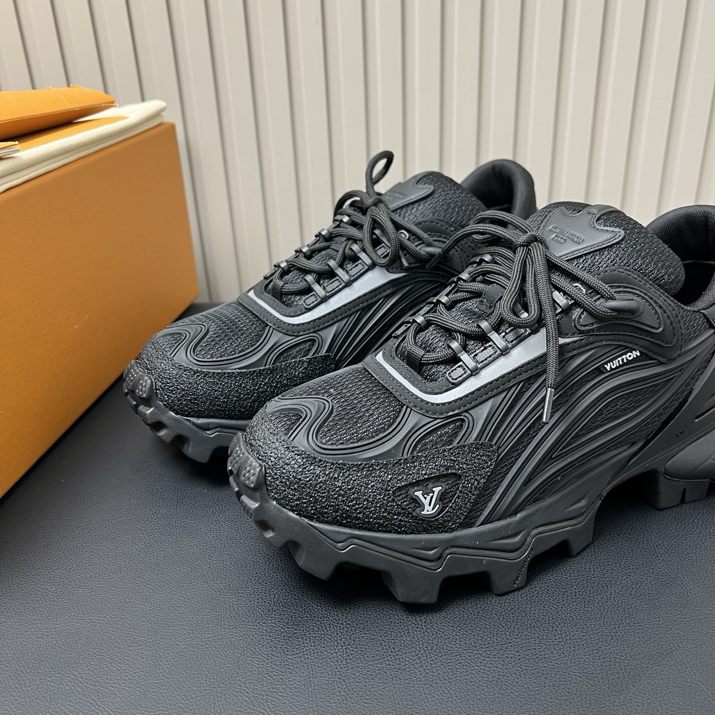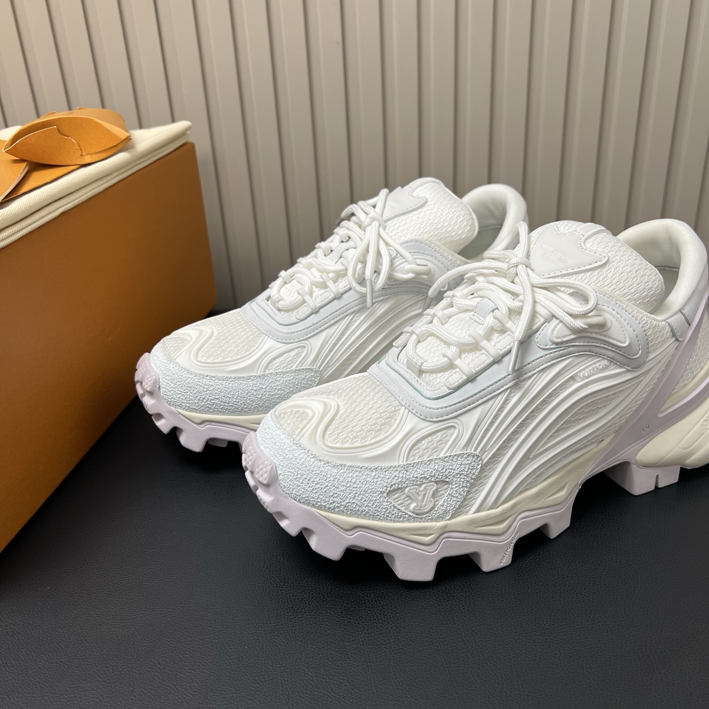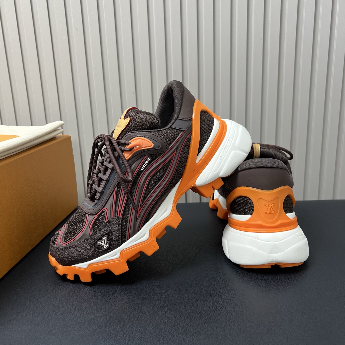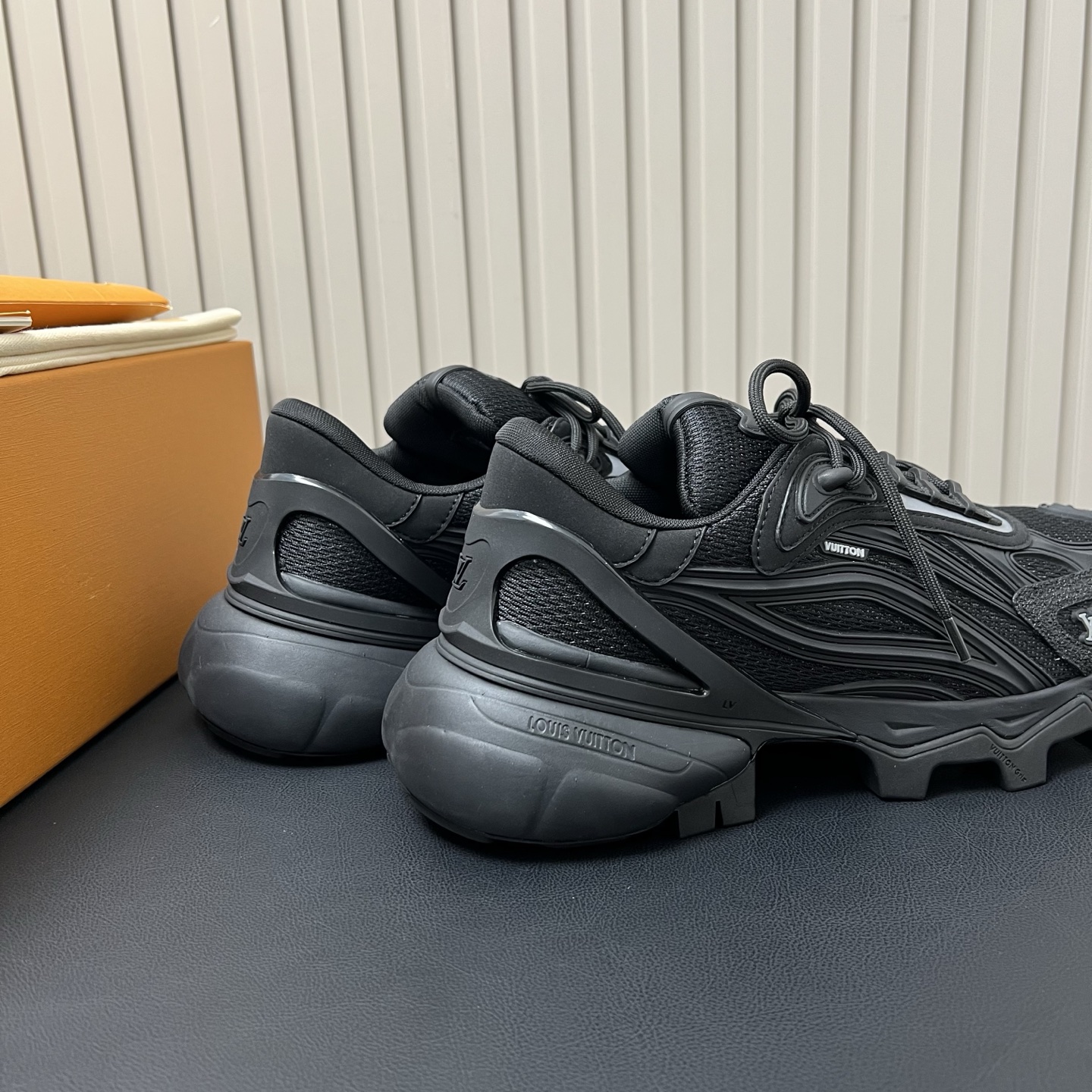 鞋面是人造革和科技织物,透气性强,加厚鞋底更符合现在的审美,有增高效果